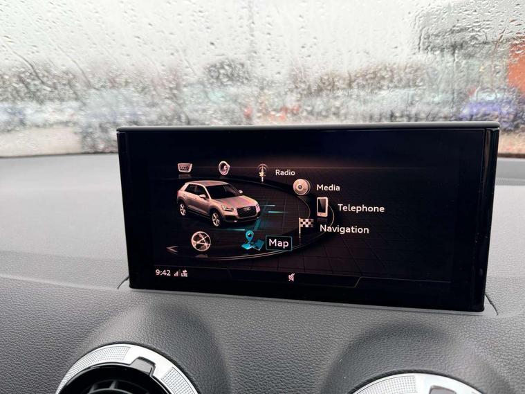 3D map display, Audi connect navigation and infotainment includes innovative services, Audi connect remote and control connects your vehicle to your smartphone, Audi drive select: power steering assistance + engine (modes: comfort, auto, dynamic, efficiency, individual), Audi smartphone interface - Apple carplay/Android Auto, USB connect, 2xSDXC card readers, voice control for navi, telephone, music and 3rd party apps, Audi virtual cockpit, Automatic start/stop system with recuperation, Bluetooth interface includes bluetooth audio streaming, Cruise control, E-call, Jukebox hard drive memory for music (10GB), MMI navigation plus with 8.3" colour MMI screen and MMI touch, Natural voice recognition, Power operated tailgate, Progressive steering, Rear parking sensors, Sport suspension, 6 passive loudspeakers, DAB Digital radio, Auto dimming rear view mirror, Black window trims, Body colour door mirrors, Electrically adjustable, folding, auto dimming and heated door mirrors with integrated LED side indicators, Front windscreen with grey tinted sunband, LED daytime running lights, LED headlights with dipped beam, high beam, position lights, indicators, LED rear lights, LED third brake light, Privacy glass - dark tinted rear and rear side windows from B-pillar backwards, Rear side wing doors, Rear wiper, S Line badges on the front wings, S Line body styling - front and rear bumpers, side skirts, radiator grille, rear diffuser insert and front air intakes, Variable front intermittent wipers, Wheel arch trims in manhattan grey, 12v socket in front, 3 seat bench in 2nd row, 3 spoke multi-function leather steering wheel with S badging, 4-way electric lumbar support for front seats including manual seat height adjustment for both front seats, 60/40 split folding rear seat bench, Black carpets, Black cloth headlining, Front and rear head restraints, Front centre armrest, Front sport seats, Front/rear floor mats, Height/reach adjust steering wheel, Illuminated door sill trims with S logo, ISOFIX child seat mounting in front passenger and rear outer seats, Manual air conditioning, Single front passenger seat, Stainless steel pedals, 3x3 point rear seatbelts, 6 airbags - Front, curtain and front side airbags, Electromechanical parking brake, Electronic stabilisation control including ABS, ASR and EDL, Front passenger airbag deactivation, Hill hold assist, Pre-sense front with pedestrian recognition, Seatbelt monitoring, Tyre pressure warning light with visual and acoustic warning, Warning triangle and first aid kit, Anti theft alarm, Anti theft wheel bolts, Electronically operated child locks, Remote central door locking, Aluminium interior element, Black dashboard, Matt brushed aluminium trim inlays, Tool kit,