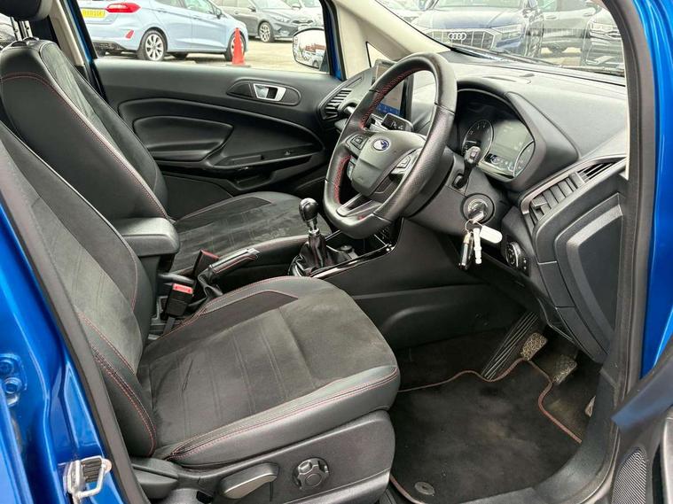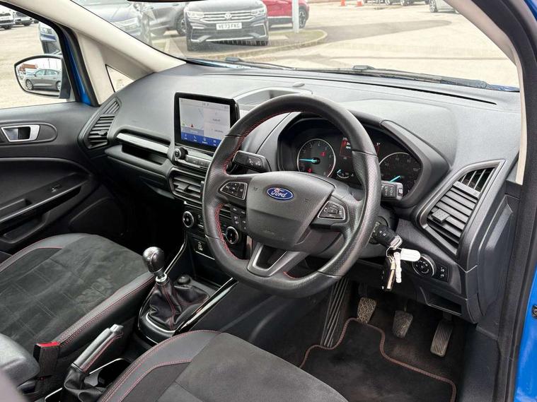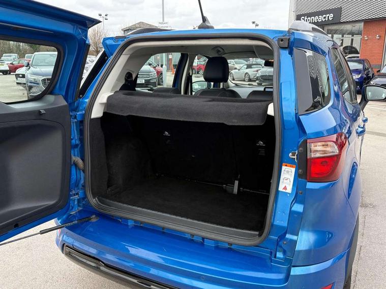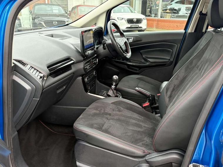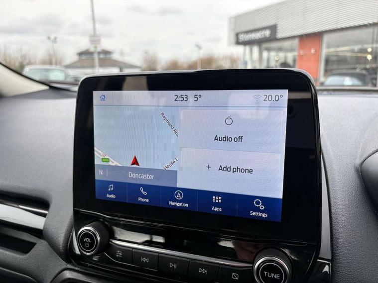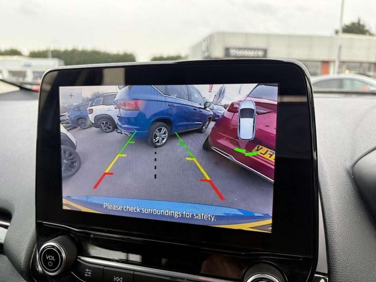 Cruise control, e-Call (emergency call), Easy fuel capless refuelling system, Ford SYNC 3 nav system with DAB radio, 8" screen, emergency assistance, Apple car play/Android auto, 2x USB, 6 speakers, Ford pass connect, Intelligent speed limiter, PAS, Rear parking sensors, Rear view camera, Traffic sign recognition, Trip computer, Sports suspension, Steering wheel mounted audio controls, Auto dimming rear view mirror, Automatic front wipers, Automatic headlights, Black roof rails, Body colour door handles, Body coloured bumpers, Chrome lower window surround, Electrically adjustable and heated door mirrors, Front fog lights, Front grille bars and surround in black, Headlight levelling control, Large rear roof spoiler, LED day running lights, LED third brake light, Power front and rear windows, Puddle lights, Quick-clear heated windscreen, Rear side wing doors, Rear wiper, ST Line body styling kit - Black headlamp bezel, front and rear sport bumpers, body colour lower door claddings, 12V socket in front and rear, 3 seat bench in 2nd row, 60/40 split rear seats, Ambient lighting, Centre console with sliding front armrest, Cooled glovebox, Courtesy lights with map reading light, Driver seat height/lumbar adjust, Driver's side glovebox, Driver/passenger sunvisors and lidded vanity mirrors, EATC - Electronic Auto Temperature control, Folding grab handles, Front head restraints, Front seat back map pockets, Illuminated glovebox, Illuminated luggage compartment, Isofix system on outer rear seats, Luggage compartment carpet, Neosuede/Partial sensico leather upholstery, Overhead console with sunglasses holder, Rake adjustable rear seats, Reach + rake adjustable steering column, Rear headrests, Sensico trimmed steering wheel, handbrake and gearshift gaiter with red stitching, Single front passenger seat, ST-Line Front floor mats with red stitching, Stainless steel sports pedals, Storage drawers under front seats, Tie down hooks, Variable boot floor, 3x3 point rear seatbelts, ABS, Autonomous emergency braking, Child locks on rear doors, Curtain airbags, Driver airbag, Drivers knee airbag, Electronic Stability Programme with hill launch assist, Front passenger airbag deactivation, Front side airbags, Passenger airbag, Pre collision assist system with AEB, Seatbelt reminder for driver and front passenger, Traction control, Tyre pressure monitoring system, Immobiliser, MyKey system, Remote central locking, Thatcham 1 volume sensing alarm, Low rolling resistance tyres, Tyre inflation kit,
