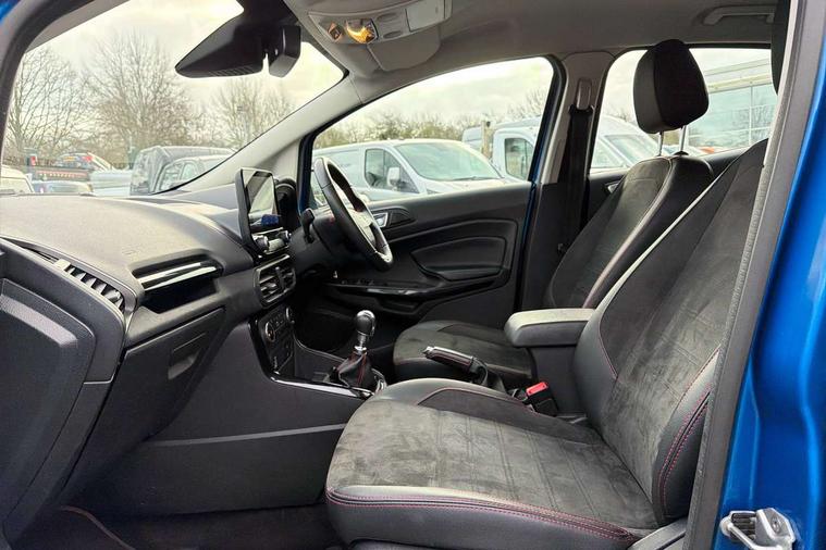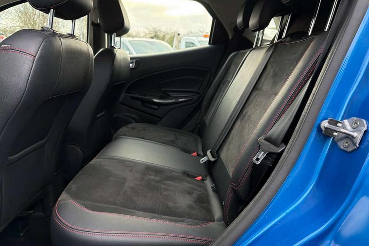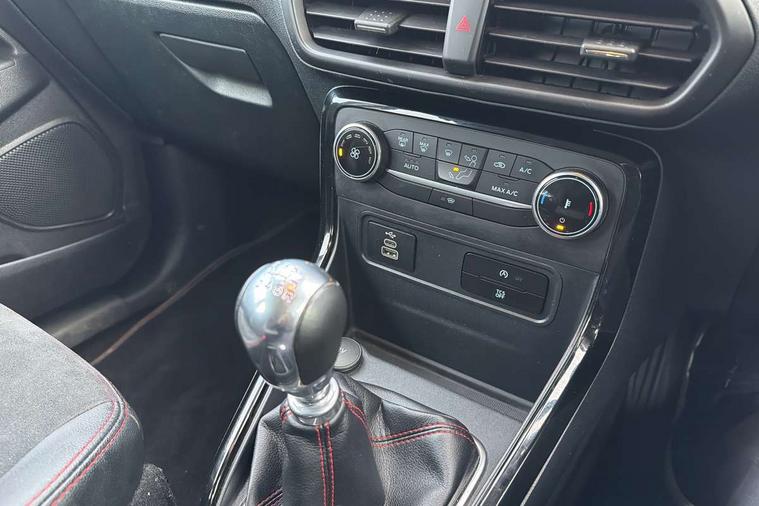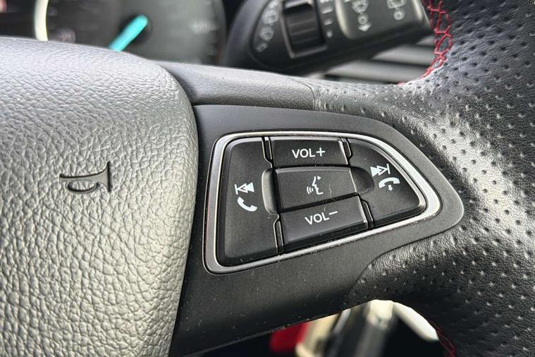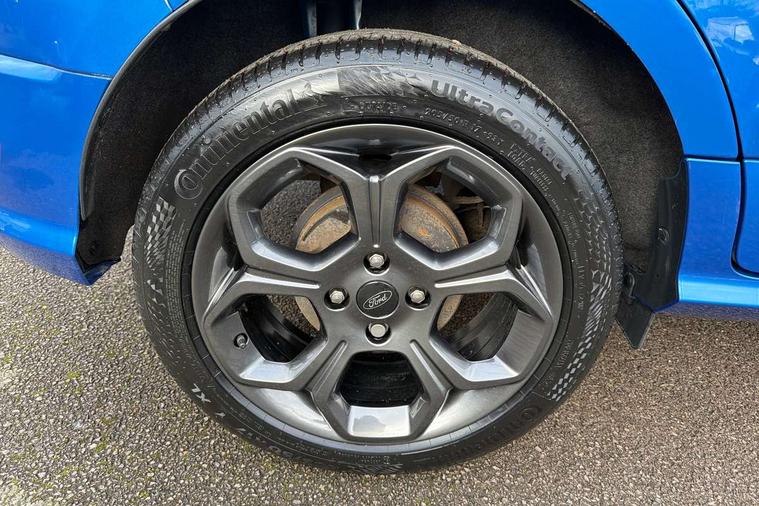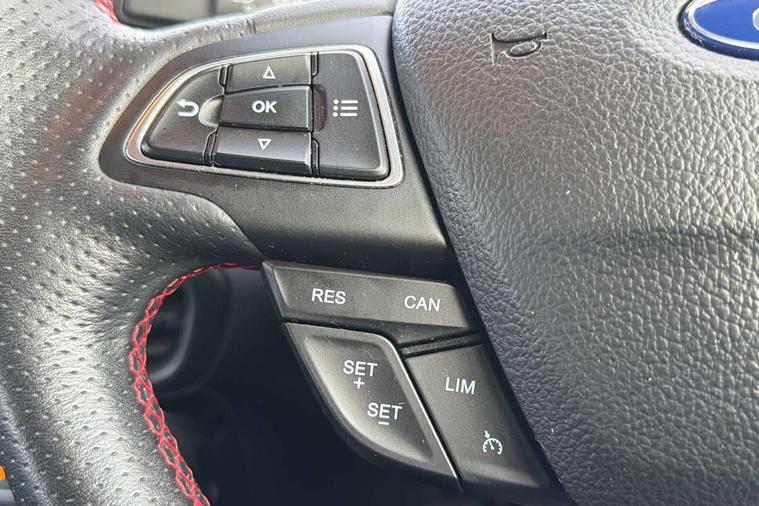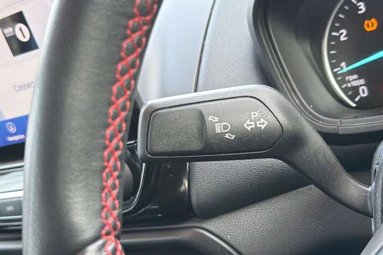 Cruise control, e-Call (emergency call), Easy fuel capless refuelling system, Ford SYNC 3 nav system with DAB radio, 8" screen, emergency assistance, Apple car play/Android auto, 2x USB, 6 speakers, Ford pass connect, Intelligent speed limiter, PAS, Rear parking sensors, Rear view camera, Traffic sign recognition, Trip computer, Sports suspension, Steering wheel mounted audio controls, Auto dimming rear view mirror, Automatic front wipers, Automatic headlights, Black roof rails, Body colour door handles, Body coloured bumpers, Chrome lower window surround, Electrically adjustable and heated door mirrors, Front fog lights, Front grille bars and surround in black, Headlight levelling control, Large rear roof spoiler, LED day running lights, LED third brake light, Power front and rear windows, Puddle lights, Quick-clear heated windscreen, Rear side wing doors, Rear wiper, ST Line body styling kit - Black headlamp bezel, front and rear sport bumpers, body colour lower door claddings, 12V socket in front and rear, 3 seat bench in 2nd row, 60/40 split rear seats, Ambient lighting, Centre console with sliding front armrest, Cooled glovebox, Courtesy lights with map reading light, Driver seat height/lumbar adjust, Driver's side glovebox, Driver/passenger sunvisors and lidded vanity mirrors, EATC - Electronic Auto Temperature control, Folding grab handles, Front head restraints, Front seat back map pockets, Illuminated glovebox, Illuminated luggage compartment, Isofix system on outer rear seats, Luggage compartment carpet, Neosuede/Partial sensico leather upholstery, Overhead console with sunglasses holder, Rake adjustable rear seats, Reach + rake adjustable steering column, Rear headrests, Sensico trimmed steering wheel, handbrake and gearshift gaiter with red stitching, Single front passenger seat, ST-Line Front floor mats with red stitching, Stainless steel sports pedals, Storage drawers under front seats, Tie down hooks, Variable boot floor, 3x3 point rear seatbelts, ABS, Autonomous emergency braking, Child locks on rear doors, Curtain airbags, Driver airbag, Drivers knee airbag, Electronic Stability Programme with hill launch assist, Front passenger airbag deactivation, Front side airbags, Passenger airbag, Pre collision assist system with AEB, Seatbelt reminder for driver and front passenger, Traction control, Tyre pressure monitoring system, Immobiliser, MyKey system, Remote central locking, Thatcham 1 volume sensing alarm, Low rolling resistance tyres, Tyre inflation kit,