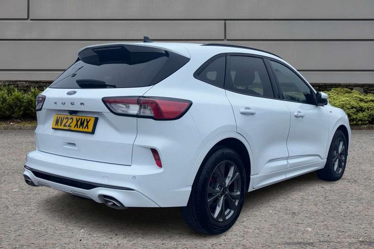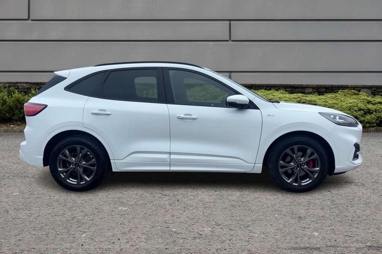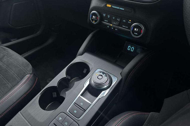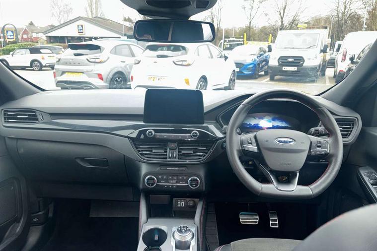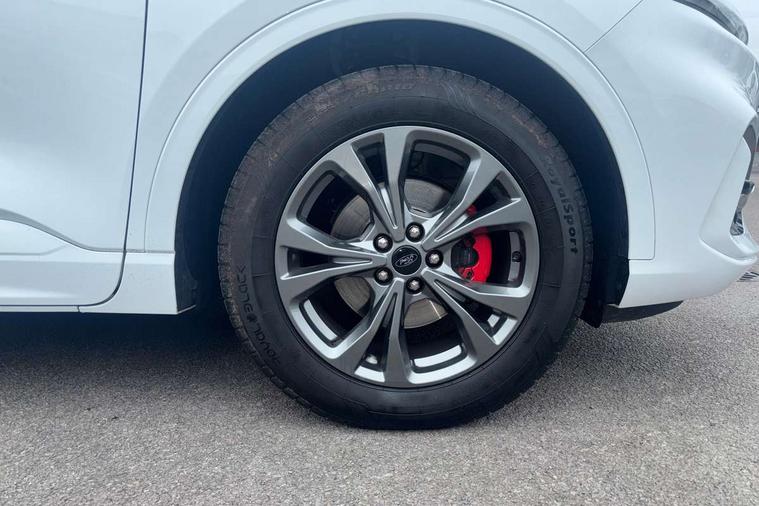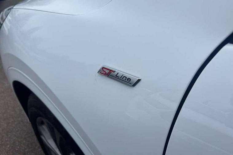 12.3" digital colour instrument cluster, Ford easy fuel, Ford SYNC 3 with 8" TFT LCD touchscreen, App Link, andriod auto/apple carPlay, emergency assistance and navigation with Ford pass connect, Front and rear parking sensors, Hands free power tailgate, Lane keeping aid with lane departure warning, Power assist steering, Rear view camera, Selectable drive modes, Service interval indicator, Sports suspension, Twist beam rear suspension, B&O premium audio system with 10 speakers and subwoofer, 2 USB ports, DAB radio/CD, Auto headlamps with high and low beam, Black roof rails, Day/night rear view mirror, Front LED fog lamps, Large rear spoiler, LED daytime running lights, LED rear lights, Power folding heated door mirrors with puddle lights, Power front/rear windows with global close, Privacy glass, Quickclear heated windscreen, ST Line body styling kit with unique front and rear fascia and bumper, rear painted diffuser, front painted skid plates, dark mesh upper grille, ST Line front scuff plates, Third brake light, Twin exhausts, 10 way power adjustable drivers seat, 2nd row sliding seats with 60:40 split, 8 way manual passenger seat including lumbar support and height adjust, Alloy pedals, Centre console with electronic parking brake, Dark headlining and pillars, Dual electronic automatic temperature control, Flat bottomed leather steering wheel in sensico with red stitching, Front and rear head restraints, Partial premium touch sensico leather upholstery with black cloth inserts and red stitching, Rear charging point, Sports seats, ST Line front and rear floor mats, Steering wheel mounted paddle shift, 3x3 point rear seatbelts, Airbags - front driver/passenger, front and rear curtain, Drivers knee airbag, Electronic stability control (ESC) and ABS, Ford MyKey Gen 2 safety system, Manual child proof rear door locks, Post collision braking, Pre collision assist with autonomous emergency braking, Rear seat Occupancy alert, Red brake calipers, Tyre pressure monitoring system, Engine immobiliser, Keyless entry and Ford power start button, Locking wheel nuts, Remote powered central double locking doors, Thatcham category 1 alarm,