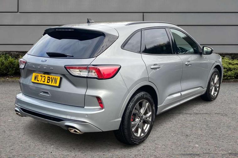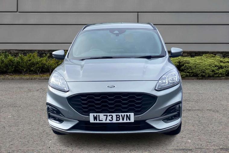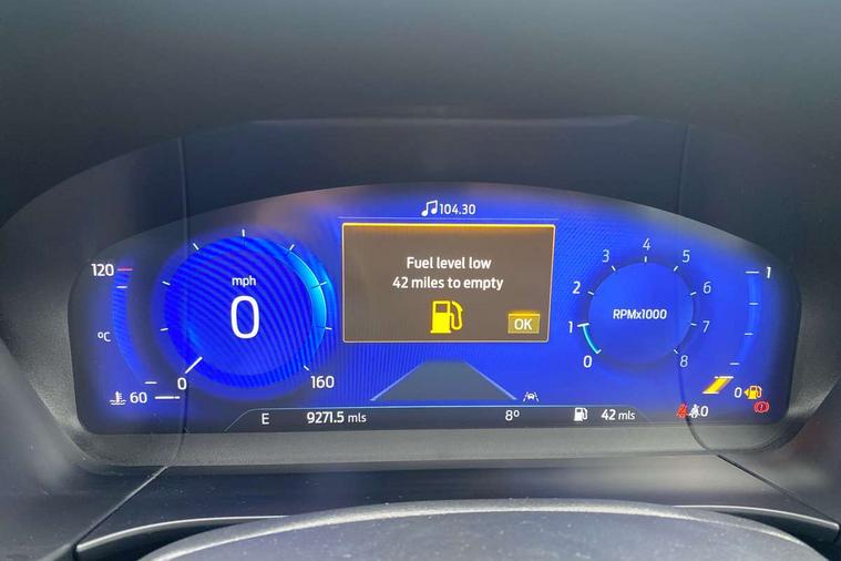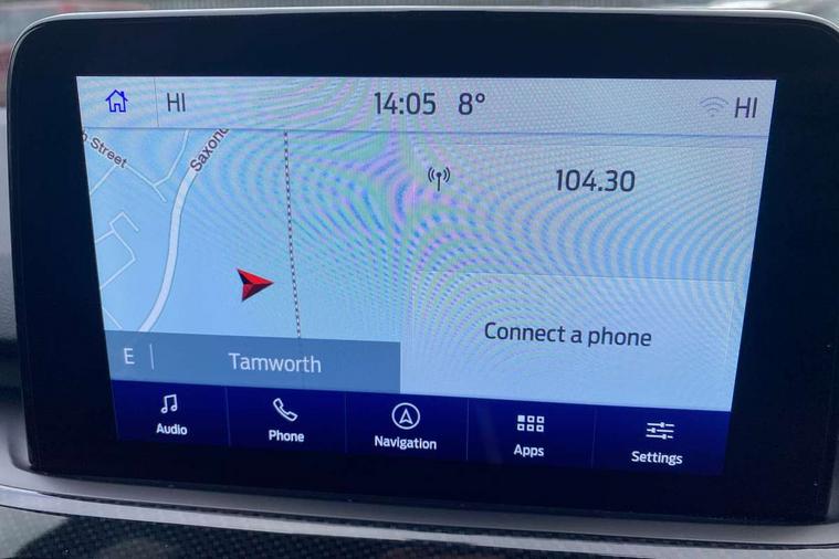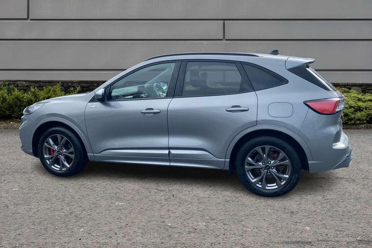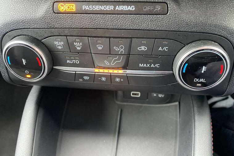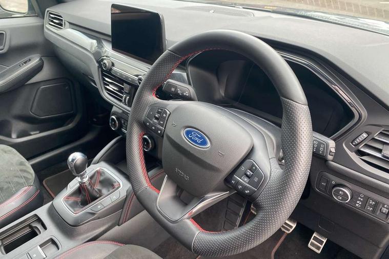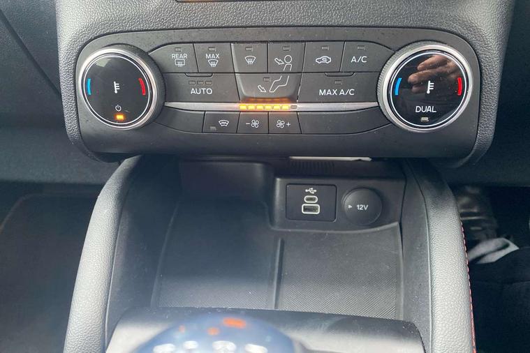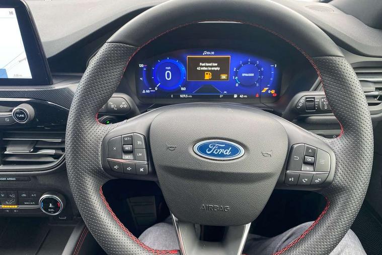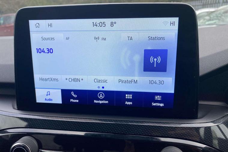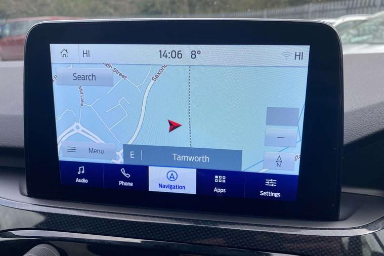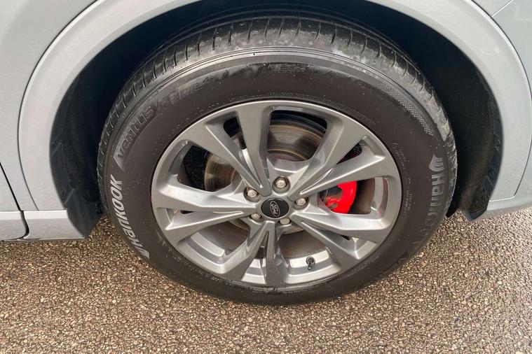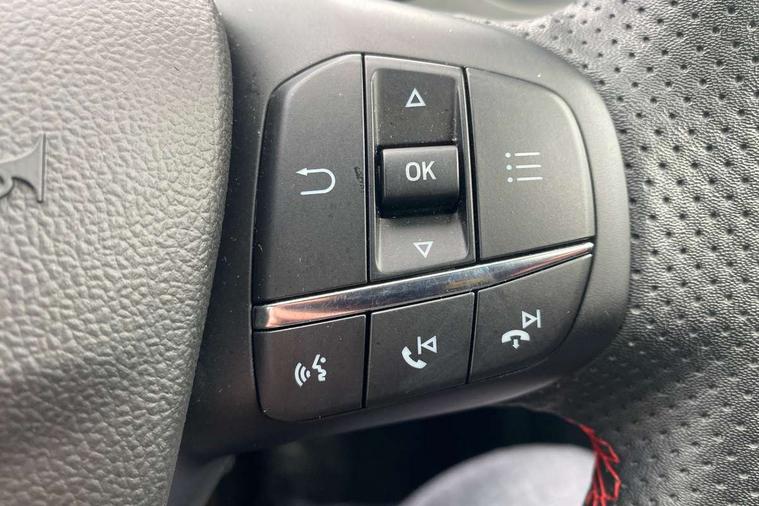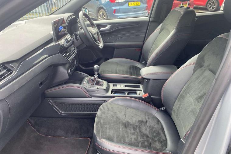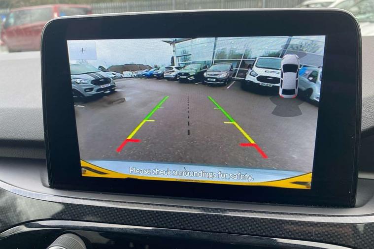 12.3" digital colour instrument cluster, Ford easy fuel, Ford SYNC 3 with 8" TFT LCD touchscreen, App Link, andriod auto/apple carPlay, emergency assistance and navigation with Ford pass connect, Front and rear parking sensors, Hands free power tailgate, Lane keeping aid with lane departure warning, Power assist steering, Rear view camera, Selectable drive modes, Service interval indicator, Sports suspension, Twist beam rear suspension, B&O premium audio system with 10 speakers and subwoofer, 2 USB ports, DAB radio/CD, Auto headlamps with high and low beam, Black roof rails, Body colour bumpers, Day/night rear view mirror, Front LED fog lamps, Large rear roof spoiler, LED daytime running lights, LED rear lights, Power folding, electrically adjustable and heated door mirrors with puddle lights, Power front/rear windows with global close, Quickclear heated windscreen, Rain sensing wipers, Rear privacy glass, Rear side wing doors, Rear wiper, ST Line body styling kit with unique front and rear fascia and bumper, rear painted diffuser, front painted skid plates, dark mesh upper grille, ST Line front scuff plates, Third brake light, Twin exhausts, 2nd row sliding seats with 60:40 split, Alloy pedals, Centre console with electronic parking brake, Dark headlining and pillars, Electronic automatic temperature control (EATC), Flat bottomed leather steering wheel in sensico with red stitching, Front and rear head restraints, Partial premium touch Sensico with black cloth inserts and red stitching, Rear centre head restraint, Single front passenger seat, Sports seats, ST Line front and rear floor mats, ST Line gear knob, 3x3 point rear seatbelts, Airbags - front driver/passenger, front and rear curtain, Drivers knee airbag, Electronic stability control (ESC) and ABS, Ford MyKey Gen 2 safety system, Manual child proof rear door locks, Post collision braking, Pre collision assist with autonomous emergency braking, Rear seat Occupancy alert, Red brake calipers, Tyre pressure monitoring system, Engine immobiliser, Keyless entry and Ford power start button (Keyless start), Locking wheel nuts, Remote powered central double locking doors, Thatcham category 1 alarm,