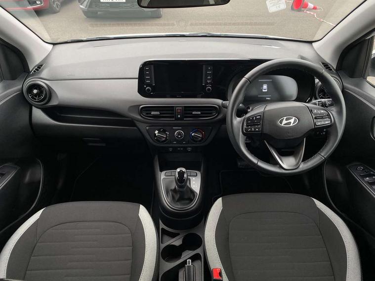 Apple car play/Android Auto, Bluelink mobile remote connectivity, Bluetooth connectivity with voice recognition, Cruise control, Driver attention alert system, eCall emergency call system, Forward Collision-Avoidance Assist (FCA) - Pedestrian/Cyclist, Front USB-C charging and USB-A data, Full-width 4.2" LCD instrument cluster, Intelligent speed limit assist, Lane departure warning system with lane keep assist - LKAS, Lane follow assist, PAS, Rear parking sensors, Rear view camera with guidelines, Roadside assistance, Start/Stop function, Tailgate, Trip computer, 2 front/2 rear speakers, Rear USB-C device charger, Steering wheel audio, phone and cruise controls, 1 speed non intermittent rear windscreen wiper, Black finish on B pillars, Body colour door handles, Body coloured bumpers, Body coloured door mirrors, Electric front windows, Electric rear windows, Electrically adjustable and heated door mirrors, Flat metal emblem, Front grille in matte black, Front intermittent wipers, Halogen daytime running lights, Halogen headlights, Headlights inner with Black Blade design, Heated rear window, High beam assist, Indicator light on door mirrors, Rear roof spoiler with integrated LED brake light, Rear side wing doors, 12v power outlet - front, 3 seat bench in 2nd row, 60/40 split folding flat to floor rear seats, Air conditioning, Auto light control, Bottle holders in front/rear doors + front centre console, Cabin and luggage compartment interior lighting, Cloth upholstery, Driver + passenger vanity mirrors, Driver's seat height adjustment, Driver/passenger sunvisors with ticket holders, Floor mats, Front door pockets, Front Head Restraints - Vertical and Horizontal Adjustment, Glove compartment, Height adjustable steering column, Isofix child seat preparation, Leather multifunction steering wheel, Rear door pockets, Single front passenger seat, Vertical adjustment rear head restraints, 3x3 point rear seatbelts, Airbags - front, front side and curtain airbags, Anti-lock brake system (ABS), Autonomous emergency braking (AEB) with forward collision warning system, Brake assist function, Childproof rear door locks, Electronic stability control, Front and rear seatbelt reminder, Front seatbelt pretensioners, Hill start assist control (HAC), Passenger airbag deactivate switch, Traction control, Tyre pressure monitoring system, Immobiliser, Perimeter alarm, Rear occupant alert, Remote central locking, Second remote key, Speed sensitive auto door locking, 15" Alloy wheels, Tyre repair kit,