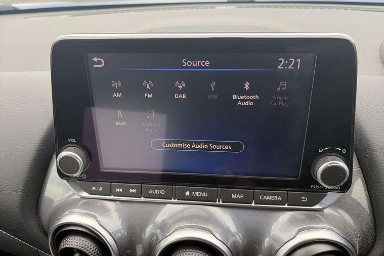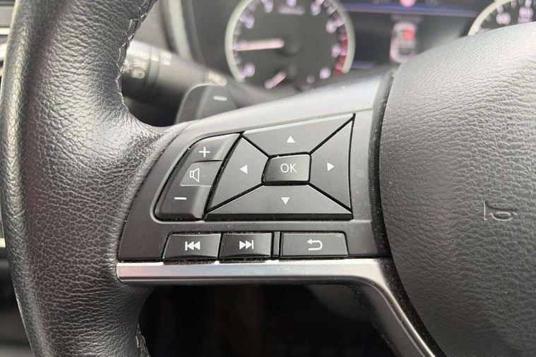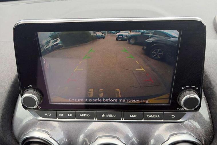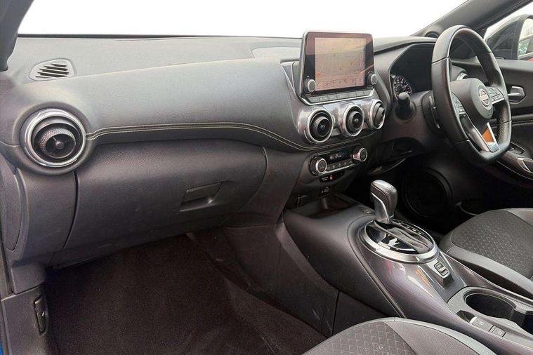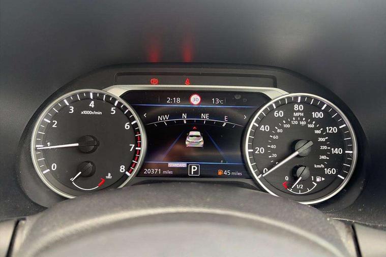 7" full colour TFT screen combimeter, Apple CarPlay and Google Android auto, Drive modes select (Eco, normal and sport), Emergency and breakdown call, Front parking sensor, Idle start/stop system, Intelligent lane intervention, Lane departure warning system, Nissan connect 8" touch screen entertainment system, Nissan connect nav with TomTom traffic, Nissan connect services and Wifi connection, Outside temperature sensor, Power Steering, Rear parking sensor, Traffic sign recognition, Trip computer, Voice recognition, Gasoline particulate filter, 6 speakers, Bluetooth system, USB, Aux-in and 12V socket, DAB Digital radio, Rear console USB port, Auto dimming interior rear view mirror, Auto headlights, Automatic hazard signal with emergency stop signal, Body colour bumpers, Body colour door handles, Electrically adjustable door mirrors with integrated indicators, Follow me home headlights, Front and rear electric window with one touch driver window, Heated and auto folding door mirrors, High beam assist, LED daytime running lights, LED headlamps, LED rear fog lamp, LED rear lamps, Rain sensor windscreen wipers, Rear privacy glass, Rear side wing doors, Rear wiper, Three blink turn signal, 3 height adjustable rear headrests, 3 seat bench in 2nd row, 60/40 split folding rear seat, Automatic climate control, Card holder on driver sunvisor, Cloth upholstery with black and metallic grey syntech leather inserts, Driver and passenger sliding and reclining seats, Driver side rear coat hanger, Driver/passenger sunvisors and vanity mirrors, Front and rear cabin lights, Front armrest, Front door pockets with bottle holders, Front head restraints, Front/rear passenger grab handles, Grey synthetic leather kneepad, Height adjustable driver's seat, Internal chrome door handles, Leather gearshift knob, Leather steering wheel, Luggage board, Luggage space lighting, Monoform sporty seats, Multifunction steering wheel, Rear door bottle holders, Single front passenger seat, Steering wheel mounted gearshift paddles, Telescopic steering wheel adjustment, Two cupholders in front centre console, Two rear isofix child seat anchorage points with top tether, Welcome light and console tray ambient lighting, ABS with EBD and brake assist, Active ride control, Active Trace Control, Driver and passenger airbags, Driver and passenger side airbags, Electric handbrake with auto hold function, Electronic Stability Programme (ESP), Front and rear curtain airbags, Height adjustable seatbelts, Hill start assist, Intelligent emergency braking with pedestrian and cyclist recognition, Rear door child safety locks, Seatbelt reminder for driver/front passenger and rear seats, Single tone horn, Three 3 point rear seatbelts, Traction control, Tyre pressure monitoring system, VDC Dynamic Vehicle Control, Ventilated rear brake discs, Alarm, Immobiliser, Intelligent key and start push button with walk away lock and approach unlock functions, Remote central locking,