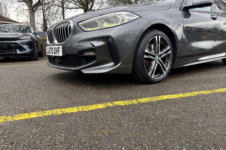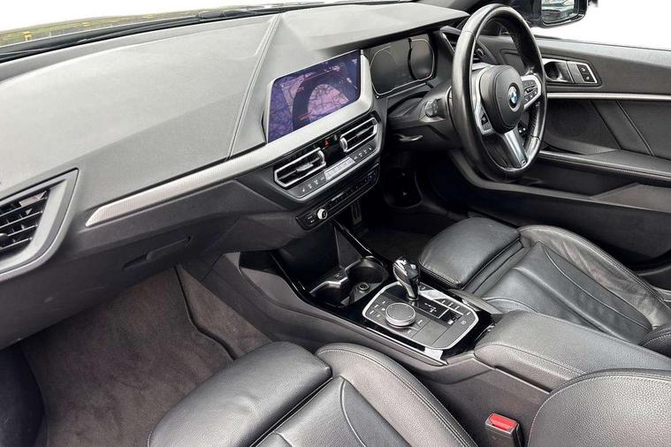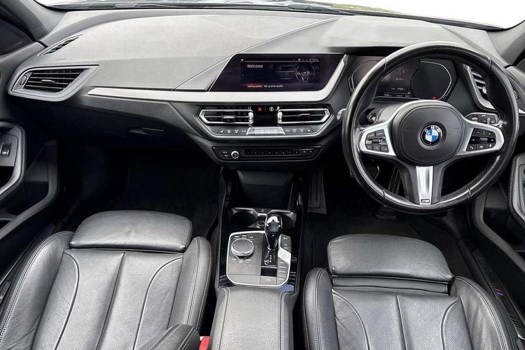 Active guard plus, Attentiveness assist, BMW Online services, BMW Teleservices, Check Control warning system for monitoring of lights and door/luggage compartment open warning, Connected eDrive Services, Eco pro mode, Electric power steering with Servotronic steering optimised at all speed ranges, Integrated owners handbook, Oil sensor for level and grade, On board computer, Optimum shift indicator, Personal Profile, Pull away assistant, Speed limiter, Aluminium lightweight construction, Anti roll bar front and rear, Balancer shaft, Double VANOS, Drive Performance Control, Electronic differential lock, High precision injection, M sports suspension + self levelling, Petrol Particulate Filter, VALVETRONIC engine management, Bluetooth audio streaming, DAB Digital radio, Auto dimming rear view mirror, Automatic headlight beam throw control, Body colour door handles, Body colour mirror caps, Chrome 'M' logo side designation, Chrome exhaust tailpipe in single, round (Exhaust tailpipe, stainless steel - single, round), Chrome kidney grille frame with Satin Aluminium struts, Direction indicator side lights in exterior mirrors, Electric folding and anti dazzle exterior mirrors, Fading support, Follow me home headlights, Front and rear electric windows with open and close fingertip control, anti trap facility and comfort closing, Front door sill finishers in black plastic with BMW designation, Green tinted heat protection glazing, Heated, electrically adjustable exterior mirror aspheric on driver side, convex on passenger side, High gloss shadow line exterior trim, High gloss shadowline window frame, Recess cover mirror frames and B/C pillar embelisher trim, High level third brake light, LED daytime running lights, LED eyebrow turn indicators, LED front fog lights, Lightweight engineering, Matt black air guide grilles, Model designation on right side of tailgate, Nearside reverse light in rear light cluster, Preparation for high beam assistant, Rain sensor including auto headlights activation, Rear fog lights, Rear window wiper, Shark fin antenna, Visible VIN plate, Welcome lighting, Windscreen wipers with integrated washing jets, 12V power socket in centre console, 2 cupholders in front centre console, 3 rear seat head restraints, 3 spoke M sports design leather steering wheel finished in nappa leather with specific M badge, Anthracite headlining, Anthracite Velour floor mats, Child seat ISOFIX attachment for two outer rear seats and front passenger seat with anchorage points, Conditioned based service, Dakota leather upholstery with perforation and contrast stitching, Driver and front passenger seat heating, Driver side folding compartment in instrument panel, Folding rear clothes hook, Folding rear seats, Four grab handles integrated in roof lining, Front and rear door pockets, Front and rear side armrest integrated into door trim, Front Armrest foldable with integrated storage compartment, Front sports seats with electric side bolster adjustment, Glove compartment, Height adjustable front head restraints, Manual adjust steering wheel, Multi-function controls for steering wheel, Rear seat backrest with manual 60:40 split folding with 3 top tether clips integrated on rear of seat panels, Storage compartment in centre console, Sun visors with vanity mirrors and insert tab, Two zone automatic air conditioning, Connected pack professional - 1 Series, Extended Lighting pack - 1 Series, Extended storage pack - 1 Series, Interior lights pack - 1 Series, Luggage compartment pack - 1 Series, M Sport exterior styling aerodynamics pack - 1 Series, 2 tone horn, 3 point seatbelts on all seats, front pyrotechnic belt tensioners, stopper and belt force limiters, rear coded belt buckles, Airbags - Front driver and passenger, front and rear head, front side, curtain head protection, Anti lock braking system (ABS) with brake assist, BMW emergency call, Brake drying, Braking readiness, Crash sensor activating central locking release, hazard warning lights, fuel cut off, interior lighting + activation of safety battery terminal clamp, Driver and front passenger seat belt security check, Dynamic stability control + (DSC+), Dynamic Traction Control - DTC, Electrically operated hand brake, Front and rear disc brakes, Front passenger manual airbag deactivation, Rear child proof door locks, Seatbelt warning, Side impact protection, Tyre pressure monitoring system, Warning triangle and first aid kit, Automatic drive away locking facility, Central locking switch for all doors, fuel filler cap and luggage compartment, Deadlocking function system to all doors, Locking wheel bolts, Remote control with integrated key with High-gloss Black inlay and M designation and 1 button for open/ close lock, window, open luggage compartment, Start/stop button with comfort go keyless engine start and auto start stop deactivation button, Thatcham Cat.1 alarm and immobiliser, Contrast stitching on instrument panel, Reduced rolling resistance tyres,