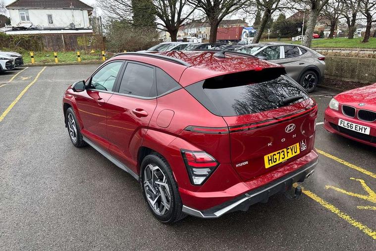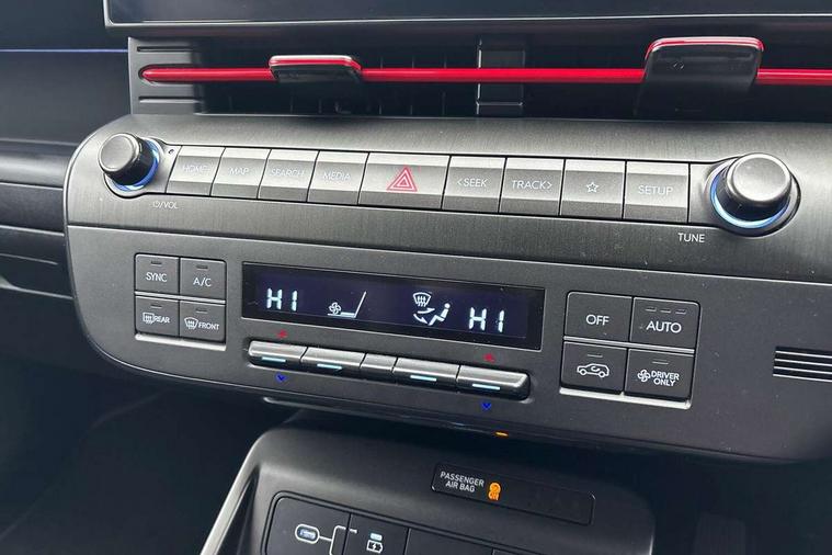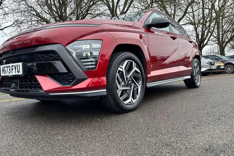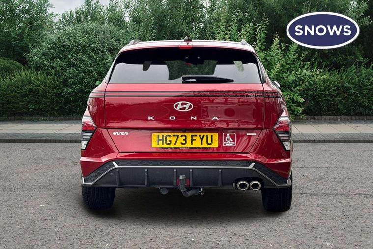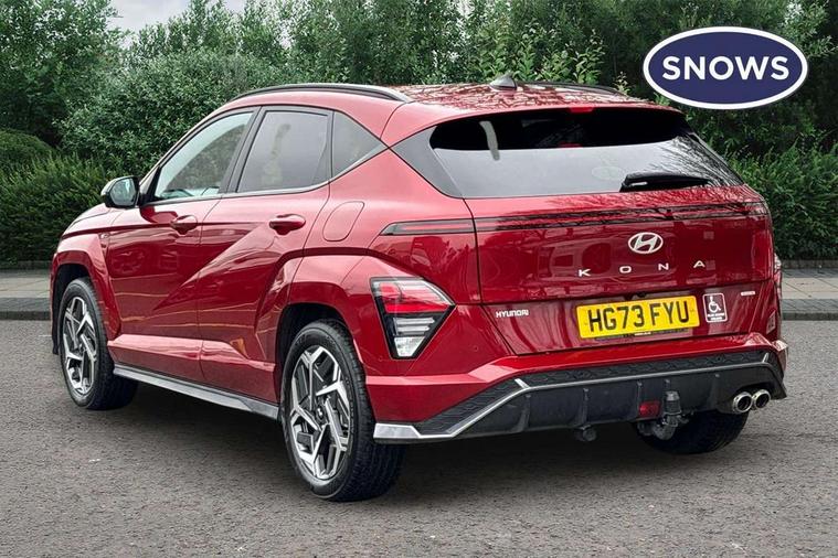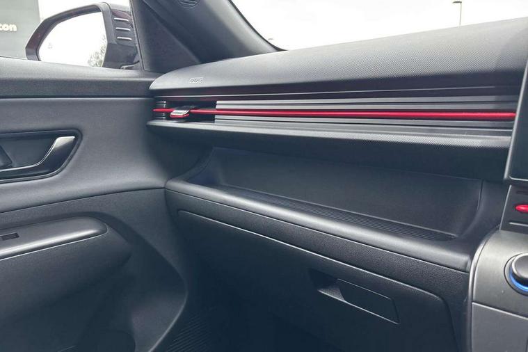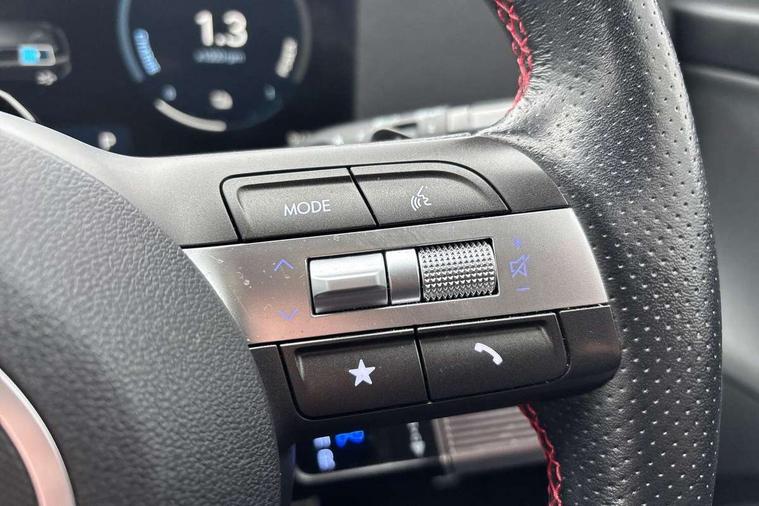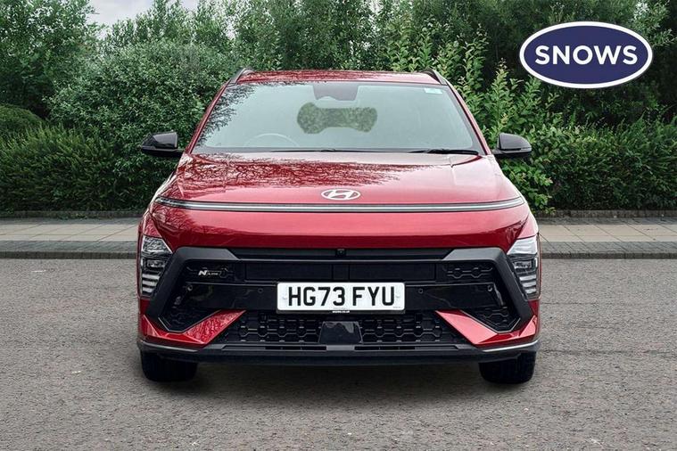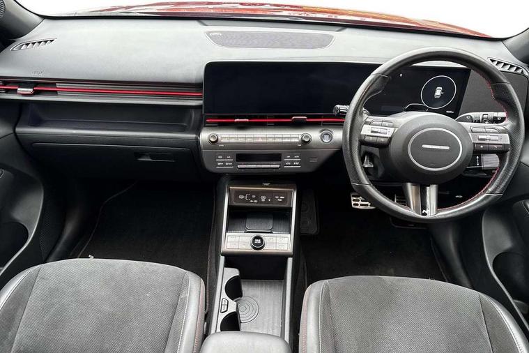 12.3" touchscreen centre console display satellite navigation with bluelink, live services and mapcare, Blind spot collision avoidance assist, Blind spot view monitor, Bluetooth connectivity with voice recognition, Digital clock, Driver status monitor (DSM), Driver supervision instrument cluster with 12.3" LCD display, eCall emergency call system, Feature on demand - Enabled, Forward collision avoidance assist (FCA 1.5) - Car, pededstrian, cycle and junction turning, Front parking sensor, HDA - Highway Drive Assist Level 1.5, Height adjustable power tailgate, Intelligent speed limit assist, Lane follow assist, Lane keep assist, Leading vehicle departure alert (LVDA), Parking Collision Avoidance Assist-Reverse (PCA-R), Parking distance warning - side, Parking system with rear camera and guidance system, PAS, Rear cross traffic collision avoidance (RCCA), Rear parking sensor, Roadside assistance, Safe exit warning (SEW), Smart cruise control with stop and go functionality, Surround view monitor, Windscreen washer fluid sensor and warning indicator, Wireless phone charging pad, Wireless Smartphone Integration includes Apple CarPlay and Android auto, 2 front USB C and 2 rear USB C charging points, Bose Premium Audio system with 7 premium speakers + subwoofer, DAB Digital radio, Steering wheel audio, phone and cruise controls, Auto dimming rear view mirror, Automatic headlights with dusk sensor, Automatic windscreen wipers with rain sensor, Body colour bumpers, Body colour exterior door handles, Body coloured wheel arch inserts, Door mirror LED indicator lights, Electric front windows with anti-trap mechanism and one touch control, Electric rear windows, Electrically adjustable and heated door mirrors, Gloss black door mirrors, Horizon centre LED DRL, LED projector headlights, LED upper and lower rear lights, Power folding door mirrors, Privacy glass - Rear windows and tailgate, Rear roof spoiler with integrated LED brake light, Rear side wing doors, Rear wiper, Roof rails, Solar glass with front door glass and windscreen, Tinted glass in front and rear doors, Windscreen auto defog function, 12V power outlet in front console, 2 zone climate control, 3 seat bench in 2nd row, 40/20/40 split folding rear seat, Adjustable head restraints, Aluminium pedals, Ambient lighting, Driver and passenger front seat pockets, Driver's seat electric adjustments, Driver's seat lumbar support, Driver/passenger sunvisors and illuminated vanity mirrors, Floor mats, Front passenger's seat electric adjustments, Heated front seats, Heated rear seats, Heated steering wheel, Height/reach adjustable steering column, Isofix rear child seat fastenings, Leather wrapped steering wheel, LED centre interior light, LED front interior light, Luggage compartment LED lighting, Luggage net, Luggage shelf, Metal paint effect interior door handles, N Line Alcantara/leather upholstery, Parcel shelf, Rear centre armrest, Rear centre console with air vents, Shift by wire SBW, Single front passenger seat, Ventilated front seats, Vertical adjustment rear head restraints, N Line exterior design pack - Kona, Trailer wiring package - Kona, Airbag - front, front side, curtain and centre front airbag, Anti-lock brake system (ABS), Childproof rear door locks, Downhill brake control, EBD + Brake Assist, Electric parking brake, Electronic stability control, Fasten seatbelt reminder, Fixed 3 point for second row centre passenger seatbelt, Front seatbelt pretensioners, Height adjustable front seatbelts, Hill start assist control (HAC), Passenger airbag deactivate switch, Rear seat alert, Traction control, Tyre pressure monitoring system, Alarm/immobiliser, Deadlocks, Folding key, Locking wheel nuts, Remote central locking, Smart key with keyless entry and engine start/stop button, Five year annual vehicle health checks, Temporary mobility kit (TMK),
