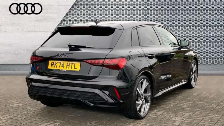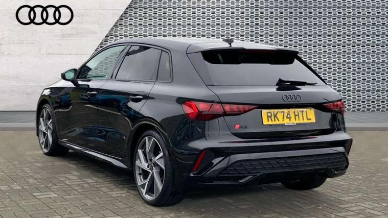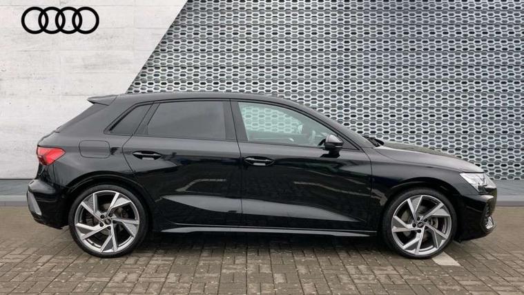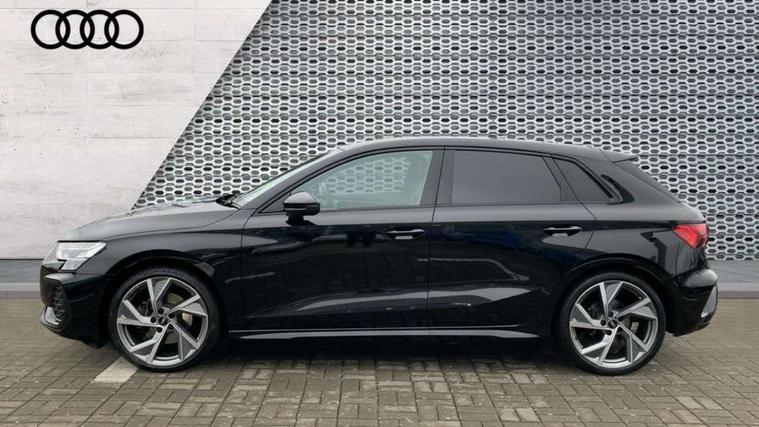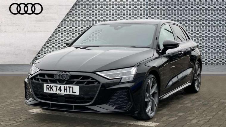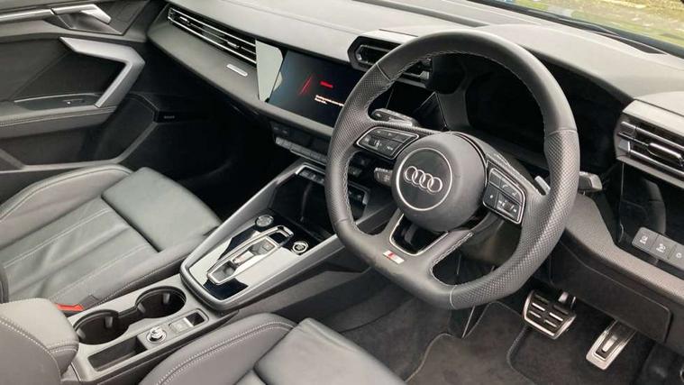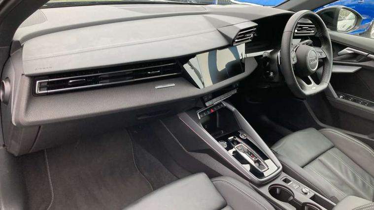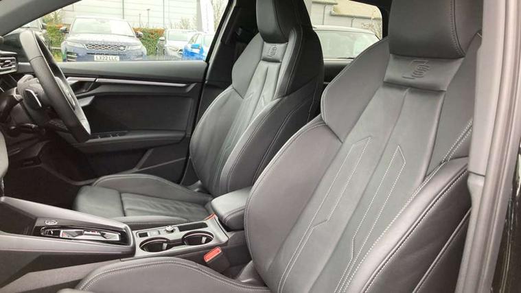 Adjustable speed limiter, Audi drive select, Audi smartphone interface with app store includes wireless Apple carplay, Android auto and Amazon alexa integration, Audi virtual cockpit plus - 12.3" full HD resolution dynamic digital instrument cluster, Automatic start/stop system with recuperation, Bluetooth interface, Camera based traffic sign recognition, Collision avoidance assistant, Cruise control, Distraction and Fatigue warning, e-Call (emergency call), Electromechanical power speed sensitive steering, Lane departure warning system, MMI Navigation Plus with high resolution 10.1" colour touch screen display, Park Assist with parking system Plus, Service indicator, Tailgate, Trip computer, Voice control system with natural language interaction, Diesel particulate filter, Sports suspension, Audi Phonebox light with wireless charging, Audi sound system - 10 loudspeakers including centre loudspeaker and subwoofer, DAB Digital radio, USB ports with charging function in the rear, Acoustic glass windscreen, Anthracite grey Audi rings (front and rear), Audi beam uses LEDs to project the Audi logo onto the ground as you exit your A3, Auto dimming frameless rear view mirror, Black accents front and rear bumpers, Black accents in the area of the Audi single frame grille, Black accents window trims strips, Electrically adjustable/heated/folding/auto dimming door mirrors with integrated LED indications + kerb view function for passenger side, Exterior model badging, Front electric windows, Heat insulating glass windscreen, Illuminated door sills with aluminium inserts at the front with S logo, LED 3rd brake light, LED daytime running lights, LED headlights with LED rear lights and dynamic rear indicators, Light and rain sensors, Privacy glass - dark tinted rear window, rear door and side windows, Rear electric windows, Rear side wing doors, Rear wiper, S roof spoiler, 12V socket and storage compartment in front centre console, 3 seat bench in 2nd row, 3 spoke flat bottomed leather multifunction sport steering wheel with gear shift paddles, 3-zone deluxe automatic air conditioning, 4 way electrically adjustable lumbar support for driver and front passenger, 40/20/40 split folding rear seat bench, Black cloth headlining, Front and rear centre armrest in artificial leather, Front and rear headrests, Front/rear floor mats, Heated front seats, Height and reach adjustable steering wheel, Manual boot compartment lid, Manually adjustable front seats, Rear cup holders, S badging on the steering wheel, Seat side bolsters, Single front passenger seat, Stainless steel pedals and front footrest in black, Twin leather upholstery with front sports seats S embossed logo, Aluminium interior elements pack - A3 Sportback, Multi-coloured LED interior lighting package - A3 Black Edition, 3x3 point rear seat belts, Driver and front passenger airbag with passenger airbag deactivation, Electronic Stabilisation Control (ESC) including ABS, ASR and EDL, First aid kit with warning triangle and 2 safety vests, Front side airbags with head airbags and interaction airbag, Hill hold assist, Pre-sense front with pedestrian and cyclist detection, Seatbelt monitoring, Tyre pressure loss indicator, Anti theft alarm, Anti-theft wheel bolts, Electronically operated child locks, Immobiliser, Remote central locking with safelock, Inlays in black Impressum woven textile,