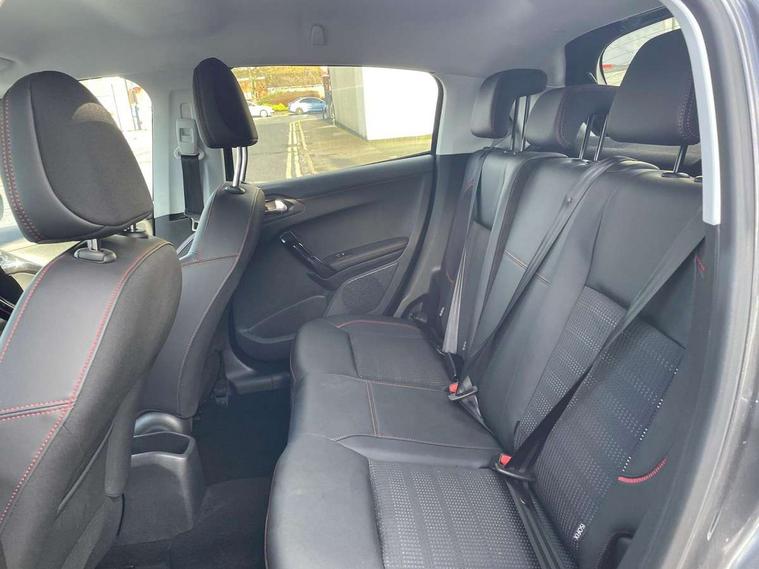 7" Multifunction colour touch screen, Android Auto, Bluetooth system, Connected 3D navigation includes voice control and TomTom Live updates, Cruise control, Electrically assisted power steering, External temperature gauge, Mirror screen with mirror link and car play, Peugeot connect SOS and assistance, Service interval indicator, Speed alarm + Speed limiter, Trip computer, 3.5mm jack for external audio device and USB socket, DAB Digital radio, Front and 2 rear speakers plus 2 tweeters, Steering wheel mounted controls, Automatic activation of hazard warning lights, Black door mirrors, Black fog light surrounds, Body coloured bumpers, Chrome exhaust tailpipe, Colour coded door handles, Cornering front fog lights, Electric front windows + drivers one touch, Electric rear windows, Electrically operated heated door mirrors with electric folding operation, Equaliser grille with chrome 3D markings, Follow me home headlights, GT badging, Intermittent rear wash/wipe, LED daytime running lights, LED Indicators, Rear fog lights, Rear LED lights with boomerang effect, Tinted rear and side windows, 1/3 to 2/3 split folding rear seats, 12V socket, 3 rear head restraints, Aluminium door sill trims, Aluminium pedals, Cloth upholstery, Driver seat height adjust, Driver/passenger sunvisors and vanity mirrors, Dual zone automatic air conditioning, Gear shift indicator, Height adjustable front headrests, Height and reach adjustable steering wheel, Leather and chrome gear knob, Leather sports steering wheel, LED interior lights and illuminated footwells, Passenger seat height adjuster, Rear seat 3 point ISOFIX location mounts x 2, Sport seat with GT Line trim, Visibility pack - 208, 3x3 point rear seatbelts, ABS with Electronic brake force distributor and emergency brake assist, Child safety lock, Driver and passenger airbags with Passenger airbag deactivation system, ESP with Hill Assist, Front and rear curtain airbags, Front side airbags, Traction control, Tyre pressure sensor, Alarm, Deadlock, Remote control central locking, Seatbelt alarm (Driver & Passenger), Thatcham approved Cat 2 immobiliser, Contrast stitching - Red, 15" steel spare wheel,