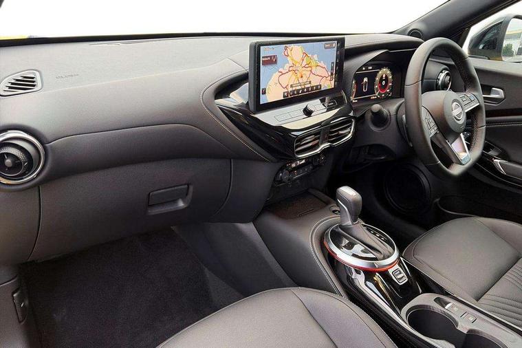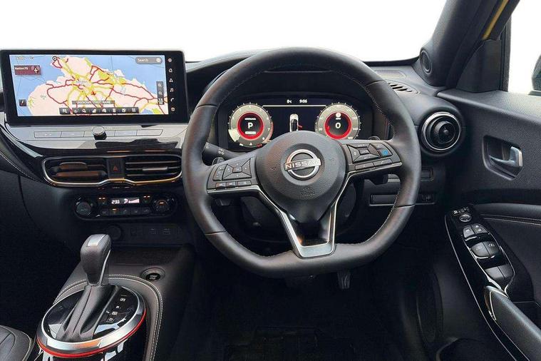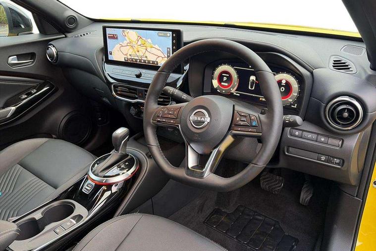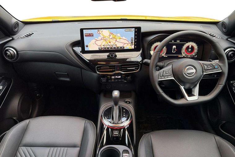 12.3" full colour TFT screen combimeter, Drive modes select (Eco, normal and sport), Emergency and breakdown call, Front parking sensor, Idle start/stop system, Intelligent driver alert system, Intelligent lane intervention, Lane departure warning system, Nissan connect 12.3" touch screen entertainment system, Nissan connect nav with TomTom traffic, Nissan connect services, Outside temperature sensor, Power Steering, Rear parking sensor, Stop/start button, Traffic sign recognition, Trip computer, Voice recognition, WiFi connectivity, Wireless Apple CarPlay and Google Android auto, Wireless Smartphone charger, 10 Bose speakers 8 speakers and 2 headrest speakers for driver/passenger seats, 2 X Rear console USB port, Bluetooth system, USB, Aux-in and 12V socket, Bose personal plus audio system, DAB Digital radio, Auto dimming frameless rear view mirror, Automatic hazard signal with emergency stop signal, Body colour door handles, Electrically adjustable door mirrors with integrated indicators, Follow me home headlights, Front and rear electric window with one touch driver window, High beam assist, LED 3rd brake light, LED daytime running lights, LED headlamps, LED rear fog lamp, LED rear lamps, One touch passenger window, Rear privacy glass, Rear side wing doors, Rear wiper, Roof spoiler, Shark fin roof antenna in solid Black, Solid black door mirrors, Three blink turn signal, 3 height adjustable rear headrests, 3 seat bench in 2nd row, 60/40 split folding rear seat, Card holder on driver sunvisor, Door ambient lighting, Driver seat back pocket, Driver side rear coat hanger, Driver/passenger sunvisors and vanity mirrors, Front and rear cabin lights, Front armrest, Front door pockets with bottle holders, Front head restraints, Front/rear passenger grab handles, Gear console ambient circle lighting, Height adjustable driver's seat, Internal chrome door handles, Luggage board, Luggage space lighting, Monoform sporty seats, Multifunction steering wheel, Passenger seat back pocket, PVC fabric upholstery, Rear door bottle holders, Single front passenger seat, Smooth synthetic leather steering wheel, Steering wheel mounted gearshift paddles, Synthetic leather kneepad, Synthetic leather shift knob, Telescopic steering wheel adjustment, Two cupholders in front centre console, Two rear isofix child seat anchorage points with top tether, Welcome light and console tray ambient lighting, Comfort pack - Juke, Heat pack with height adjustable passenger seats - Juke, ProPilot pack - Juke Auto, ABS with EBD and brake assist, Active ride control, Active Trace Control, Driver and passenger airbags, Driver and passenger side airbags, Electric handbrake with auto hold function, Electronic Stability Programme (ESP), Front and rear curtain airbags, Height adjustable seatbelts, Hill start assist, Intelligent emergency braking with pedestrian and cyclist recognition, Rear door child safety locks, Seatbelt reminder for driver/front passenger and rear seats, Three 3 point rear seatbelts, Traction control, Tyre pressure monitoring system, VDC Dynamic Vehicle Control, Alarm, Immobiliser, Intelligent key and start push button with walk away lock and approach unlock functions, Remote central locking, 19" Alloy wheels, Tyre puncture repair kit,