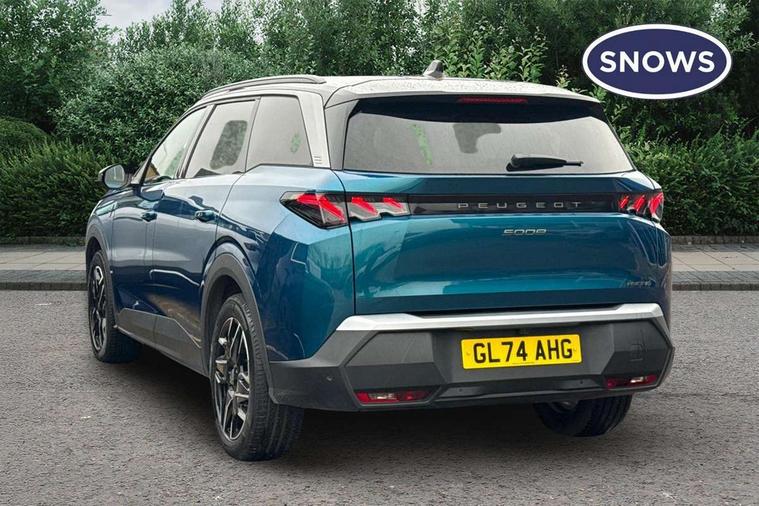 Adaptive cruise control with Stop and Go, Bluetooth with two microphones (Connect up to 2 phones), Drive modes select (Eco, normal and sport) with configurable ambient lighting, Driver foot rest, Driver profile selection, E-call, Exterior temperature indicator with ice warning, Front parking sensor, Front passenger seat detection, Hands free Smart Electric Tailgate (foot operated), Lane keep assist, Manual gear changes via steering mounted paddles, Multi function trip computer, Natural voice recognition, PEUGEOT i-Cockpit - 21" HD panoramic curved display incorporating instrument panel and touchscreen with 3colour themes, PEUGEOT i-connect advanced HD fully customisable touch screen, Navigation with Tom Tom Live updates and over the air map updates, PEUGEOT SOS and assistance, Rear parking sensor, Speed limit and traffic sign recognition and recommendation, Wireless mirror screen with apple carplay and android auto, Wireless smartphone charger with status light and ambient lighting, Dynamic stability control and electronic anti-skid system, 1x USB-C port in front, 6 speakers, AM/FM bi-tuner, DAB Radio (Digital Audio Broadcasting), Peugeot customisable virtual iToggles, 5008 model designation badges front and rear in basalt grey, Acoustic windscreen, Automatic hazard light activation upon heavy brake application, Automatic headlamp activation, Automatic windscreen wiper activation with interval wiping intensity control, Black diamond roof and floating effect rear spoiler finished in nera black metallic, Body coloured exterior door handles, Dark tinted privacy glass for rear door, Tailgate and Quarter windows, Door mirrors - Welcome lighting and integrated LED indicators, Electric adjustable/heated/folding door mirrors, Flat blade wipers with magic wash integrated nozzles, Frameless electrochrome rear view mirror, Front and rear electric windows with one touch, Front grille with body coloured accents, Gloss black connecting strip between rear lights, Gloss black finish B pillar, Gloss black roof rails, Grained black lower door claddings and wheel arches, Hybrid rear badging in basalt grey, Laminated windscreen, LED exterior lighting, LED third brake light, Lower front and rear bumper trims in meteor grey, Orbital gloss black door mirrors, Peugeot 3-claw signature front and rear daytime running lights, PEUGEOT shield on front wings, Pixel LED Technology headlights with adaptive high beam assist, Rain sensor, Rear full LED 3D peugeot signature claw effect lights with daylight function, Rear side wing doors, Rear wiper, Tailgate with heated rear window, 2 cupholders in front centre console with closed storage, 2 seat bench in 3rd row, 2nd Row Manual Window Blinds, 3 seat bench in 2nd row, 3x 12V sockets (Cabin front and rear and boot), 4 Grab handles retractable and damped, 4 tie down luggage rings, 40/20/40 folding 2nd row seat backrest with 60/40 base with easy access to 3rd row seat, Additional rear blower, Aluminium pedals, Arch design central console with concealed storage, Central front armrest with ventilated storage compartment and LED lighting, Chrome finish interior door handles, Compact heated multifunction steering wheel with full grain leather Iced Clay stitching, gloss black and satin chrome detailing and GT badge, e-Toggle compact gear selector, Electric power steering with reach and rake adjustable steering column, Glasses storage box, roof mounted, LED boot light, LED footwell lights, LED front and rear roof lights, LED Glovebox light, LED illuminated driver and passenger concealed sunvisor mirrors, Luggage cover, Luxury front and rear carpet mats with Iced Clay stitching and GT logo, Mistral black pillars and headlining, Quick launch cabin heating/cooling function, Rear air vents, Rear centre 3 point seat belt, Roll up awning fitted to tailgate, Roof lining - Meteor grey, Seatbelt unfastened on the move audible and visual alert for front and rear seats, Single front passenger seat, Stainless steel PEUGEOT door sill trims, Tri zone climate control, Twin USB charging ports in the rear (Type C), Two bag hooks, Under floor storage in boot, 2x Isofix child seat fitting on outer rear seats with zipped cover, 3x3 point rear seat belts, ABS (Anti-lock Braking System) with (EBD) Electronic Brakeforce Distribution, Adaptive driver and front passenger airbags with passenger airbag deactivation function, Advanced Emergency Braking System with radar (AEBS3) providing night detection of pedestrians and cyclists, Child locking functionality on rear doors, Electronic parking brake, Emergency Brake Assist (EBA), Front and rear curtain airbags, Front and rear side airbags, Front optimised safety headrests and 3 x rear retractable headrests with height adjustable, Front/rear disc brakes, Hill start assist, Post collision safety brake, Seatbelts - Front and rear outer seats with pyrotechnic pretensioners and force limiters, Tyre under inflation monitoring and detection (Indirect), 2x Keys (Lock, Unlock, Boot release function with concealed key), Acoustic vehicle alert system (AVAS), Automatic door locking when moving off, Deadlocking system, Electronic code immobiliser, Exterior passenger door lock, Locking wheel nuts, Peugeot Open and Go (keyless entry and push button start), Seatbelts reminder and unfastend warning indicator, Thatcham category 1 Perimetric and volumetric alarm with anti-lift detection, Aluminium printed dashboard and front door panel Alcove decor, Textile decor for dashboard, door panels and centre console arch, 19" YARI diamond cut alloy wheels with star center cap in orbital black, Michelin e-primacy class A tyres, Tyre repair kit includes 12V compressor, Sealant and storage box,