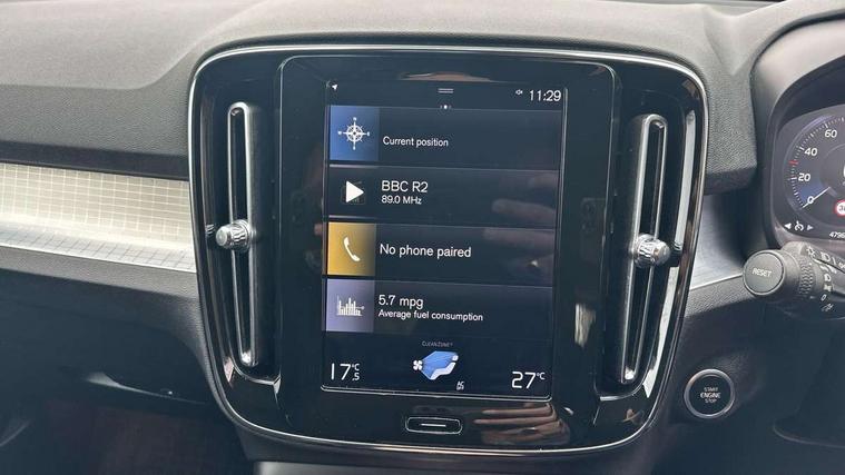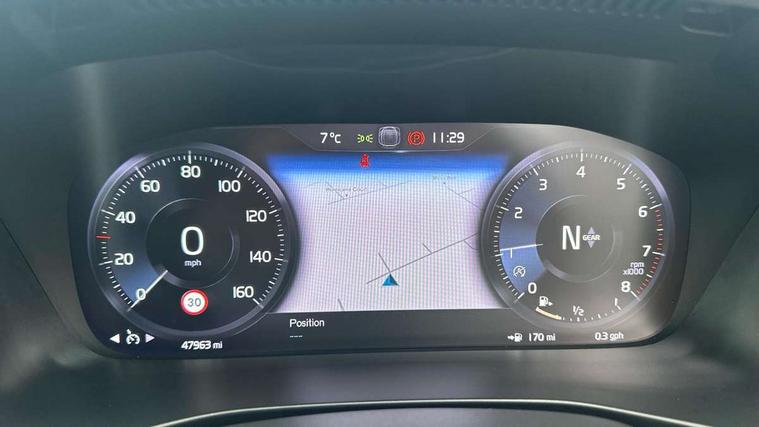 12.3" Active TFT crystal driver's instrument display, 9" centre console portrait touch screen, Adjustable steering wheel force, Bluetooth hands free telephone kit, Drive mode selector, Lane keep assist with driver alert control, Oncoming Lane Mitigation, Sensus navigation with European mapping and traffic information, Speed limiter, Speed sensitive steering, Voice control system, Volvo on call, DAB Digital radio, Steering wheel mounted remote controls, Adaptive brake lights with high level LED brake lights, Auto dimming interior mirror, Automatic headlamp levelling, Colour coordinated auto folding and heated power door mirrors, Dark grey front grille with chrome surround, Electrically adjustable and heated door mirrors, Front and rear electric windows, Front tread plates, High Gloss silver front and rear skid plate, Home safe and approach lighting, LED Headlights + Active high beam incorporating daytime running lights, Rain sensor windscreen wipers, Rear side wing doors, Rear wiper, Roof antenna, Roof spoiler, Silver roof rails, Visible VIN plate, 12V socket in front tunnel console and luggage compartment, 2 zone electronic climate control with Clean zone air quality system + pollen filter + cooled glovebox, 3 seat bench in 2nd row, 3 spoke leather steering wheel with chrome trim, 60/40 split folding rear seat, A-pillar parking ticket holder, Centre console cupholders and storage, Driver seat height/tilt/lumbar adjust, Driver's side lower dashboard credit card storage compartment, Floor mats, Front footwell illumination, Front reading light and theatre lighting, Glovebox bag hook, Height/reach adjustable steering column, Illuminated luggage compartment, Illuminated vanity mirrors + ticket holder, Isofix attachments on outer rear seats, Leather gearknob, Load protection net, Lockable/illuminated glovebox, Passenger seat adjustable for lumbar support, Rear armrest / integral cup holders / storage tray, Single front passenger seat, Underfloor stowage compartment, 3x3 point rear seatbelts, City safety, Drivers knee airbag, DSTC-Dynamic Stability and Traction Control, Dual stage driver/passenger airbags, Electronic parking brake with auto hold, Fasten seatbelt reminder, First aid kit, Hill descent control, Hill start assist, Inflatable curtain, Passenger airbag cut-off device, Road sign information display, Run off Road Mitigation, Run off Road Protection, Seatbelt reminder and pretensioners, SIPS (Side Impact Protection System), SIPS airbags, Slippery road and hazard light alert, Tyre pressure monitoring system, Vehicle deceleration control with Anti-lock Brake System, Electronic Brake Distribution and Emergency Brake Assist, Warning triangle, WHIPS whiplash protection system - front, Anti-theft alarm including immobiliser/volume sensor + level sensor, Fuel flap with deadlocking system, Key integrated remote control central locking, Locking wheel nuts, Private locking for tailgate,