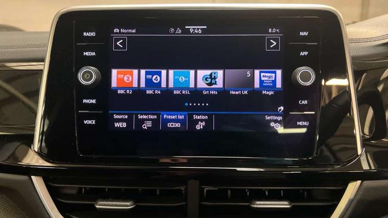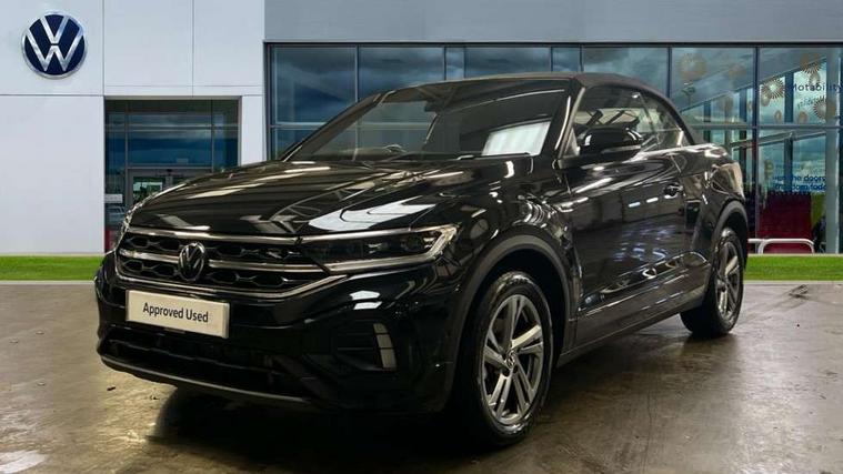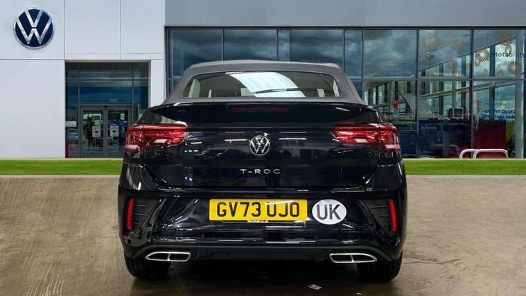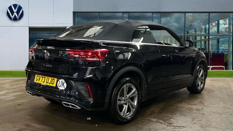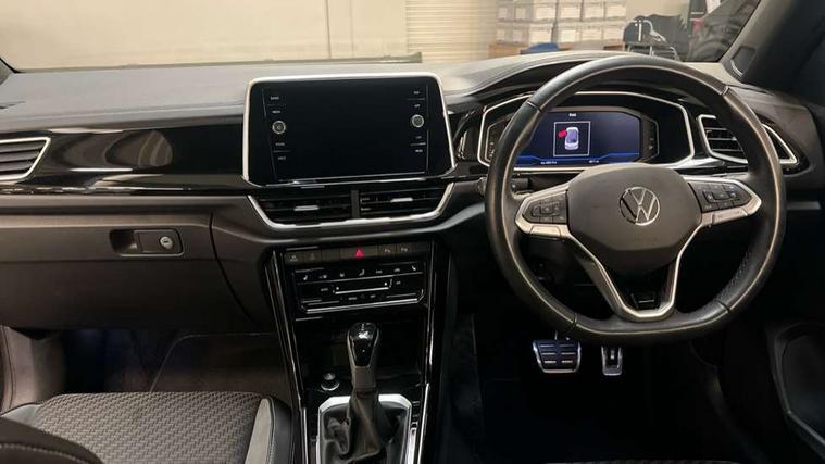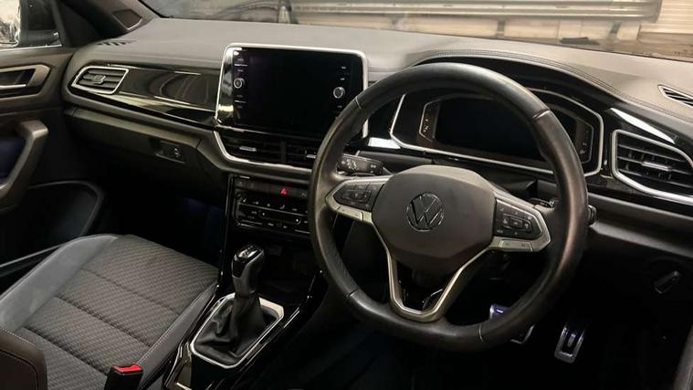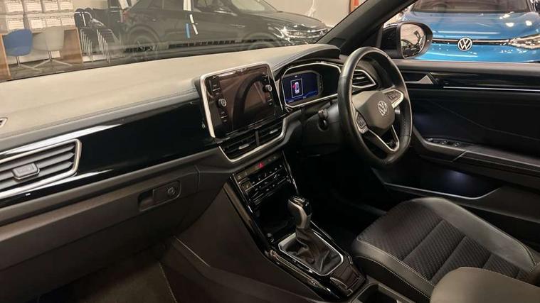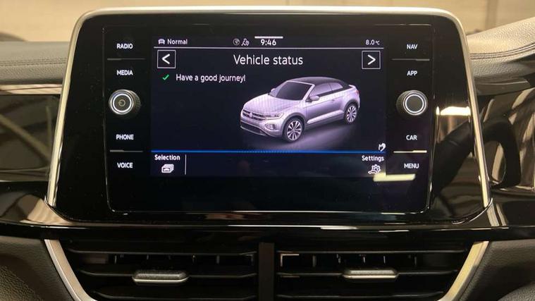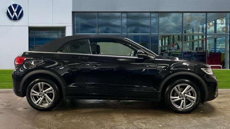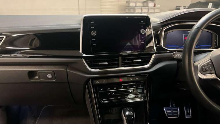 Adaptive cruise control and speed limiter, Advanced driver attention and drowsiness monitor, Bluetooth mobile phone interface, Brake pad wear indicator, Car information display, Digital Cockpit Pro with 10.25" Display, Driver tips and journey analysis, Emergency call service, Modified key software - reduce switch off time for key status change to Long no motion, Multifunction computer with visual gear change recommendation for fuel consumption, Multifunction front facing camera, Online services, Park assist including front and rear parking sensors, Speedo and rev counter, electronic odometer, trip, service interval display and exterior temperature gauge, Start/stop system with brake energy recovery, Tailgate/trunk lid release from outside, Warning sound and light for front seatbelts unfastened, Diversity antenna for FM reception, Music playback - MP3, WMA and AAC files, SMS functionality - read, compose and send SMS messages using touch-screen display, Title and cover art display, USB-C Interface and USB charging socket, We Connect and We Connect Plus functionality, Ambient lighting with logo projection, Auto dimming interior rear view mirror, Automatic hazard lights activation under emergency braking, Automatic headlight control with LED separate daytime running lights with coming/leaving home function, Black roof, Body colour door handles, Body colour rear spoiler, Chrome effect left and right trapezoid exhaust tailpipe fascia surround, Chrome trim on upper and lower radiator grille, Dark red rear combination lamps in LED technology, Dusk sensor, Exterior mirrors aspherical on driver side, convex on front passenger side, Heat insulating glass windscreen, High level 3rd brake light, LED rear number plate lights, Power operated canvas convertible top, Power windows with comfort operation and circuit breaker, R-Line design body coloured bumpers, Rain sensor, Rear boot, Rear exhaust tailpipe, Rear fog light on one side and reversing lights on both sides, Remote electrically foldable door mirrors, puddle lights and reverse activated passenger door mirror, Volkswagen roundel, Windscreen wiper with intermittent wipe light, Without exterior ambient lighting, 12V socket in centre console storage area, 2 LED front reading lights, 2 seat bench in 2nd row, 50:50 Split folding rear seat backrests with fixed rear seat bench, Air care climatronic air conditoning system with active combination filter and 2-zone temperature control, Black door lower parts with chrome trim, Chrome plated surround to light, mirror and window switch, Door and side trim panel with leatherette insert, Easy entry backrest release, Front and rear carpet mats with black stitching, Front centre armrest, Front cupholders x 2, Front door pockets, Front seat back storage pockets, Front sports comfort seats with manual height adjustment, Heated leather wrapped multi function sports steering wheel with tiptronic, Height/reach adjust steering wheel, Inserts of front seats and outer rear seats in ArtVelours titan black, Instrument lighting, white adjustable panel illumination, Interior light delay, Interior light in footwell, Interior lighting with switch off delay and contact switches on all doors, Interior white ambient lighting and surround lighting, Isofix child seat preparation, Lockable glove compartment with light, Luggage compartment lighting, Power adjustable lumbar support in front, Rear head restraints, Single front passenger seat, Stainless steel pedals, Sun visors with illuminated vanity mirrors, Unique R Line door sill protectors, Driver assistance pack without proactive passenger protection - T-Roc Cabriolet DSG, Sports pack - T-Roc cabriolet, 2 x 3-point seatbelts/outer rear seats with ECE label, Driver and front passenger airbag with front passenger airbag deactivation, Driver and front passenger safety-optimised head restraints, Drivers seatbelt reminder, Electronic parking brake, Electronic Stability Control (ESC) including ABS, ASR and EDL, Front and rear disc brakes, Front assist with autonomous emergency braking, Pedestrian monitoring, Predictive pedestrian protection, Rigid safety cell with front and rear crumple zones, Side airbag/thorax airbag system, for front passengers, Three point height adjust front seatbelts + pretensioners, Two tone horn, Tyre pressure loss indicator, Volkswagen roadside assistance, Anti-theft alarm system with interior protection and central locking system with SAFELOCK, radio remote control and 2 remote control folding keys, Electronic engine immobiliser, Trims for alloy wheels,