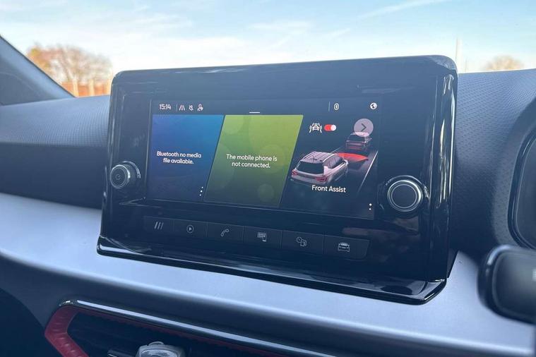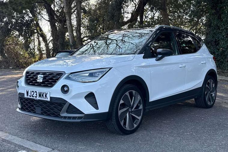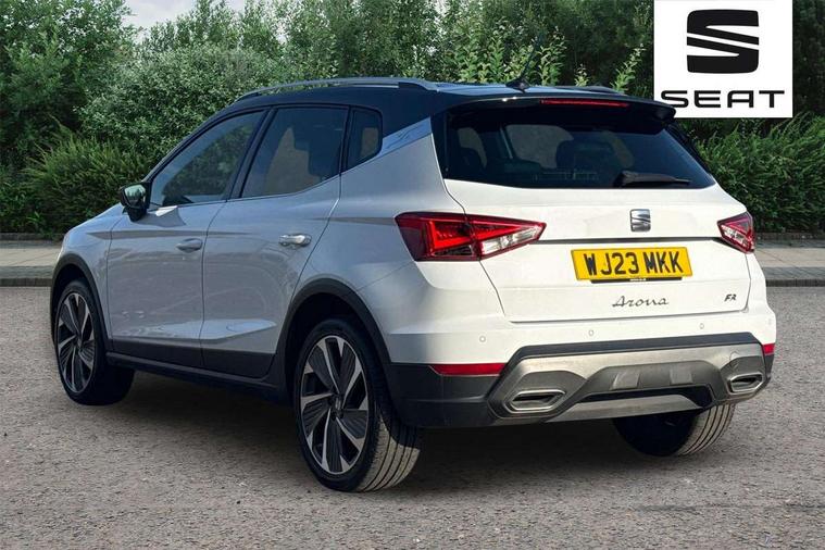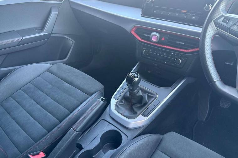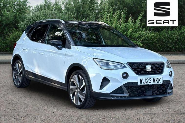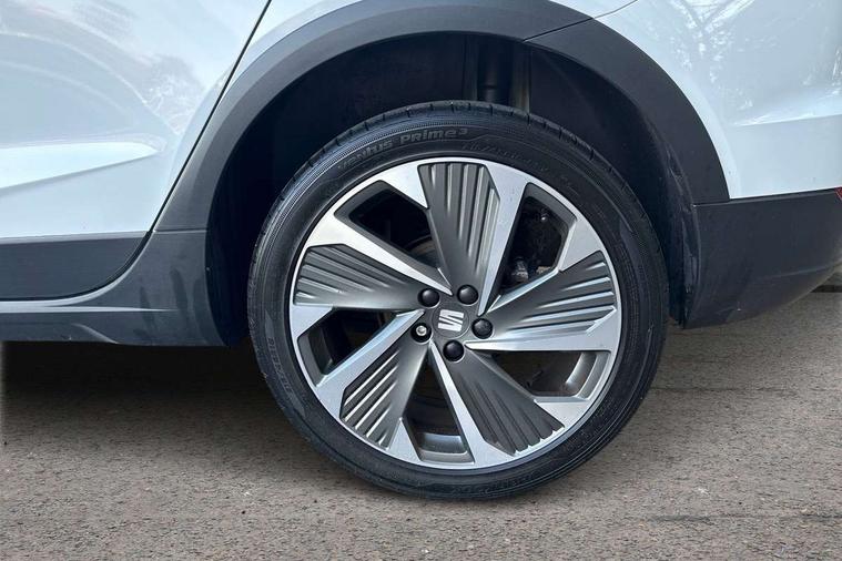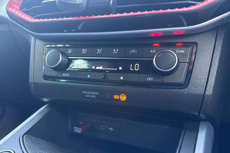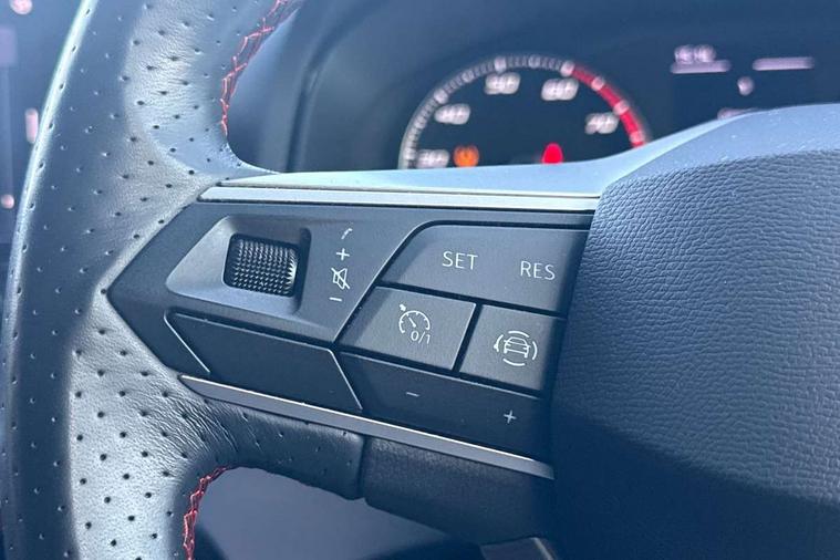 'Lights On' Reminder warning buzzer, Analogue cockpit with physical dials, Digital clock, E-call, Electric speed sensitive power steering, Full Link Smartphone Integration with Mirror Link, Apple Car Play, Google Android Auto with USB Type C cable for Apple and Android compatibility, Lane keeping system, Low fuel warning light, Outside temperature display, Rear parking sensor, RPM counter, Seat connect with safety, service and remote, SEAT Drive profile - Four different models normal-sport-eco-individual, steering response, throttle response, Trip computer, Wireless phone charger, Bluetooth interface for hands free and audio streaming, DAB digital radio and AM/FM radio, Media system with 8.25" colour touchscreen with USB port (type c), Steering wheel mounted audio controls, Anti theft roof antenna, Automatic activation of hazard warning lights, Body coloured bumpers, Body coloured door handle inserts, Chrome roof rails and window surrounds, Dark tinted rear windows, Dimming rear view mirror, Electric front/rear windows, Electrically adjustable and heated door mirrors, Front fog lights with cornering function and rear fog light, FULL LED automatic headlights with dynamic headlight range control, coming and leaving home, LED daytime running lights, LED rear tail lights and licence plate lights, Protective side mouldings, Rear side wing doors, Rear spoiler, Rear window wash/wipe, Roof colour door mirrors, Third brake light, Twin exhaust pipe styling hidden exhaust pipe, Visible VIN plate, Windshield wiper with intermittent control and potentiometer, 2 cupholders, 3 seat bench in 2nd row, 60/40 split folding rear seat, Aircare filter, Black interior roof, Double boot floor, Driver sunvisor with covered mirror + card holder, Dual zone climate control, Front comfort seats, Front courtesy light with 2x front and 2x rear reading lights, Gear shift indicator, Height adjustable front seats, Height/reach adjustable steering column, Illuminated boot, Instrument lighting with brightness control, Interior ambient lighting, Interior light in footwell, central console and door panel, ISOFIX points in outer rear seats with top tether anchorage points, Microsuede cloth upholstery, Passenger sunvisor with vanity mirror, Perforated flat bottomed leather steering wheel/gear knob/handbrake with red stitching and FR logo, Single front passenger seat, Two front and three rear height adjustable headrests, Interior chrome pack - Arona, 3 point seatbelts on all rear seats, ABS, Active front headrests, Child locks on rear doors, Driver and front passenger airbags with front passenger airbag de activation, front side and curtain airbags, Electronic stability control, Emergency Brake Assist (EBA) and front assist, Front and rear seatbelt reminder, Hill hold control, Multi-Collision braking, Tiredness recognition system, Traction control, Tyre pressure monitoring system, Alarm with back-up horn, Electronic engine immobiliser, KESSY Keyless entry and go, Locking wheel bolts, Remote central locking + deadlocks, Tow away protection, Titan black dashboard,