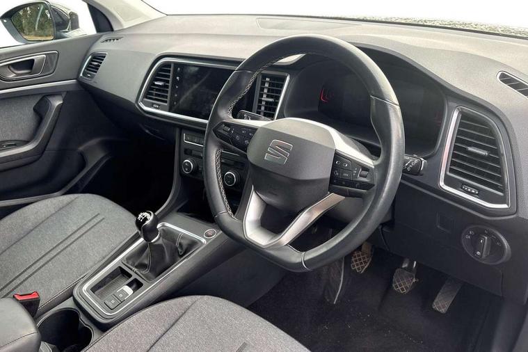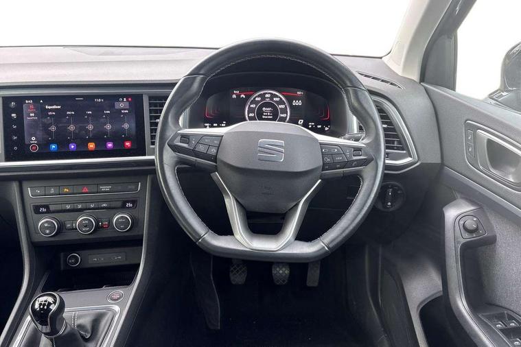 8" Digital cockpit, Colour multi-function on board computer display, Cruise control system with speed limiter, E-call, Outside temperature gauge, PAS, SEAT drive profile with driving experience button - Normal, Sport, Eco and Individual mode, steering and throttle response, Self parking functionality (includes front and rear parking sensors), Start/stop system, Tailgate, Trip computer, Wireless full link smartphone integration, Wireless phone charger, Steering wheel mounted audio/phone controls, Black wheel arch surrounds, Body colour bumpers, Chrome front grille frame, Chrome roof rails, Chrome side window trim, Daytime running lights, Door mirrors with welcome light silhouette, Dynamic headlight range control with self adjusting whilst driving, Electric adjustable/heated/folding door mirrors, Front and rear electric windows, Full LED headlamps with lens and LED front fog lamps with cornering function, LED rear tail lights with dynamic indicators, Rear fog lights, Rear side wing doors, Rear wash/wipe, Simulated exhaust pipes, Third brake light, Variable front intermittent wipers, 12v socket in front, 3 seat bench in 2nd row, 60/40 split folding rear seat, Cloth upholstery with front comfort seats, Drawer under right front seat, Dual zone climate control, Front and rear head restraints, Front centre armrest, Front seat back storage pockets, Height adjustable driver and passenger seat with lumbar adjustment, ISOFIX points in outer rear seats with top tether anchorage points, Leather steering wheel and gear knob, Rear armrest and easy back seat release mechanism from boot, Single front passenger seat, Interior lighting pack - Ateca, Navigation system pack with DAB - Ateca, 3x3 point rear seatbelts, ABS, Traction control system (TCS), Electronic stability control (ESC) and Electronic differential lock system (XDS), Airbags - Driver and front passenger airbag with deactivation, front side, two curtain and driver's knee airbags, Electric parking brake with auto hold function, Front and rear seatbelt reminder, Front assist with autonomous emergency braking, Hill hold control, Manual rear child locks, Single tone horn, Tiredness recognition system, Traction control, Tyre pressure monitoring system, Alarm, Keyless entry, Locking wheel bolts, Remote central locking, Chrome interior detailing, 18" Performance machined alloy wheels 36/2 in nuclear grey,