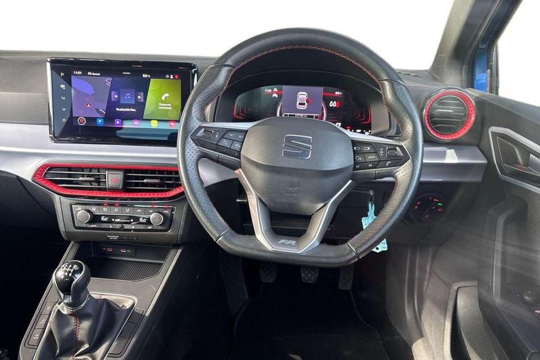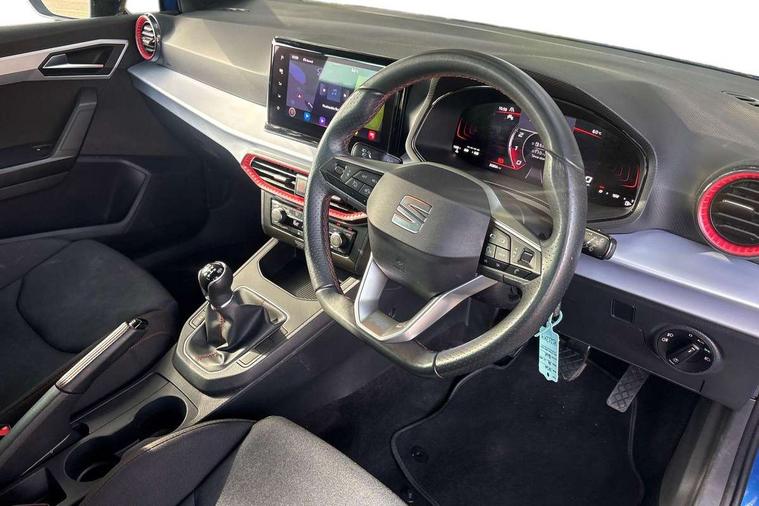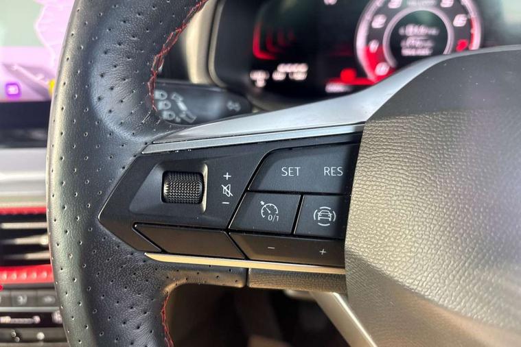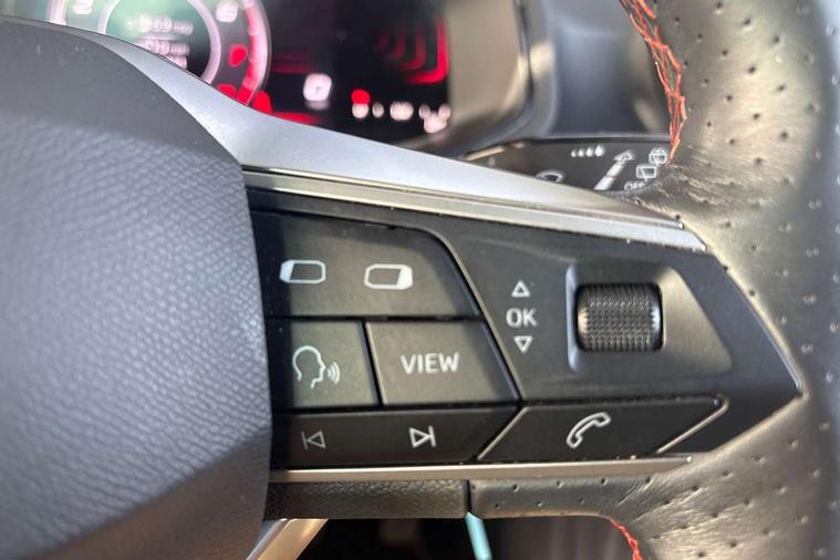 'Lights On' Reminder warning buzzer, 8" Digital cockpit, 9.2" touchscreen navigation system with type C USB socket, Voice control and DAB/AM/FM radio, Auto start and stop system, Bluetooth audio streaming with handsfree system, Digital clock, E-call, Full link smartphone integration with mirror link, wireless apple carplay, Google android auto + USB Type C cable for apple and android devices, Lane assist, Low fuel warning light, Outside temperature gauge, Power Steering, Seat connect with safety, service, remote and online, SEAT drive profiles and ECO function, SEAT logo boot release, Speed limiter, Trip computer, Sports suspension, Auxiliary input socket, Radio/MP3 player, SD card slot, Steering wheel mounted controls, Anti theft roof antenna, Auto dimming rear view mirror, Automatic rain sensing wipers, Black door mirrors, Body colour bumpers, Body colour door handles, Brilliant black window surrounds, Dark tinted rear windows, Electric adjustable/heated/folding door mirrors, Electric front windows, Electric headlight adjustment, Electric rear windows, Front/rear fog lights, FULL LED automatic headlights with dynamic headlight range control, coming and leaving home, LED daytime running lights, LED tail lights, Rear roof spoiler with FR twin exhausts, Rear side wing doors, Rear wiper, Third brake light, 3 seat bench in 2nd row, 60/40 split folding rear seat, Ambient interior lighting, Chrome detailing and black headlining, Cloth upholstery, Dual zone climate control with combination filter, Front courtesy lights, Front cupholders x 2, Front reading lights, Gear shift indicator, Glovebox, Height adjustable front and rear headrests (five), Height adjustable front seats, Height/reach adjust steering wheel, Illuminated air vent surrounds, Illuminated boot, Instrument lighting with brightness control, Isofix, Leather multifunction flat bottomed sports steering wheel, Passenger sunvisor, Single front passenger seat, Sports seats, Sunvisors with mirror and driver side card holder, 3 point seatbelts on all 3 rear seats, ABS, Active front headrests, Child locks on rear doors, Electronic stability control, Energy recovery system, Front assist forward collision warning and autonomous emergency braking, Front driver and passenger side airbags with curtain airbag and front passenger airbag deactivation, Hill hold control, Multi-Collision braking, Seat belt reminder for front and rear seats, Tiredness recognition system, Tyre pressure monitoring system, Electronic engine immobiliser, Locking wheel bolts, Perimeter alarm and interior monitoring with backup horn and tow away protection, Remote central locking + deadlocks, 17" Alloy wheels in Brilliant silver,