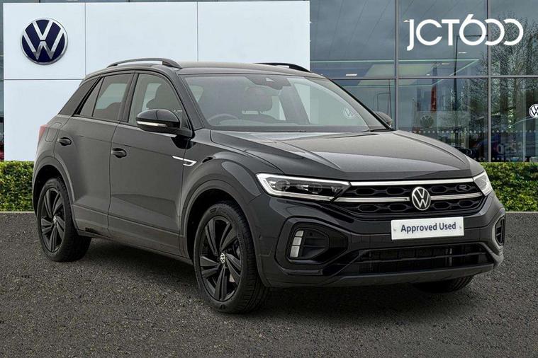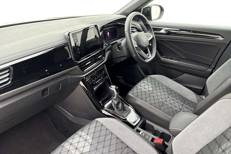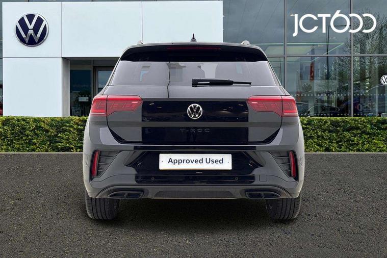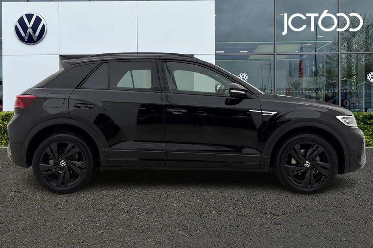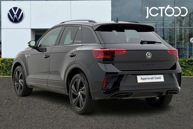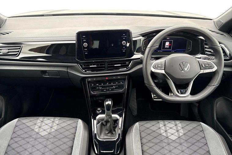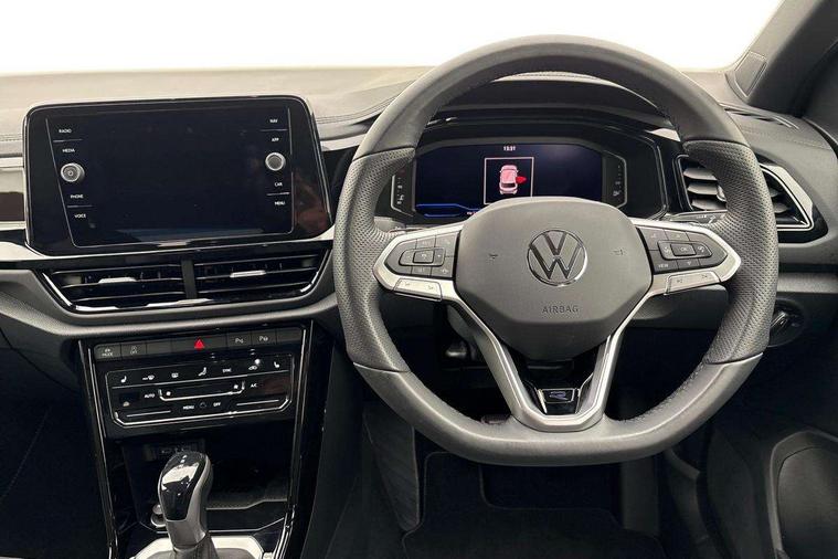 10.25" Digital cockpit pro, Advanced driver attention and drowsiness monitor, Emergency call service, Lane keeping system Lane Assist, Mobile phone interface, Modified key software - reduce switch off time for key status change to Long no motion, Online services, Park assist including front and rear parking sensors, Power assisted speed sensitive steering, Service interval indicator, Tailgate/trunk lid release from outside, Think blue trainer driver tips and journey analysis, Warning sound and light for front seatbelts unfastened, Wireless app connect, Battery regeneration during braking, Rear shock absorption chassis with increased ride height, Start/stop function with battery regeneration, DAB Digital radio, Diversity antenna for FM reception, Front and rear 6 speakers, Music playback - MP3, WMA and AAC files, Premium USB cable in choice of either Apple or Android smartphone compatibility, SD card slot, Simultaneous pairing of 2 compatible mobile devices, Title and cover art display, We Connect and We Connect Plus functionality, Auto dimming interior rear view mirror, Automatic hazard lights activation under emergency braking, Automatic headlight control with LED separate daytime running lights with coming/leaving home function, Dynamic cornering light, Electrically adjustable and heated door mirrors, Extended roof spoiler, Exterior mirrors aspherical on driver side, convex on front passenger side, External USB type C socket and charging sockets, Front windscreen wiper with intermittent wipe and 4 position delay, Heated rear window, Illuminated front grille, IQ LED matrix headlights, LED 3rd brake light, LED rear number plate lights, LED rear tail lights with dynamic turn signal, Light mode for poor weather, rain, fog or snow, Power windows with comfort operation and circuit breaker, R-Line design body coloured bumpers, Rain sensor, Rear exhaust tailpipe, Rear fog light on one side and reversing lights on both sides, Rear side wing doors, Rear wash/wipe with intermittent wipe setting, Remote electrically foldable door mirrors, puddle lights and reverse activated passenger's door mirror, 12V power socket in centre console, 3 rear head restraints, 3 seat bench in 2nd row, 4 load lashing points in luggage compartment, Air care climatronic air conditoning system with active combination filter and 2-zone temperature control, Artvelours cloth upholstery, Black roof lining, Chrome plated radiator grille inserts, air vent surrounds and light switch surrounds, Door and side trim panel with leatherette insert, Drawer under drivers seat, Driver seat height adjust, Driver's seat lumbar support, Front + rear carpet mats, Front centre armrest, Front comfort sports seats, Front cupholders x 2, Front footwell illumination, Front reading light, Front scuff plates with R Line logo, Front seat back storage pockets, Glove compartment door with light, Instrument lighting, white adjustable panel illumination, Interior ambient lighting and surround lighting, Interior light delay, Isofix child seat preparation, Leather gearshift handle, Leather wrapped multifunction steering wheel with paddle shift, Load-through provision with cup holder when folded down ('Unsplit rear seat bench, split folding backrest, with centre armrest), Luggage compartment lighting, Non-folding front passenger seat backrest, Passenger seat height adjuster, Passenger seat lumbar support, Single front passenger seat, Stainless steel pedals, Storage compartment in left and right luggage area, Storage compartment in rear doors, Storage compartments in driver and front passenger doors, Sunvisors with illuminated vanity mirrors, Variable boot floor, height adjustable and removable, Winter pack without heated windscreen washer jets - T-Roc, 3 point height adj front seatbelts + pretensioners, 3 point seatbelts in outer rear with ECE label, ABS, Child locks on rear doors, City emergency braking and pedestrian monitoring, Driver and front passenger airbag with front passenger airbag deactivation, Driver and front passenger safety-optimised head restraints, Drivers seatbelt reminder, Electronic parking brake, Electronic Stability Control (ESC) inc EDL (Electronic Differential Lock) and ASR (Traction Control), Front and rear passengers curtain airbag system including front side airbags, Front disc brakes, Hill start assist, Predictive pedestrian protection, Rear disc brakes, Two tone horn, Tyre pressure loss indicator, Volkswagen roadside assistance, Tool kit, Trims for alloy wheels, Tyre mobility kit including compressor and sealing foam,
