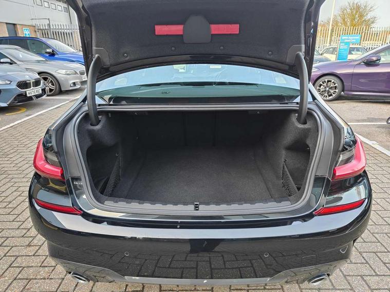 Active guard plus, Attentiveness assist, Bluetooth hands free facility with USB audio interface with audio streaming, BMW Live Cockpit Professional Nav with 12.3" instrument display + 10.25" display, Intelligent Voice Assist, BMW OS 7, HDD, 2USB, 4G LTE connect, BMW service history, BMW Teleservices, Brake pad wear indicator in front and rear, Check Control warning system for monitoring of lights and door/luggage compartment open warning, Condition based service, Cruise control with brake function + speed limiter, Electric power steering with Servotronic steering optimised at all speed ranges, iDrive controller on centre console, Instrument cluster with speedometer with mph readout, tachometer, fuel gauge and oil temperature gauge, Integrated owners handbook, Oil sensor for level and grade, warning by check control system, On board computer - average speed+fuel consumption, service interval, clock/date, odometer/trip meter, outside temperature display and ice warning, Optimum shift indicator, Personal Profile - automatic lock when driving away selectable, Variable sport steering, 48V Mild hybrid technology, Balanced 50/50 weight distribution, Battery cut-out switch, Diesel particulate filter, Drive performance control - ECO PRO, comfort and sport modes, Incorrect fuelling protection, Larger capacity fuel tank, M sport suspension, Stroke dependent dampers, DAB tuner, Electronic service booklet, Stereo speaker system with 2 mid range speakers in the front door trims and rear parcel shelf + 2 central bass speakers underneath the front seats, Acoustic glazing, Active airstream chrome frame kidney grille with 8 high gloss black vertical slats, Automatic headlight beam throw control with load dependent regulating reaction, dynamic compensation of braking dive and acceleration squat, Black roof mouldings, Body colour door handles, Body colour front and rear bumpers, Body colour fuel filler flap, Body colour mirror caps with bottom segment in matt black, Dynamic brake lights, Electric windows - front and rear, with open/close fingertip control, anti-trap facility and comfort closing, Exhaust tailpipe - split left and right, Exterior mirrors - electrically folding with anti-dazzle, Fading support, Front and rear bumper system with replaceable deformation elements, Front black door sill finishers with BMW designation, Green tinted heat protection glazing, High gloss shadow line exterior trim, Interior rear view electrochromatic mirror with automatic anti dazzle function, LED daytime running lights, LED front fog lights, Lightweight engineering, M designation on front side panels, left and right, Matt black exterior B pillar, Model designation on right side of tailgate, Rain sensor with automatic headlight activation, Shark fin antenna, Two part LED tailights in L-shape with components in smoked glass, brake light, LED turn indicator and rear fog light, Visible VIN plate, Welcome lights in interior and door handle area, Windscreen wipers with integrated washing jets, 12V power socket in front storage compartment, 2 front cupholder in centre console with clamping elements and matt black inlay, 3 rear seats with non folding headrests with 3 point seat belts, 3 zone automatic air conditioning, 4 pieces lashing eyelets in luggage compartment, 40:20:40 split folding rear seat with loading system, Ambient lighting with welcome carpet light, Anthracite headlining, Armrest integrated in front and rear door trim + front centre console armrest, Backrest width adjustment, Centred top Luggage compartment lights, Four grab handles integrated in roof lining, Front and rear door exit lighting (left / right), Front and rear door pockets, Front and rear reading lights, Front and rear velour floor mats, Front head restraints, Front sport seats, Heated front seats, Height adjustable mechanically and infinitely variable steering column, Illuminated armrest storage compartment, Illuminated glove compartment with separate small compartment, Interior lighting - front centre over interior mirror with soft light, rear centre and front and rear footwell lighting, M sport leather steering wheel, Make-up mirror lights, Rear centre armrest with 2 cupholders, Rear centre console with storage compartment and ventilation grille, Sunvisors with vanity mirrors and ticket pocket, Toolkit located in luggage compartment, Connected pack professional - 3 Series Saloon/Touring, M sport exterior styling pack - 3 Series Saloon/Touring, Parking assistant pack - 3 Series, 2 tone horn, BMW emergency call, Brake energy regeneration, Braking pre-tensioning, Child proof locking system in rear door, Child seat ISOFIX attachment rear outer seats, Coasting in idle in ECO PRO mode, Crash sensor activating of airbags, Unlocking doors, hazard warning lights, fuel cut off, interior lighting+activation of safety battery terminal clamp, Driver and front passenger side airbags, integrated in the door side seat backrest bolsters for all seat variants, Driver/Front Passenger airbags, Dry braking, Dynamic brake control, Dynamic stability control + (DSC+) - Anti-lock Braking System (ABS) with brake assist and cornering brake control + Automatic Stability Control (ASC), Dynamic Traction Control - DTC, Electromechanical parking brake including automatic hold function and automatic release of the parking brake when pulling away, Electronic differential lock control (EDLC), Front passenger manual airbag deactivation, Head airbags for all 4 outer seats, Hill start assist, Seat belt security check for driver and front passenger, Side impact protection, Three 3 point seat belts on all seats including front belt stopper, pyrotechnic belt tensioners and belt force limiters, Tyre pressure monitoring with three level warning strategy, Ventilated front and rear disc brakes, Warning triangle and first aid kit, Alarm system (Thatcham 1) with remote control and electronic engine immobiliser, Central locking switch for all doors, fuel filler cap and luggage compartment, Remo
