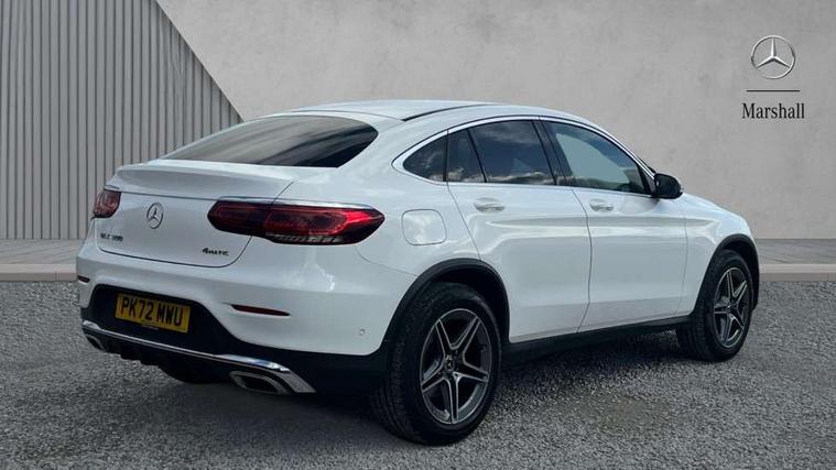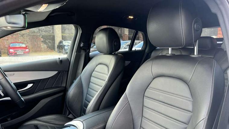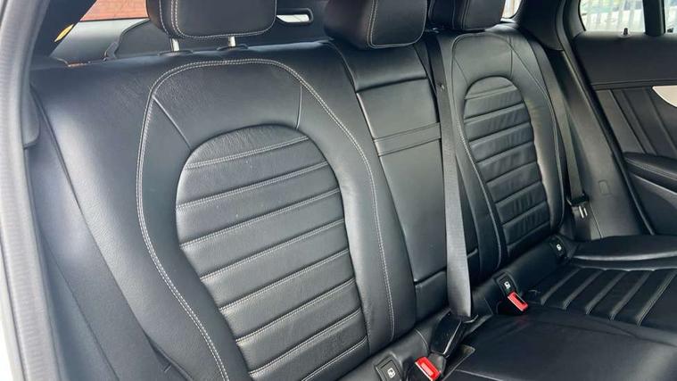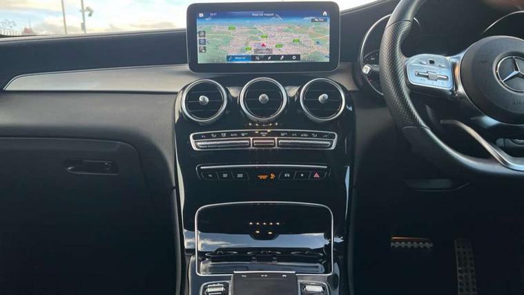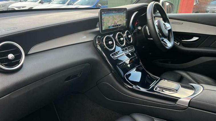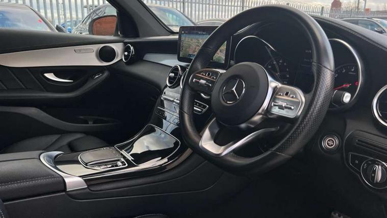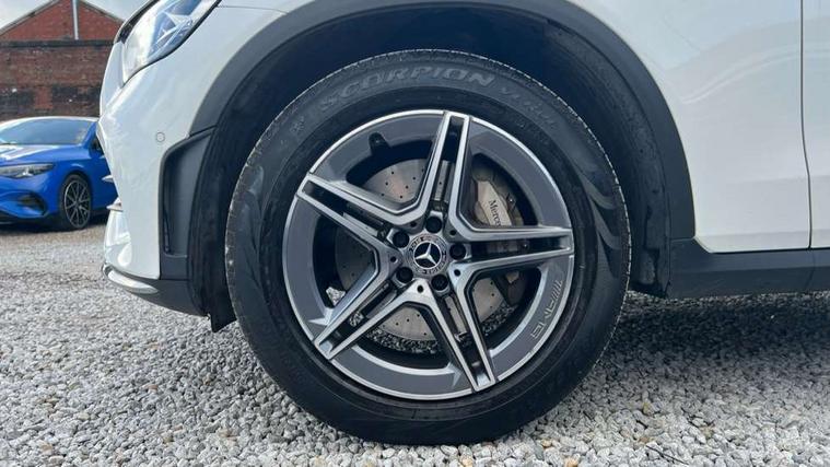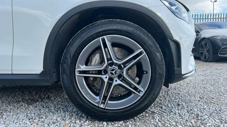 Active parking assist with parktronic system, Attention assist, Bluetooth interface for hands free telephone, Collision prevention assist plus, Cruise control with speedtronic variable speed limiter, Direct steer speed sensitive steering, DYNAMIC SELECT with a choice of driving modes (ECO, Comfort, Sport, Sport+ and Individual), Easy pack automatic powered tailgate, eCall emergency call system, ECO start/stop function, Hard disk navigation, Hey Mercedes Voice activation, Instrument cluster with 5.5-inch TFT multi-function display, MBUX Interior assistant, Mercedes connect me with remote online services, Multi function trip computer, Outside temperature display, rear seatbelt status indicator, Remote boot release, Reversing camera, Service indicator (ASSYST), 4MATIC permanent four wheel drive, 66 litre fuel tank, 9G TRONIC plus automatic transmission with steering column gear selector, DIRECT SELECT steering wheel gearshift paddles, Petrol Particulate Filter (PPF), Sports suspension tuned for improved handling and driving dynamics, 5 speakers, Frontbass loudspeakers, MBUX multimedia system with DAB digital radio and touchpad, Media display 10.25-inch touchscreen display, Pre installation for Mercedes Benz Link, USB ports x 2 in centre console, Adaptive brake lights, AMG bodystyling - AMG front apron with sporty air intakes and chrome trim element, AMG diffuser-look rear apron with insert in black, Body colour door mirrors, Body coloured bumpers, Electric windows one touch open/close, Electrically adjustable and heated door mirrors, Front, side and rear exterior chrome trim, Headlamp assist automatic headlamp activation, Headlight washers, High level LED brake light, LED high performance headlamps with integrated LED daytime running lights, LED indicator lights, LED rear fog lights, LED tail lamp, Privacy glass with dark glass from B pillar backwards, Radiator diamond grille, Rain sensor windscreen wipers, Range adjustable headlights, Rear side wing doors, Rear wiper, Roof spoiler, Tinted glass all round with single layer safety glass, Tinted rear windows, Two chrome plated tailpipe trim elements, Variable front intermittent wipers, Welcome and follow-me home light functionality, 2 way rear head restraints, 3 seat bench in 2nd row, 3-spoke multifunction sport AMG steering wheel in black nappa leather with flattened bottom section, chrome insert and perforated leather in grip area, 40:20:40 split folding rear seats, AMG floor mats with edging and embroidered AMG lettering, Artico man-made leather upper dashboard with contrast topstitching, Automatic child seat recognition sensor, Black roof lining, Dividing net - rear, Double cup holder in centre console, Easy-pack removable load compartment cover, Front armrest with storage box, Front door sills with Mercedes Benz lettering, Front head restraints, Front passenger seat, Front seats with electric adjust (backrest, height and seat cushion inclination) with 4 way electric lumbar support and manual cushion depth adjust, Heated front seats, Height/reach adjustable steering column, Illuminated and lockable glove compartment, Leather upholstery, Rear top tether child seat ISOFIX attachment, Sports pedals with stainless steel surfaces and rubber studs, Steering wheel with touch control buttons, THERMOTRONIC 3 zone automatic climate control, Interior lighting pack - GLC, Mirror pack - GLC, Storage pack - GLC, 3 rear 3 point seatbelts, Active bonnet, Adaptive brake system with HOLD function and brake drying in the wet, ASR traction control, Black seat belts, Brake calipers with Mercedes-Benz lettering + perforated brake discs, Child proof door locks, Dual-stage airbags - driver and front passenger, driver knee bag and window bags for driver, front passenger and rear passengers, Electronic parking brake, Electronic stability programme (ESP) with curve dynamic assist and cross wind assist, Front and rear seatbelt reminder, Front passenger seat occupancy sensor, Front seatbelt pretensioners, Hill start assist, Tyre pressure monitoring system, Warning triangle and first aid kit, Alarm system/interior protection/immobiliser, Automatic door locking, KEYLESS-GO starting function, Remote central locking, High gloss black with grained aluminium trim, 19" AMG 5 twin spoke alloy wheels painted tremolite grey with high sheen finish, Summer tyres, Tirefit tyre sealant kit,