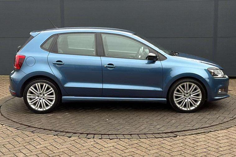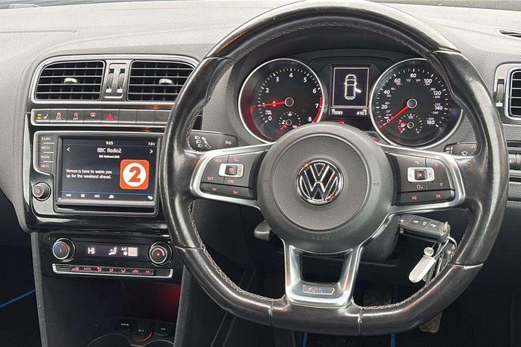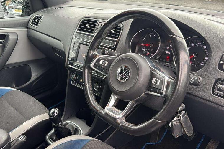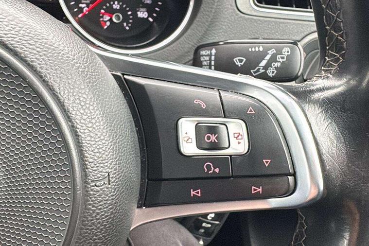 Bluetooth Telephone preparation, Driver alert system, Fatigue detection system, Multi function display, Multifunction computer, PAS - speed related, Service interval indicator, Warning buzzer and light for front seatbelts unfastened, Lowered sports suspension, XDS electronic differential lock, 6 speakers, Composition media system with radio, glovebox mounted CD, colour touch screen, SD card, aux-in, USB, multimedia interface, DAB Digital radio, Body colour bumpers, Body coloured side sills, Chrome trimmed front air intake surrounds, Dark tinted rear lights, Electric front windows, Electric operated/heated door mirrors, Front wash/wipe with interval delay, Gloss black door mirrors with integrated indicators, Gloss black grille with chrome surround, Heated rear window with auto timer, Rear electric windows, Rear windscreen washer and wiper with interval delay, Twin exhaust tailpipe, 12V power socket in centre console, 2 bag hooks in luggage compartment, 2 cupholders, 3 rear head restraints, 3 spoke steering wheel, 4 grab handles, 60/40 split folding rear seat, Black roof lining, Centre console storage, Chrome interior door handles, Driver and passenger sunvisors, Driver/front passenger seat height adjustment + underseat drawers, Dust/pollen filter, Front door pockets, Front passenger seat height adjust, Glovebox, Height/reach adjustable steering column, Illuminated vanity mirror, Interior light with delay, Isofix Preparation 2 Rear child seats, Luggage compartment cover, removable, Luggage compartment lighting, Matt chrome gear lever gaiter surround, Multifunction leather steering wheel with leather gear knob/handbrake grip, Storage compartment in front doors, Storage compartment in rear doors, Sunglasses holder, Variable boot floor, BlueGT Styling Pack - Polo, 3 point height adj front seatbelts + pretensioners, 3x3 point rear seatbelts, ABS, Automatic post collision braking, Driver/front passenger airbag, Driver/Passenger whiplash optimised head restraints, ESC - Electronic Stability Control + traction control, ESP with EDL + ASR, Hill hold control, Hydraulic Brake Assist (HBA), Tyre pressure monitoring system, Alarm with remote central locking and interior protection, Electronic engine immobiliser, Air vents in Matt chrome, Black high gloss trim, Full size spare wheel,