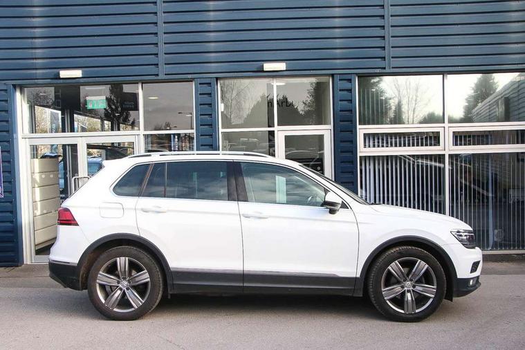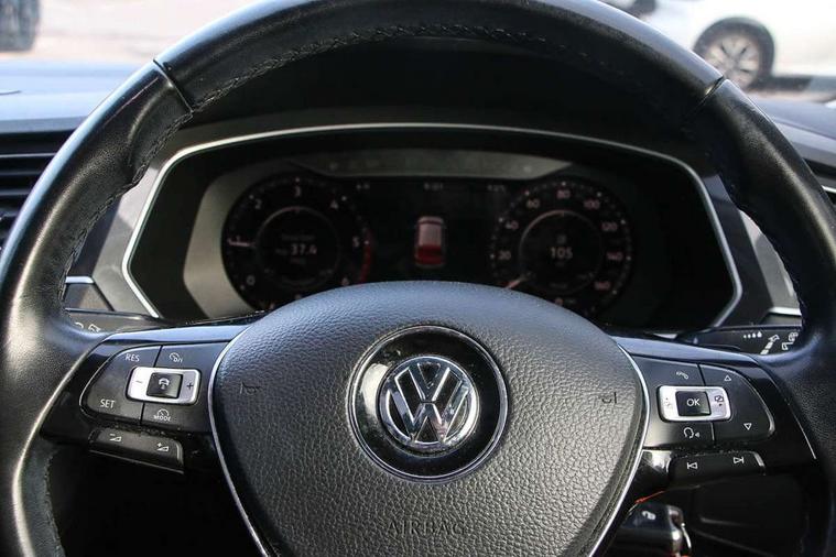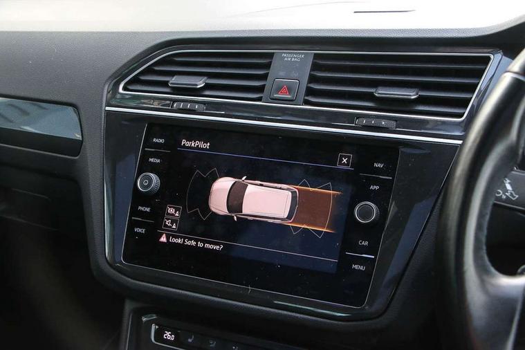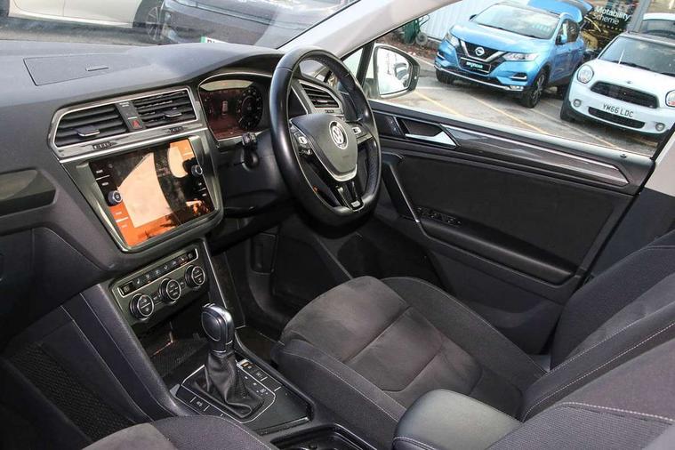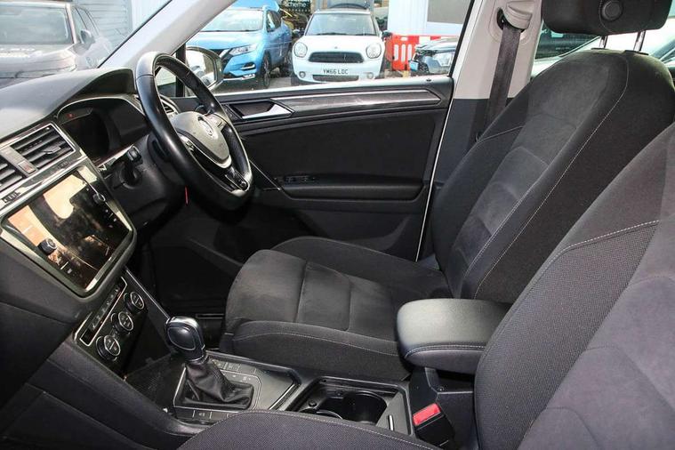 Active information display, Adaptive cruise control, App-Connect, Bluetooth phone integration system, Distance control assist, Fatigue detection system, Instrument cluster, Lane assist, Low washer fluid warning light, Outside temperature display, Service interval indicator, Speed limiter, Warning lights, Diesel particulate filter, XDS electronic differential lock, 2x USB sockets in front, Aux-in socket, DAB Digital radio, MP3 compatible single CD player, SD card slot, Auto dimming interior mirror, Automatic activation of hazard warning lights, Black door protector with chrome inserts, Body colour door handles, Body colour door mirrors, Body coloured bumpers, Chrome side body trim, Chrome side window surrounds, Chrome trimmed radiator grille, Coming/leaving home lighting function, Dusk sensor + auto driving lights, Electric folding door mirrors, Electric heated + adjustable door mirrors, Electric panoramic sunroof with sunblind, Front and rear electric windows, Heated rear window, LED headlights with dynamic light assist daytime running lights and cornering front fog lights, LED rear lights, Rain sensor windscreen wipers, Rear windscreen washer and wiper with interval delay, Silver rear diffuser trim, Silver roof rails, Silver under body guard, Tinted windows (B pillar backwards), Windscreen wipers/ intermittent wipe + 4 position delay, 12V Accessory socket in centre console, 3 rear headrests, 3 zone climate control, 4 load lashing points, 40:20:40 split folding rear seats, Bag hook in luggage compartment, Driver + front passenger lumbar support, Foldable passenger seatback, Front + rear carpet mats, Front centre armrest with 12v socket, Front centre armrest with storage + rear 2 air vents + cupholders, Front seatback folding tables, Height/reach adjust steering wheel, Illuminated driver/passenger vanity mirrors, Illuminated scuff plates, Interior light with delay, Isofix Preparation 2 Rear child seats, Leather gear knob, Load through provision with 2 cupholders when folded, Lockable cooled glovebox, Luggage compartment lighting, Luggage compartment side storage, Map pockets on front seats, Passenger seat height adjuster, Passenger underseat drawer, Rear cupholders, Removable luggage cover, Sliding/reclining rear seats, Storage compartment in driver's door, Storage compartment in passenger's door, Storage compartment in rear doors, Storage tray on dashboard, Sunglasses storage, Variable boot floor, Ambient lighting pack - Tiguan, 3 rear 3 point seatbelts, ABS+EBD+Brake assist, Active bonnet, Active pedestrian safety system, Curtain airbags, Driver/Front Passenger airbags, Driver/Passenger whiplash optimised head restraints, Drivers knee airbag, DTC - Drag torque control, Electronic parking brake with auto hold, ESP with EDL + ASR, First aid kit, Front assist including city emergency braking, Front side airbags, Head airbag system, Height adjustable front 3 point seatbelts + pretensioners, Hill hold control, Passenger airbag deactivate switch, Passenger knee airbag, Pre crash system, Rear side airbags, Seatbelt warning lamp and buzzer, Two tone horn, Warning triangle, Alarm with interior protection, Electronic engine immobiliser, Remote central locking with 2 remote folding keys, Chrome door trim inserts, Piano black interior trim, Steel space saver spare wheel,