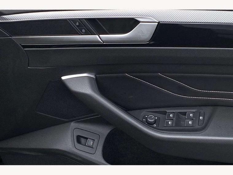 Adaptive cruise control (ACC) with speed limiter, front assist (reacting vehicles pedestrian and cyclists) and follow to stop, App connect including wireless Apple CarPlay, Camera for warning system, Digital cockpit with 10.25" high resolution TFT display screen with customisable menus and information, Driver alert system with fatigue detection, Driver profile selection including ECO function, Dynamic road sign display, eCall - Emergency call service for SOS calls to emergency response, Hands free boot opening, Press and drive key, Progressive steering, Speedo and rev counter, electronic odometer, trip, service interval display and exterior temperature gauge, Travel assist - Lane keeping assist and traffic jam assist, Voice activation for telephone and navigation, Start/stop function with battery regeneration, Premium USB cable in choice of either Apple or Android smartphone compatibility, Auto dimming interior rear view mirror, Body colour door handles, Body colour side skirt, Body coloured top and matt black lower door mirrors with integrated indicators, Chrome plated radiator grille inserts and light switch surrounds, Chrome side window surrounds, Dynamic headlight range control, Electric folding door mirror, adjustable, heated with front passenger exterior mirror lowering function, Front and rear electric windows, Front and rear stainless steel door sill protection, Front windscreen washers and wipers with 4x interval delay, Heat insulating side and rear windows, Heated rear windscreen, Heated windscreen washer jets, High level 3rd brake light, LED rear combination lamp with dynamic indicators, LED rear number plate lights, Left and right chrome effect trapezoid dummy exhaust tailpipe surrounds, Panoramic sunroof with tilting and sliding including integrated roller blind, R Line design body coloured bumpers, Rain sensor, Rear fog lamp on one side and reversing lamp on both sides, Rear windscreen washer and wiper with interval delay, 12V socket in front centre console, 12V socket on rear of front centre armrest, 3 rear head restraints, 30 colours options interior ambient lighting, 60:40 split folding rear seat backrests with centre armrest, Air care climatronic 3 Zone electronic air conditioning with automatic air recirculation, Black roof lining, Chrome trim on upper and lower air vents extending across cockpit, Driver and front passenger sunvisor with vanity mirror, Front + rear carpet mats, Front cupholders x 2, Front footwell illumination, Front sports comfort seats, Glovebox, Heated front seats, Height/reach adjust steering wheel, Isofix child seat preparation easy fit for two outer rear seats, Luggage compartment lighting, Removable luggage compartment cover, Split folding front seat backrest with front centre armrest, Stainless steel pedals, Two LED front reading light, 3 rear three point seatbelts, ABS+EBD+Brake assist, Driver airbag and front passenger airbags with deactivation switch including driver knee airbags, Electronic parking brake, Electronic stability control (ESC) and Electromechanical brake booster, Front disc brakes, Front side airbags with curtain airbags, Hill start assist, Pro active occupant protection to detect critical situations with elevated accident potential from the front, Rear disc brakes, Three point height adjust front seatbelts + pretensioners, Two tone horn, Tyre pressure loss indicator, Warning buzzer for seatbelts if unfastened, Warning triangle, Alarm with interior protection with deactivation via infotainment system, Electronic engine immobiliser, Keyless entry system including start/stop button on centre console, Aluminium decorative inserts, Chrome trim on lower doors in front and rear, Leatherette insert on door and side trim panel in foam film, Piano black decorative inserts in centre console,