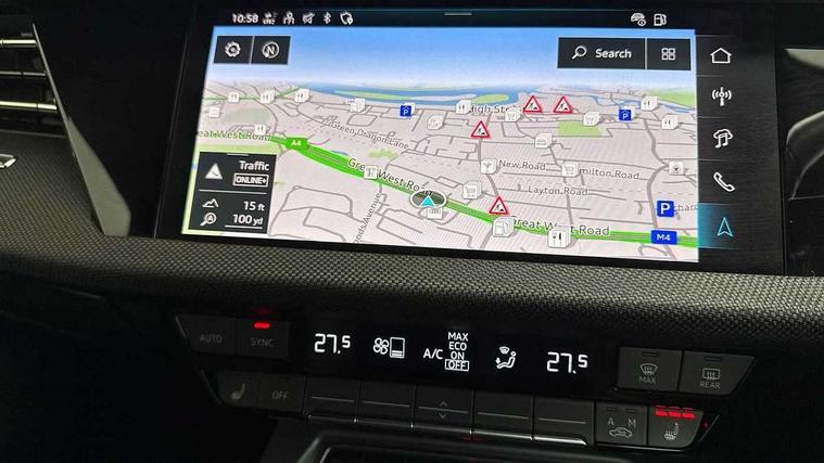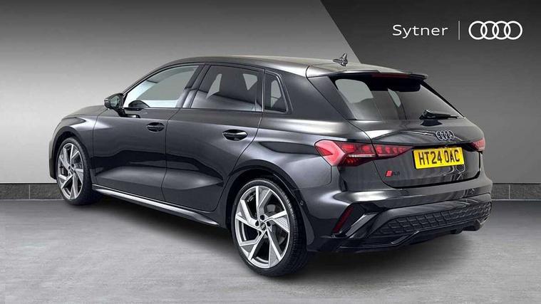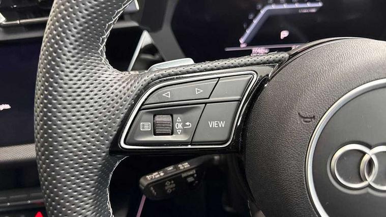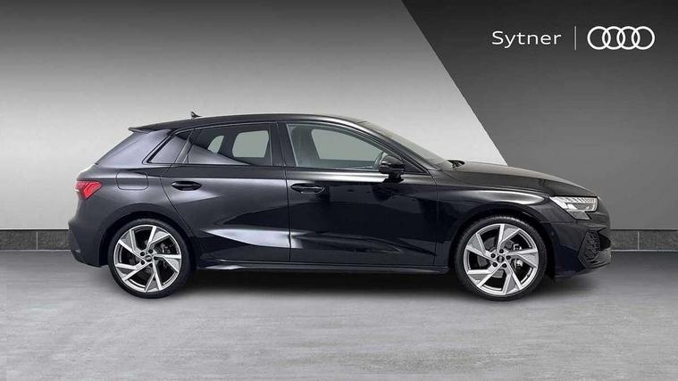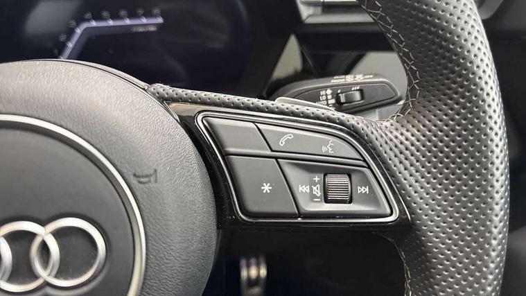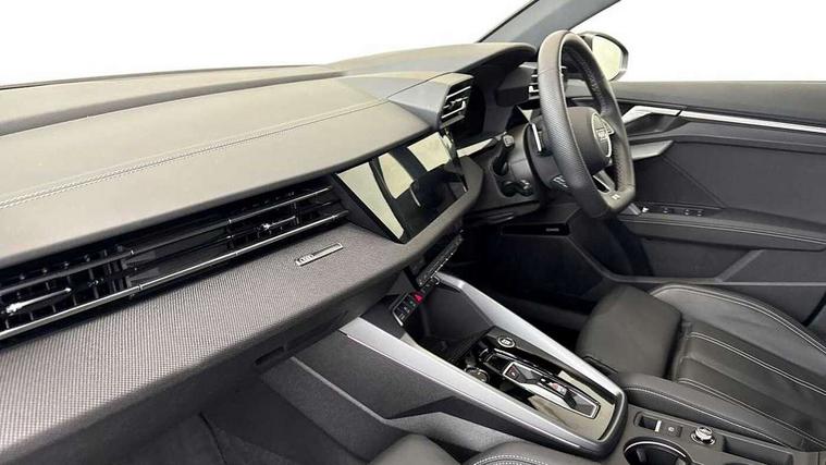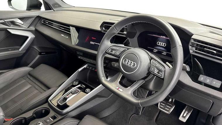 Adjustable speed limiter, Audi drive select, Audi smartphone interface with app store includes wireless Apple carplay, Android auto and Amazon alexa integration, Audi virtual cockpit plus - 12.3" full HD resolution dynamic digital instrument cluster, Automatic start/stop system with recuperation, Bluetooth interface, Camera based traffic sign recognition, Collision avoidance assistant, Cruise control, Distraction and Fatigue warning, e-Call (emergency call), Electromechanical power speed sensitive steering, Lane departure warning system, MMI Navigation Plus with high resolution 10.1" colour touch screen display, Park Assist with parking system Plus, Service indicator, Tailgate, Trip computer, Voice control system with natural language interaction, Sports suspension, Audi Phonebox light with wireless charging, Audi sound system - 10 loudspeakers including centre loudspeaker and subwoofer, DAB Digital radio, USB ports with charging function in the rear, Acoustic glass windscreen, Anthracite grey Audi rings (front and rear), Audi beam uses LEDs to project the Audi logo onto the ground as you exit your A3, Auto dimming frameless rear view mirror, Black accents front and rear bumpers, Black accents in the area of the Audi single frame grille, Black accents window trims strips, Electrically adjustable/heated/folding/auto dimming door mirrors with integrated LED indications + kerb view function for passenger side, Exterior model badging, Front electric windows, Heat insulating glass windscreen, Illuminated door sills with aluminium inserts at the front with S logo, LED 3rd brake light, LED daytime running lights, LED headlights with LED rear lights and dynamic rear indicators, Light and rain sensors, Privacy glass - dark tinted rear window, rear door and side windows, Rear electric windows, Rear side wing doors, Rear wiper, S roof spoiler, 12V socket and storage compartment in front centre console, 3 seat bench in 2nd row, 3 spoke flat bottomed leather multifunction sport steering wheel with gear shift paddles, 3-zone deluxe automatic air conditioning, 4 way electrically adjustable lumbar support for driver and front passenger, 40/20/40 split folding rear seat bench, Black cloth headlining, Front and rear centre armrest in artificial leather, Front and rear headrests, Front/rear floor mats, Heated front seats, Height and reach adjustable steering wheel, Manual boot compartment lid, Manually adjustable front seats, S badging on the steering wheel, Seat side bolsters, Single front passenger seat, Stainless steel pedals and front footrest in black, Twin leather upholstery with front sports seats S embossed logo, Aluminium interior elements pack - A3 Sportback, Multi-coloured LED interior lighting package - A3 Black Edition, 3x3 point rear seat belts, Driver and front passenger airbag with passenger airbag deactivation, Electronic Stabilisation Control (ESC) including ABS, ASR and EDL, First aid kit with warning triangle and 2 safety vests, Front side airbags with head airbags and interaction airbag, Hill hold assist, Pre-sense front with pedestrian and cyclist detection, Seatbelt monitoring, Tyre pressure loss indicator, Anti theft alarm, Anti-theft wheel bolts, Electronically operated child locks, Immobiliser, Remote control central locking, Inlays in black Impressum woven textile,