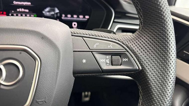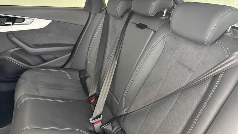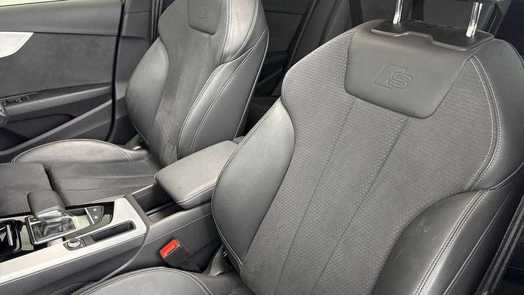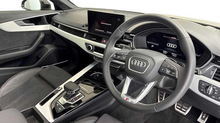 Audi connect safety and service (e-call), Audi drive select, Audi smartphone interface, Audi virtual cockpit, Automatic start-stop system with coasting functionality and efficiency programme, Bluetooth interface, Camera based traffic sign recognition, Electromechanical power steering, Email, calendar and text messages displayed via MMI, Front and rear parking sensors, Lane departure warning, MMI Navigation plus with MMI touch includes 10.1" high resolution colour MMI display, 3D map, Power operated tailgate, Rear view camera, Voice control system, 54 litre fuel tank, Sports suspension lowered by 23mm, 2 USB charging ports, 8 passive loudspeakers, DAB digital radio reception, Aluminium roof rails, Auto dimming rear view mirror, Body colour door handles, Body colour front spoiler lip, Body colour side sill trim, Body coloured door mirrors, Electric adjustable/heated/folding door mirrors with auto dimming, Grained matt black side air inlets with matt aluminium silver inlay, High beam assistant, Honeycomb structure radiator grille in grained matt black, LED headlights with LED rear lights + dynamic rear indicators + headlight adjustment and high beam, turning light + LED daytime running lights, LED third brake light, Matt aluminium silver tailpipe trim, Privacy glass, Rain and light sensors, Rear side wing doors, Rear wiper, S Line badges on the front wings, S line front and rear bumpers with side skirts, S Line rear diffuser in matt anthracite black with trim strip in matt aluminium silver, S Line roof edge spoiler, Variable intermittent front wash/wipe, Windscreen with acoustic glazing, 3 spoke high multi-function sports leather steering wheel grips in perforated leather with S badging including paddle shift, 4 way electric lumbar support for driver and front passenger, 40/20/40 split folding 3 rear seat bench in 3 parts with rear centre armrest, Black carpets, Black cloth headlining, Black perforated leather gearknob, Contrast stitching on seats, steering wheel and gear lever gaiter, Deluxe 3 zone electronic climate control, Electric load area cover, Front and rear head restraints, Front centre armrest, Heated front seats, Illuminated door sill trims with S logo, ISOFIX child seat mounting and top tether, Manual seat adjustment, Single front passenger seat, Stainless steel pedals and foot rest, High gloss package - A4, LED Interior light pack - A4/S4, 3 rear seatbelts, 6 airbags - Driver, front passenger, curtain and side windows, Attention and drowsiness assist, Electronic Stabilisation Control (ESC) including ABS, ASR and EDL, Hill hold assist, Multi collision brake assist, Pop-up bonnet for pedestrian protection, Pre sense city, Rear door child safety locks, Seatbelt monitoring, Warning triangle and first aid kit, Anti theft alarm, Anti theft wheel bolts, Central locking, Keyless Go, Matt brushed aluminium inlays, Tool kit, Tyre repair kit,