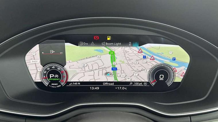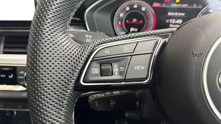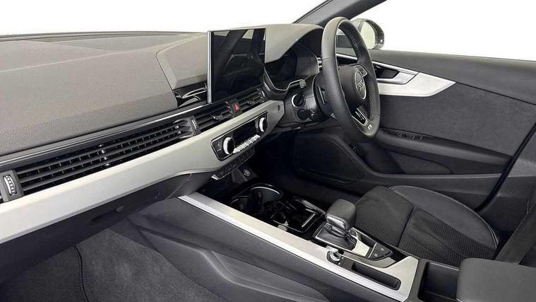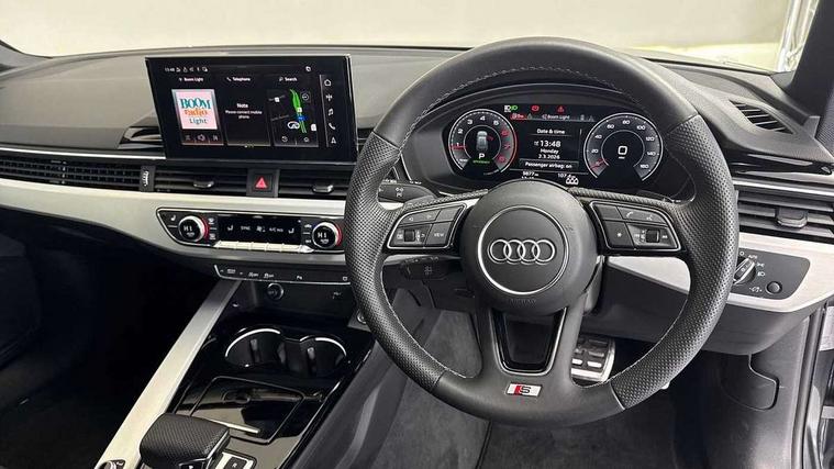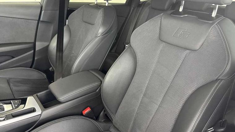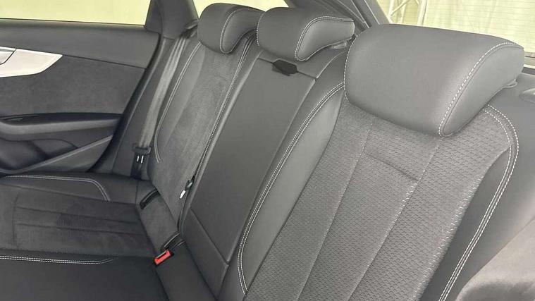 Audi connect safety and service (e-call), Audi drive select, Audi smartphone interface, Audi virtual cockpit, Automatic start-stop system with coasting functionality and efficiency programme, Bluetooth interface, Camera based traffic sign recognition, Electromechanical power steering, Email, calendar and text messages displayed via MMI, Front and rear parking sensors, Lane departure warning, MMI Navigation plus with MMI touch includes 10.1" high resolution colour MMI display, 3D map, Power operated tailgate, Rear view camera, Voice control system, 54 litre fuel tank, Sports suspension lowered by 23mm, 2 USB charging ports, 8 passive loudspeakers, DAB digital radio reception, Aluminium roof rails, Auto dimming rear view mirror, Body colour door handles, Body colour front spoiler lip, Body colour side sill trim, Body coloured door mirrors, Electric adjustable/heated/folding door mirrors with auto dimming, Grained matt black side air inlets with matt aluminium silver inlay, High beam assistant, Honeycomb structure radiator grille in grained matt black, LED headlights with LED rear lights + dynamic rear indicators + headlight adjustment and high beam, turning light + LED daytime running lights, LED third brake light, Matt aluminium silver tailpipe trim, Privacy glass, Rain and light sensors, Rear side wing doors, Rear wiper, S Line badges on the front wings, S line front and rear bumpers with side skirts, S Line rear diffuser in matt anthracite black with trim strip in matt aluminium silver, S Line roof edge spoiler, Variable intermittent front wash/wipe, Windscreen with acoustic glazing, 3 spoke high multi-function sports leather steering wheel grips in perforated leather with S badging including paddle shift, 4 way electric lumbar support for driver and front passenger, 40/20/40 split folding 3 rear seat bench in 3 parts with rear centre armrest, Black carpets, Black cloth headlining, Black perforated leather gearknob, Contrast stitching on seats, steering wheel and gear lever gaiter, Deluxe 3 zone electronic climate control, Electric load area cover, Front and rear head restraints, Front centre armrest, Heated front seats, Illuminated door sill trims with S logo, ISOFIX child seat mounting and top tether, Manual seat adjustment, Single front passenger seat, Stainless steel pedals and foot rest, High gloss package - A4, LED Interior light pack - A4/S4, 3 rear seatbelts, 6 airbags - Driver, front passenger, curtain and side windows, Attention and drowsiness assist, Electronic Stabilisation Control (ESC) including ABS, ASR and EDL, Hill hold assist, Multi collision brake assist, Pop-up bonnet for pedestrian protection, Pre sense city, Rear door child safety locks, Seatbelt monitoring, Warning triangle and first aid kit, Anti theft alarm, Anti theft wheel bolts, Central locking, Keyless Go, Matt brushed aluminium inlays, Tool kit, Tyre repair kit,