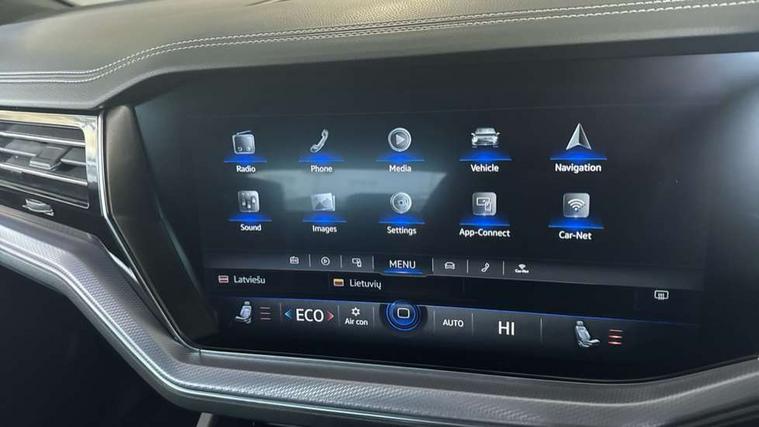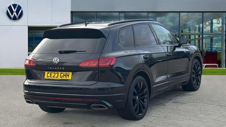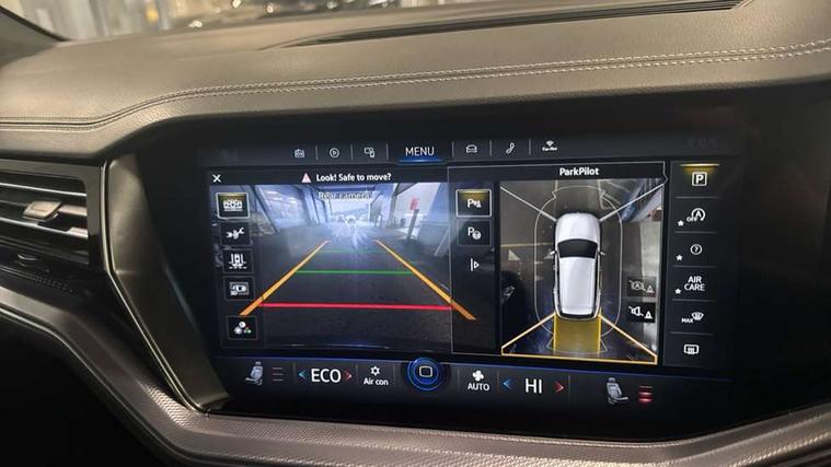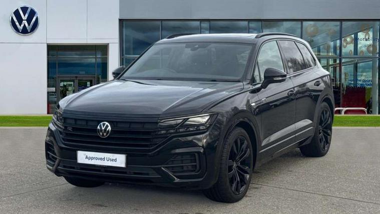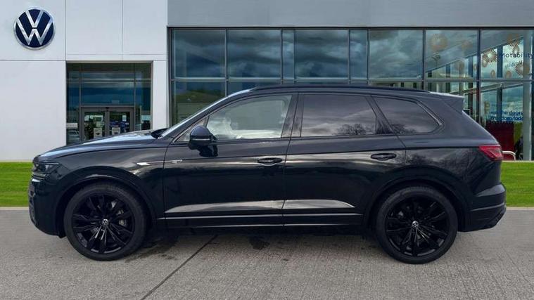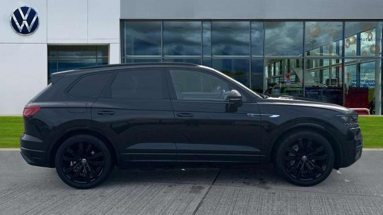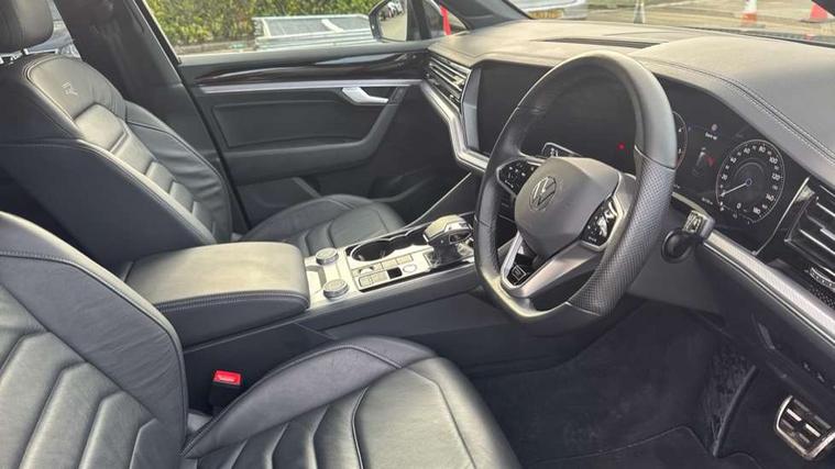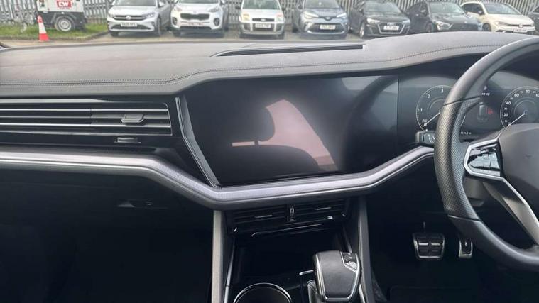 2D/3D map view, ACC - Adaptive cruise control with front assist, forward collision warning, distance monitoring, city emergency brake and speed limiter, Apple car play/Android Auto, Audible and visual fatigue detection system, Bluetooth hands free telephone connection, Car information display, Drive select with Damper control, Driver alert system, Driver profile selection, Dynamic road sign display camera controlled system with visual warning for traffic and road signs, eCall emergency system, Fully electric tailgate + keyless entry and start, Instrument cluster, MirrorLink, Multifunction camera, Multifunction computer premium with 7" colour display, One touch indicators with repeat function, Service interval indicator, Speed sensitive power steering, Start/stop system with regenerative braking, Tailgate power latch, Think blue trainer driver tips and journey analysis, Traffic sign recognition, Voice control system, Wireless Smartphone charger, 24 litre AdBlue tank, Torsen limited slip differential, DAB Digital radio, Dynamic navigation based on TMC+, Gesture control for infotainment system, Multi device interface (MDI) with illuminated USB-C connection, Music playback - MP3, WMA and AAC files, SD card slot, Simultaneous pairing of 2 compatible mobile devices, SMS functionality - read, compose and send SMS messages using touch-screen display, Title and cover art display, Volkswagen media control, Adaptive low beam for urban and motorway use, Auto dimming rear view mirror, Automatic coming/leaving home lighting function, Automatic headlights, Black anodised roof rails, Black door mirrors, Black rear diffuser, Black side window surrounds, Black upper and lower grille louvres extending into headlights and radiator grille, Body colour door handles, Body coloured wheel arches, C signature gloss black front air intake, Chromed tailpipe on the left and right integrated in the bumper with trapezoid design, Dusk sensor, Dynamic headlight range control, Electric front tilt/slide panoramic sunroof and fixed rear sunroof, Electrically power adjustable, heated, folding, auto dimming, front passenger exterior door mirror lowering function, Front and rear electric windows, Galvanised body, Gloss black finish B pillar, Gloss black rear diffuser, Headlight washers, Heat insulating darkened glass in side and rear windows, Heated windscreen washer jets, IQ.Light-LED matrix headlight, daytime running light with dynamic cornering light and indicator, LED 3rd brake light, LED rear fog light, LED rear number plate lights, Plastic scuff plates in door apertures, Poor weather light, Puddle lights, Rain sensor, Rear side wing doors, Rear wiper, 12V socket in front and rear centre console and boot, 2 Coat hooks on B pillar, 3 rear head restraints, 3 seat bench in 2nd row, 3 spoke sport heated leather multi-function sports steering wheel with gear shift paddles - generation 2, 4 way adjustable front head restraints, 4 way electric lumbar support for driver and front passenger, 4 zone climate control, 40:20:40 split folding slide/recline rear seat, B pillar vents, Black lower edge of door extending sills, Branded points of interest, Double sun visor for drivier and passenger with LED illuminated vanity mirrors, Electric luggage compartment cover, Folding rear centre armrest with 2 cupholders, Front + rear carpet mats, Front centre armrest with storage box, Gear shift indicator, Height/reach adjust steering wheel, Illuminated air conditioned glovebox, Isofix preparation for 2 rear child seats, Jack and tool kit, Leather trimmed gear knob with gloss black inlay/aluminum trim, Leatherette door trim, LED luggage compartment lighting, Load through provision, Luggage compartment with load lashing rings, Plastic loading edge protection, Rear seat remote release levers, Single front passenger seat, Soul black headlining, Stainless steel pedals, Innovision cockpit pack - Touareg, 3 point front seatbelts with pre-tensioners, ABS, Active bonnet, Automatic post collision braking system, Curtain airbags, Driver/Front Passenger airbags, EBD + Brake Assist, EDL, Electronic parking brake with auto hold, ESC with ASR, Front seat side impact airbags, Hill descent control, Hill start assist, Passenger airbag deactivate switch, Seatbelt warning lamp and buzzer, Three 3 point rear seatbelts, Two tone horn, Volkswagen roadside assistance, Warning triangle and first aid kit, Alarm with interior monitoring in cab, backup horn and towing protection, Child security locks for front and rear doors, Electronic engine immobiliser, Remote central locking, Black decorative trims on the side windows, High gloss black centre console,