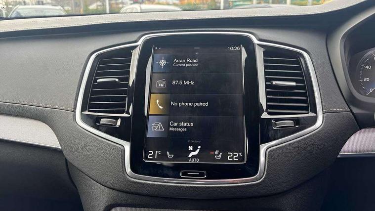 12.3" Active TFT crystal driver's instrument display, 9" centre console portrait touch screen, Adjustable steering wheel force, Bluetooth hands free telephone connection, Drive mode settings, Driver alert control with lane keeping aid, Driver assistance (pilot assist and adaptive cruise control), Driver awareness - Blind spot information system with steer assist, cross traffic alert with autobrake and rear collision warning and mitigation, Emergency call service, Front and rear park assist, Handsfree power tailgate opening and closing, Oncoming Lane Mitigation, Remote engine start, Sensus navigation with European mapping and traffic information, Service interval indicator, Speed limiter, Speed sensitive steering, Trip computer, Voice activated control for key functions, Volvo on call, 8 speed automatic transmission with start/stop + manual change functions, All wheel drive system, Touring chassis, DAB Radio (Digital Audio Broadcasting), Steering wheel remote infotainment controls, Adaptive brake lights with high level LED brake lights, Auto dimming interior + exterior mirrors, Automatic headlight levelling system, Automatic LED Headlights + Active high beam incorporating daytime running lights, Body colour bumpers, Dark tinted windows for rear side windows and cargo area, Dual integrated exhaust pipes with high gloss black surround, Electric folding and heated door mirrors, Front and rear power windows, Heated washer nozzles, High gloss black Deco lower front bumper, High gloss black door mirrors, High gloss black lower rear valance, High gloss black mesh front grille with surround, High gloss black window surround, Home safe and approach lighting, Integrated roof rails in high gloss black, Puddle lights, Rain sensor with automatic windscreen wiper activation, Rear side wing doors, Rear wash/wipe with intermittent wipe setting, Roof antenna, Roof spoiler, Visible VIN plate, 12V socket front tunnel console, rear passenger compartment and cargo area, 2 seat bench in 3rd row, 3 seat bench in 2nd row, A-pillar parking ticket holder, Ambient door and instrument panel lighting, B Pillar ventilation, Bright metal luggage threshold, Cargo divider with grocery bag holder, Centre console cupholders and storage, Charcoal headlining, Driver's side lower dashboard storage compartment, Front and rear door pocket and front cupholder illumination, Front footwell and side step illumination, Front headrests, Front seat cushion extensions, Heated front seats, Height/reach adjustable steering column, Illuminated front and rear tread plates, Illuminated luggage compartment, Illuminated tailgate, Illuminated vanity mirrors + ticket holder, Illumination lockable glovebox compartment, Integrated sun curtains in rear doors, Load protection net, Lower dashboard, tunnel console, Lower door panel in blond, Multicolour theatre lighting, Outboard armrest with cupholder and storage for third row passengers, Power driver seat with multi directional lumbar support and memory for seat and exterior mirrors, Power folding 2nd row headrests, Power passenger seat with multi directional lumbar support and memory, Rear footwell and side step illumination, Rear headrests, Semi automatic load cover, Single front passenger seat, Sports floor mats, Sports leather gear knob, Sports pedals, Underfloor cargo storage, 7 three point seatbelts, City safety includes pedestrian, cyclist and large animal detection and front collision warning with full auto brake, Drivers knee airbag, Dual stage driver/passenger airbags, First aid kit, Front seats SIPS airbags, Hill descent control, Hill start assist, IC (Inflatable Curtains) - Full Length, Passenger airbag cut-off switch, Power parking brake with auto hold function, Road sign information display, Run off Road Mitigation, Run off Road Protection, Seatbelt reminder and pretensioners for all seats, SIPS (Side Impact Protection System), Slippery road and hazard light alert, Stability and Traction Control with Spin control, Engine Drag Control and Corner Traction Control, Tyre pressure monitoring system, Vehicle deceleration control with Anti-lock Brake System, Electronic Brake Distribution and Emergency Brake Assist, Warning triangle, WHIPS whiplash protection system - front, Anti-theft alarm including immobiliser/volume sensor + level sensor, Care key with user defined top speed, Key integrated remote control central locking + fuel flap with deadlocking system and auto open/close power windows, Keyless drive (includes keyless entry and keyless start) with remote tag, Locking wheel nuts, Private locking for glovebox and tailgate, Metal mesh inlays, Tailored Instrument Panel and Door Tops with Contrast Stitching, Tempa spare wheel and jack,