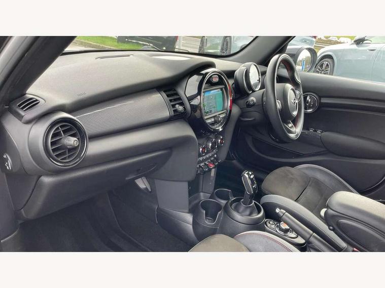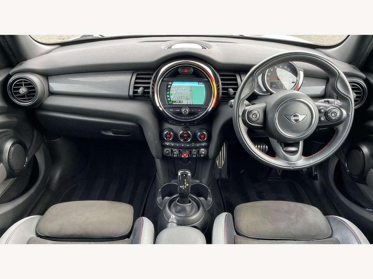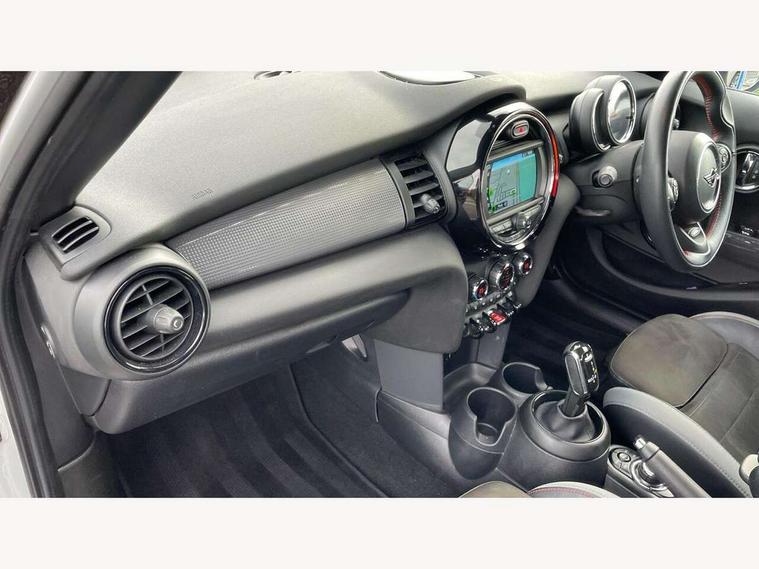 Automatic start/stop function with brake energy recuperation, Compatible mobile phone bluetooth with audio streaming, Electro-mechanical speed dependant steering assistance, Instrument cluster, MINI Driving Modes - centre toggle switch to control driving setting (sport, mid and green), Mini E-call, MINI TeleServices, On board computer, Service interval indicator, Double Vanos system, Fully variable valve control, Gear change indicator display, High precision injection, Performance Control, Steptronic transmission with double clutch, 6.5" touchscreen with LED ring, FM tuner and DAB digital radio, Automatic headlight activation switch, Body colour fuel filler cap, Chrome border high gloss black slats radiator grille, Dynamic brake lights, Electric front+rear windows, Heated rear window, Heated windscreen washer jets, John Cooper Works - aerodynamic kit (front and rear apron, spoiler), front and rear sport bumpers and part-painted side sills with door sill finishers, John Cooper Works rear spoiler, LED headlight with closed ring and daytime driving lights, Left exhaust tailpipe with chrome finisher, Metal door sill strips with MINI imprint, Model logo Cooper on right of tailgate, Rain sensor window wipers, Rear fog lights, Rear LED lights with union jack design, Rear window wiper, Side scuttle panel with integrated indicator, Sun/heat protection glass, White indicator lenses, 12V Accessory socket in centre console, 4 lashing eyes in luggage compartment, 60/40 split folding rear seat, Anthracite headlining with grab handles and clothes hooks, Chrome interior highlights, Cupholders, Front and rear head restraints, Front and rear isofix with front passenger airbag deactivation, Glove compartment, Height and length steering column adjustment, Interior lighting with 12 basic colours selectable via toggle switch in roof, John Cooper Works leather steering wheel with contrasting stitching in Chilli Red with John Cooper Works logo, John Cooper Works Logo in seat, Knee roll and door armrests, Leather gearshift lever and handbrake gaiters, LED reading lights, vanity mirror lights, front foot well light and spotlight on front seats, Manual air conditioning, Mechanical seat adjustment, driver seat height adjust, forward/back and front seats backrest, Mini logo projection on floor from drivers exterior mirror, Multifunction steering wheel, Storage compartments in doors, Sunvisors with vanity mirrors, 3 point seatbelts on all five seats, 6 Airbags - front, side, head and seat belt tensioners, Anti-lock braking system (ABS), DSC - Dynamic Stability Control, Front and rear disc brakes, Hill start assist, Single tone fanfare horn, Tyre pressure monitoring system, Alarm system with tilt sensor, monitoring doors, bonnet interior and tailgate, Electronic vehicle immobiliser, Start/stop toggle with keyless go, Tool kit,