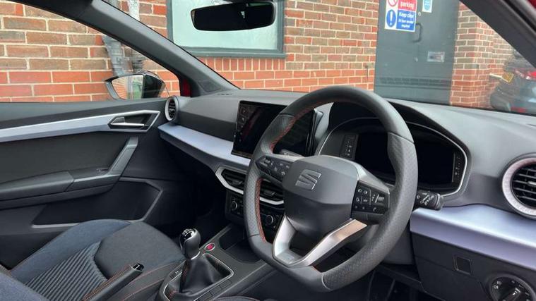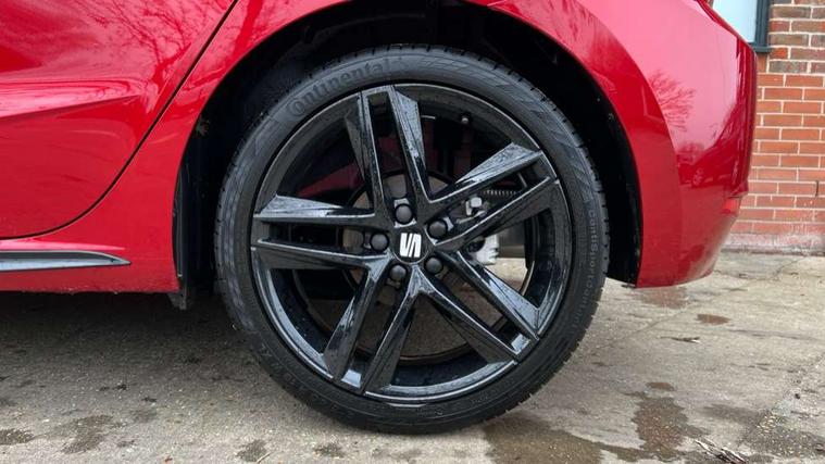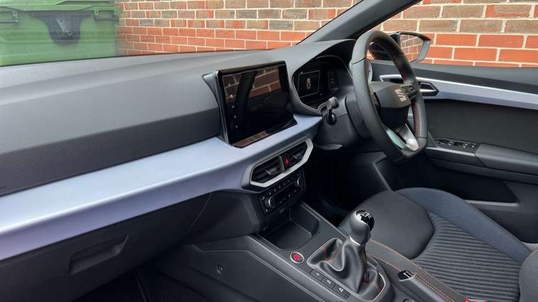 'Lights On' Reminder warning buzzer, 10" Digital cockpit, 9.2" touchscreen navigation system with type C USB socket, Voice control and DAB/AM/FM radio, Auto start and stop system, Bluetooth audio streaming with handsfree system, Digital clock, E-call, Full link smartphone integration with mirror link, wireless apple carplay, Google android auto + USB Type C cable for apple and android devices, Lane assist, Low fuel warning light, Outside temperature gauge, Power Steering, Rear parking sensor, Seat connect plus with safety, service, remote and online, SEAT drive profiles and ECO function, SEAT logo boot release, Speed limiter, Traffic sign recognition, Trip computer, Sports suspension, Auxiliary input socket, Radio/MP3 player, SD card slot, Steering wheel mounted controls, Anti theft roof antenna, Auto dimming rear view mirror, Automatic rain sensing wipers, Black door mirror caps, Black roof spoiler, Black side skirts, Body colour bumpers, Body colour door handles, Brilliant black window surrounds, Dark tinted rear windows, Electric adjustable/heated/folding door mirrors, Electric front windows, Electric headlight adjustment, Electric panoramic sunroof, Electric rear windows, Front/rear fog lights, FULL LED automatic headlights with dynamic headlight range control, coming and leaving home, LED daytime running lights, LED 3rd brake light, LED tail lights, Rear roof spoiler with FR twin exhausts, Rear side wing doors, Rear wiper, 3 seat bench in 2nd row, 60/40 split folding rear seat, Ambient interior lighting, Chrome detailing and black headlining, Dual zone climate control with combination filter, Front courtesy lights, Front cupholders x 2, Front reading lights, Front sport bucket seats, Gear shift indicator, Glovebox, Heated front seats, Height adjustable front and rear headrests (five), Height adjustable front seats, Height/reach adjust steering wheel, Illuminated air vent surrounds, Illuminated boot, Instrument lighting with brightness control, Isofix, Leather multifunction flat bottomed sports steering wheel, Microsuede cloth upholstery, Passenger sunvisor, Single front passenger seat, Storage pockets on back of front seats, Sunvisors with mirror and driver side card holder, Safety and driving pack (S) - Ibiza, ABS, Active front headrests, Child locks on rear doors, Electronic stability control, Energy recovery system, Front driver and passenger side airbags with curtain airbag and front passenger airbag deactivation, Hill hold control, Multi-Collision braking, Seat belt reminder for front and rear seats, Tiredness recognition system, Tyre pressure monitoring system, KESSY Keyless entry and go, Locking wheel bolts, Perimeter alarm and interior monitoring with backup horn and tow away protection, Remote central locking + deadlocks, 18" Performance alloy wheels in glossy black,
