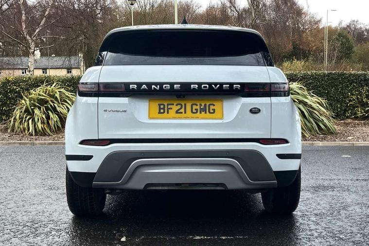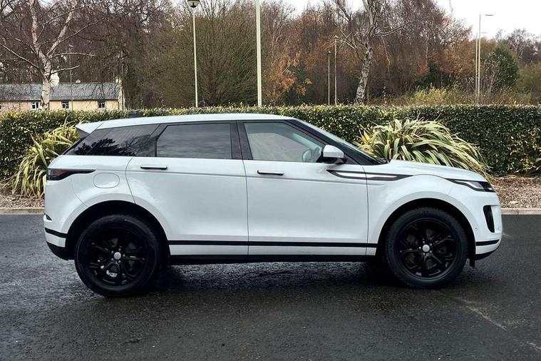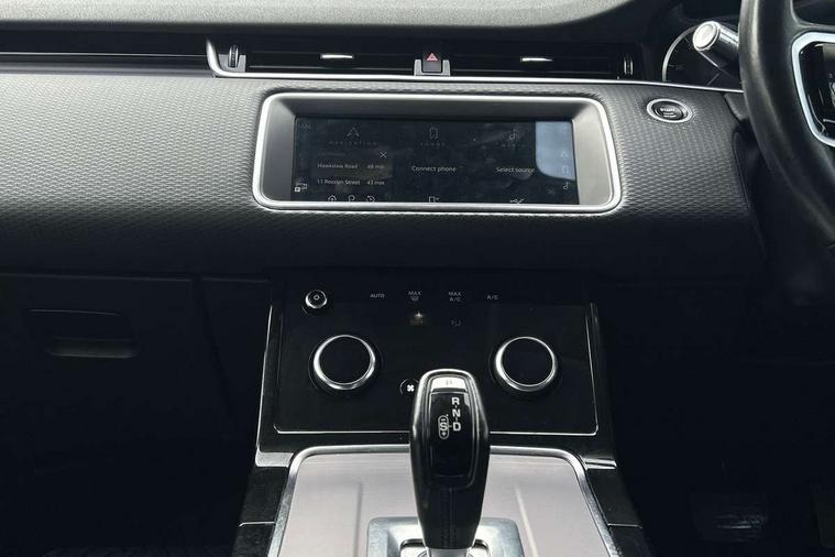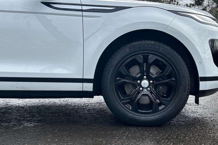 3D 360 degree surround camera, Android Auto, Apple car play, Bluetooth connectivity, Brake pad wear indicator warning light, Driver condition monitor, eCall emergency system, Electronic power assisted steering (EPAS), Front and rear parking aid, InControl remote, Land Rover InControl apps, Lane keep assist, Pivi pro connected includes upgraded infotainment, connected navigation pro, Nuance speech licence, Push button starter, Traffic sign recognition with adaptive speed limiter, Voice control system, Wade Sensing, All terrain progress control, Efficient Driveline, Passive suspension, Terrain Response 2 Auto, Digital Audio Broadcast radio-DAB, Steering wheel mounted controls, Auto headlights, Daytime running lights, Electric windows with one touch open/close and anti trap, Evoque badge, Flush deployable exterior door handles, Heated rear window with timer, Heated washer jets, Heated windscreen, Power fold, auto-dimming, heated door mirrors with approach lights and auto dimming driver side, Rain sensing windscreen wipers, Rear fog lights, Rear side wing doors, Rear wiper, Tailgate spoiler, Third brake light, 40:20:40 split folding rear seats with centre headrest and armrest, Ambient interior lighting, Isofix system on outer rear seats, Overhead lighting console, Overhead stowage for sunglasses, Passive front head restraints, Rear air vents, Rear centre headrest, Rear head restraints, Single passenger seat, Sunvisors with illuminated vanity mirrors, Twin sliding front centre armrest, 3 rear 3 point seatbelts, Anti-lock braking system (ABS), Customer configurable autolock, DSC - Dynamic Stability Control, Electronic brake force distribution, Electronic parking brake, Electronic traction control, Emergency braking, Front and rear seatbelt reminder, Hill descent control, Hill launch assist, Low traction launch, Power operated child locks, Roll stability control, Six airbags - Driver and passenger airbags/driver knee airbag/front side airbag and curtain airbags, Torque vectoring brake, Tyre pressure monitoring system, Alarm, Immobiliser, Intrusion sensor, Locking wheel nuts,