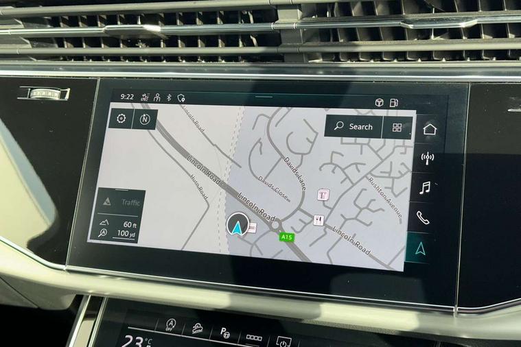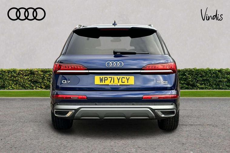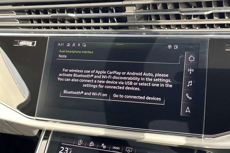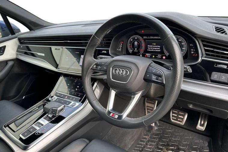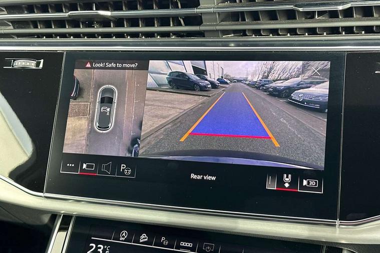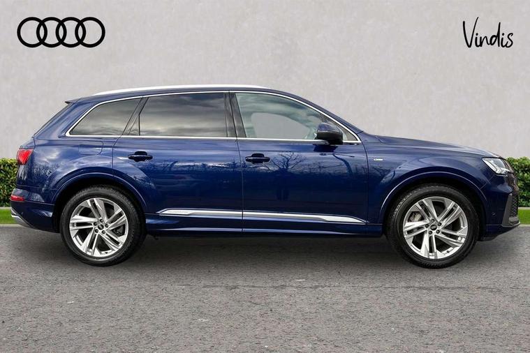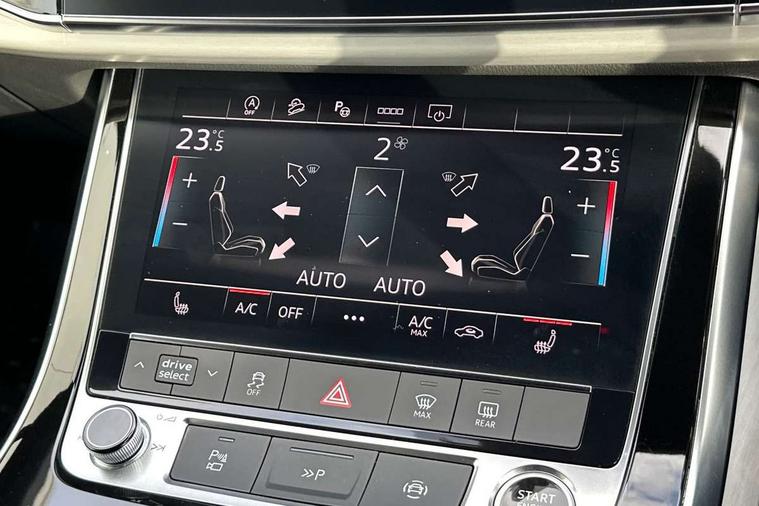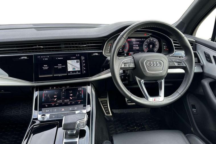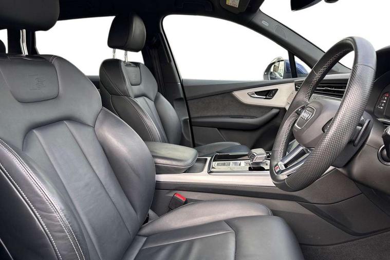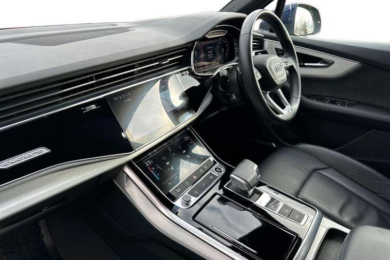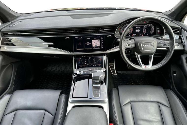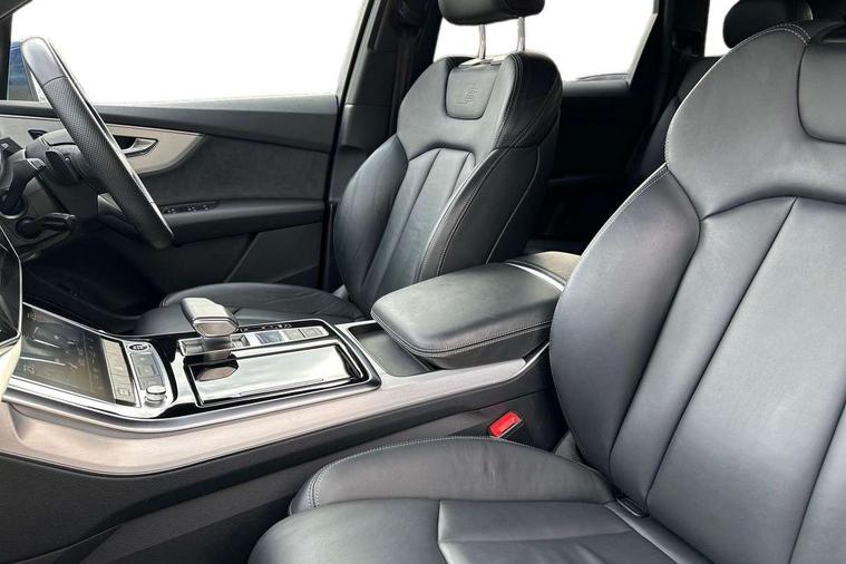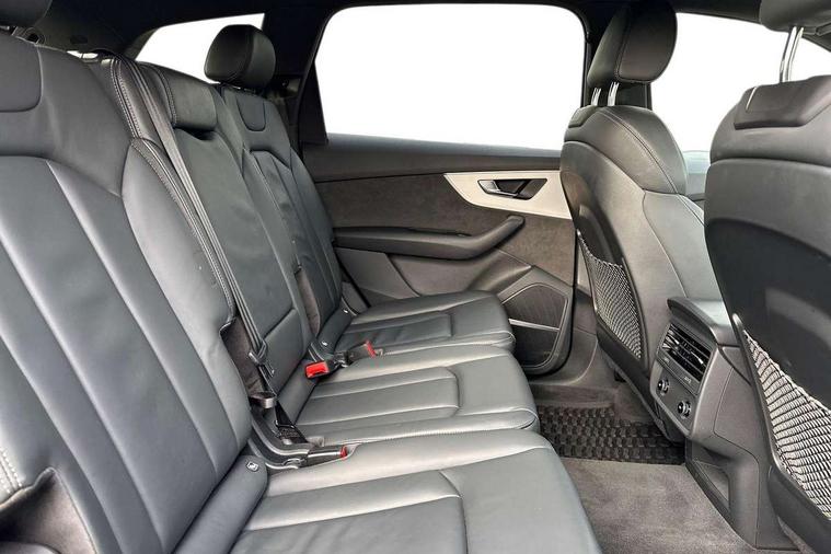 Audi connect safety and service (e-call), Audi connect with Amazon Alexa Integration, Audi drive select (Auto, Comfort, Dynamic, Efficiency, Individual, Off-road and All road), Bluetooth interface, Camera based traffic sign recognition, Electromechanical steering, MMI navigation plus with MMI touch screens includes 10.1" and 8.6" screens with haptic feedback, Natural voice recognition, Parking system plus with 360 degree display (front, rear and side sensors) - acoustic and visual park assist system, Power operated tailgate, Rear view camera, Smartphone interface includes wireless Apple carplay/Android Auto, Start/stop system, 48V Mild hybrid technology, Adaptive air suspension, Quattro all wheel drive with self locking centre differential, Audi music interface - front 2 USB-C ports with charger and data functions, Audi sound system with 6 channel amplifier, 180 watt amplifying capacity and 10 loudspeakers including subwoofer, DAB digital radio module, 3rd brake light, Aluminium roof rails, Aluminium window trim, Audi matrix LED headlights with dynamic front and rear indicators, Auto dimming frameless rear view mirror, Body coloured door mirrors, Electrically adj heated/folding + automatically dimming exterior mirrors with memory + automatic kerb side function for passenger side exterior mirror, Heat insulating glass in windshield, Integrated LED indications in door mirrors, LED daytime running lights, LED rear tail lights, Privacy glass - dark tinted rear and rear side windows from B-pillar backwards, Rear side wing doors, Rear wiper, S Line badge on wings, S line bumpers in full body colour paint finish, S line roof spoiler, S line styling side ventilation grilles and side skirts, 2 seat bench in 3rd row, 2 zone automatic climate control, 3 seat bench in 2nd row, 7 seat layout with ISOFIX points for the front passenger seat and rear passenger seat, Black cloth headlining, Comfort front centre armrest, Electric adjustable front seat with 4 way lumbar support, driver memory functionality, Folding rear seats, Front head restraints, Front/rear floor mats, Heated front seats, Illuminated door sill trims with S logo, LED interior ambient lighting, Luggage compartment cover, Luggage compartment sill protection in stainless steel, Rear head restraints, Single front passenger seat, Stainless steel pedals, Sunvisors with illuminated vanity mirrors, 3 point seatbelts on all rear seats, Audi pre sense front, Child locks on rear doors, Driver and front passenger, front side and curtain airbags, Electromechanical parking brake, Electronic Stabilisation Control (ESC) including ABS, ASR and EDL, Extended pedestrian protection measures, Hill hold assist, Seatbelt monitoring, Tyre pressure loss indicator, Warning triangle and first aid kit, Anti theft alarm, Anti-theft wheel bolts and wheel loosening detection, Keyless Go, Remote central locking, Darkened matt brushed aluminium inlays, Tool kit, Tyre repair kit,