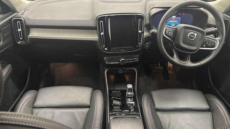 12.3" Progressive Driver Display, 360 degree surround view parking camera with side proximity sensors, 9" centre console portrait touch screen, Adjustable steering wheel force, Android auto (Wired), Apple carplay (wired), Bluetooth handsfree system, Driver alert control, Driver assistance (pilot assist and adaptive cruise control), Driver awareness - Blind spot information system with steer assist, cross traffic alert with autobrake and rear collision warning and mitigation, E-call, Front park assist, Google automotive services - Enabled entertainment apps, navigation with google maps, voice recognition with google assistant, Hands free power tailgate, Intelligent speed assistance, Lane keeping aid, Oncoming Lane Mitigation, Rear park assist, Speed sensitive steering, Volvo cars services with app - Driving journal, emergency and breakdown call, engine remote start, remote door locking/unlocking and vehicle dashboard, Wireless/Inductive Mobile Phone Charging, Automatic transmission with start/stop and manual change functions, Dynamic chassis, DAB Digital radio, Premium Sound by Harman Kardon, Dolby Pro Logic II Surround Sound, Dirac Unison, 12 speakers/600W and subwoofer, Steering wheel mounted remote controls, Active bending pixel LED headlights with adaptive shadow technology, Active high beam incorporating daytime running lights, Adaptive brake lights with high level LED brake lights, Auto dimming feature for exterior door mirrors, Auto dimming interior mirror, Automatic headlamp levelling, Dark tinted windows - rear side windows and rear screen, Front aluminium tread plates, Front and rear electric windows, Headlight cleaning system, High gloss black front and rear skid plate, High gloss black front bumper deco, High gloss black mesh front grille with high gloss black surround, High gloss black window trim, Home safe and approach lighting, Integrated roof rails in high gloss black, LED front fog lights with cornering function, Power glass tilt and slide panoramic sunroof with sun curtain, Puddle lights, Rain sensor with automatic windscreen wiper activation, Rear side wing doors, Rear wiper, Roof antenna, Roof spoiler, Visible VIN plate, 12V socket in front tunnel console and luggage compartment, 2-Zone electronic climate control with CleanZone air quality system and pollen filter, 3 seat bench in 2nd row, 3 Spoke tailored steering wheel with chrome trim, 60/40 versatile split folding rear seat, Centre console cupholders and storage, Flexible load floor and grocery bag holder, Floor mats, Front cabin courtesy lights, Front door pocket, front cupholder, ambient front door, rear reading, rear courtesy, instrument panel and tailgate lighting, Front footwell illumination, Front headrests, Front reading lights, Front seat cushion extensions, Front side step illumination (under door), Glovebox bag hook, Heated front seats, Height/reach adjustable steering column, High gloss centre tunnel deco, Illuminated glovebox, Illuminated luggage compartment, Illuminated vanity mirrors + ticket holder, Integrated waste bin, Isofix attachments on outer rear seats, Load cover, Load protection net, Multi directional lumbar support for driver and passenger seat, Power driver seat with memory + exterior mirrors memory, Power folding rear headrests, Power passenger seat, Rear armrest with cupholders, Single front passenger seat, Underfloor cargo storage, Climate pack without heated front seats - XC40, 3x3 point rear seatbelts, City safety with steering support with Pedestrian + cyclist + front collision warning with full auto brake and rear auto brake, Driver and passenger airbags, Drivers knee airbag, Electronic parking brake with auto hold, First aid kit, Front and outer rear seatbelt reminder and pretensioners, Front seats SIPS airbags, Hill descent control, Hill start assist, Inflatable curtain, Passenger airbag cut-off device, Power child locks on rear doors, Road sign information display, Run off Road Protection, SIPS (Side Impact Protection System), Slippery road and hazard light alert, Stability and Traction Control with Spin control, Engine Drag Control and Corner Traction Control, Tyre pressure monitoring system, Vehicle deceleration control with Anti-lock Brake System, Electronic Brake Distribution and Emergency Brake Assist, Warning triangle, WHIPS whiplash protection system - front, 2 x Key integrated remote control central locking including with deadlocking system and auto open/close windows and sunroof, Anti-theft alarm including immobiliser/volume sensor + level sensor, Keyless drive includes keyless entry and keyless start, Locking wheel nuts,