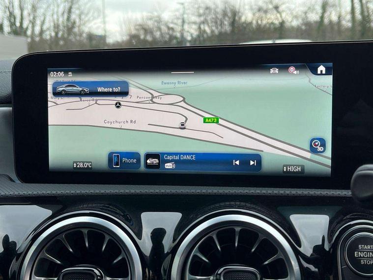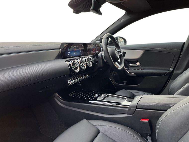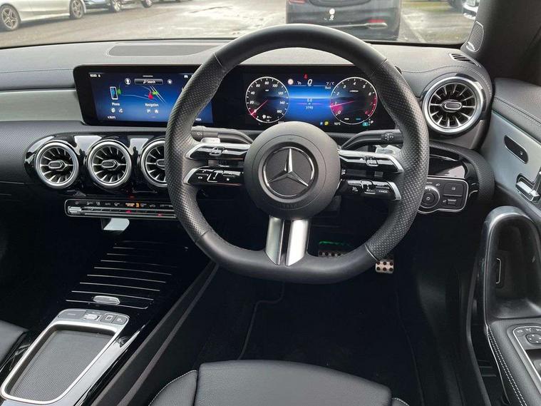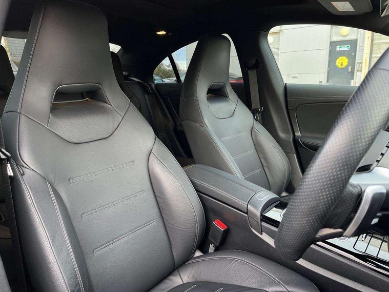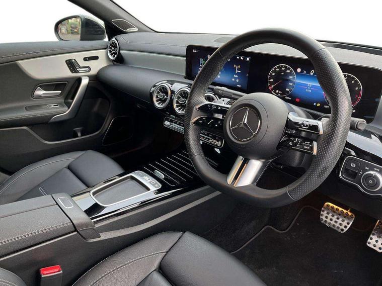 10.25 inch Instrument display with digital cockpit, 10.25 inch touchscreen central media display, Active lane keeping assist, Attention assist - Monitors steering behaviour and long journey fatigue, Bluetooth connection, Car wash mode, Cruise control with limiter, Direct steer system, DYNAMIC SELECT with a choice of driving modes (ECO, Comfort, Sport and Individual), ECO start/stop function, Fingerprint sensor, Fluid level warning indicator for fuel, oil, coolant and washer fluid, Hard-disk navigation, Head up Display, Hey Mercedes Voice activation, Lamp failure indicator, Mercedes me connect including emergency call system, accident recovery, breakdown and maintenance management, Mercedes me remote services, Outside temperature gauge, Owners manual in English, Pre-installation of private car share, Radio aerial integrated into front and rear windshields, Service indicator (ASSYST), Smartphone integration with Apple CarPlay and Android auto, Traffic sign assist, Trip computer in multifunction display with current consumption indicator, Wireless charging in the front centre console, Comfort suspension with ride height lowering, Rear axle multi-link, Burmester lettering on the speakers, Burmester surround sound system (710W) with dolby atmos, speakers - 1 central, 1 woofer, 1 tweeter, 1 subwoofer with 60W, 2 in C pillar, DAB digital radio tuner, MBUX multimedia system, Pre installation for Mercedes Benz Link, Adaptive brake lights, AMG body styling with AMG front apron and rear apron and visible exhaust tailpipe in chrome trim elements, Body colour door handles, Electric panoramic sunroof with automatic tilt and convenience closing fuinctions, rain sensor auto closing and electronic roller sunblind, Electric windows, Electrically adjustable and heated door mirrors with integrated LED indicators, Exhaust system with 2 Visible tailpipe trim elements and rear apron with trim in chrome, Hand free access, Headlamp assist automatic headlamp activation, Heated glass rear windscreen + timer control, High level LED third brake light, Integrated LED daytime running lights, Interior mirror with black reading lamps and frameless, LED tail lamp, Multibeam LED headlamps with adaptive highbeam assist plus, Privacy glass with dark tinting on rear side windows and rear window, Radiator grille with Mercedes-Benz pattern in chrome and central Mercedes star, single louvre in high-gloss black with chrome inserts, Rain sensing windscreen wipers with two sensitivity settings, Rear boot, Rear fog lamp, Rear side wing doors, Variable front intermittent wipers, 3 seat bench in 2nd row, 3 twin spoke flattened multifunction steering wheel in nappa leather - horizontal twin spoke in high gloss black, vertical twin spoke in silver chrome, 40:20:40 split folding rear seat backrests, Air conditioning - Two zone thermotronic luxury automatic climate control with display, Air vents with surround in silver chrome, Automatic child seat recognition sensor, Black roof lining, Brushed stainless steel sports pedals with rubber studs, Electrically adjustable front memory seats including 4 way lumbar support, Floor mats with stitched AMG lettering, Fluorescent jacket, Front centre armrest with stowage, Galvanished gear shift paddles in silver chrome, Interior lighting - 64 colour Ambient lighting, Luggage net on driver/front passenger seat backrest, Manually height and reach adjustable steering column, Rear armrest with two integral cup holders for drinks, Rear head restraints, Single front passenger seat, Sport seats with fixed head restraints, Stowage compartment in centre console with retractable cover, Sunvisors with illuminated vanity mirrors, Twin front cupholders, Two outer rear seat isofix and top tether child seat fixing points, Keyless go comfort pack - CLA, Light and sight pack - CLA, Mirror pack - CLA, Night package - CLA, Parking pack with 360 degree camera - CLA, Seat comfort pack - CLA, USB package plus - CLA, Winter pack - CLA, Active bonnet pedestrain safety measure which detects an impact and raises bonnet by 65mm, Adaptive brake assist with hold function and hill start assist, Anti lock braking system (ABS) with brake assist, Black seat belts, Bonnet with power domes, Brake calipers with Mercedes-Benz lettering, Brake pad wear warning indicator, Childproof locks manually operated for rear doors and electrically operated for rear power windows, Crash responsive emergency lighting, Driver and front passenger head and sidebags, Driver and front passenger windowbags, Drivers knee airbag, Dual stage driver and front passenger airbags, Electric parking brake, Electronic stability programme with acceleration skid control, ESP curve dynamic assist, Exit warning, Front and rear seatbelt reminder, Front passenger seat occupancy sensor, Perforated front brake discs, Sports braking system, Three point rear seat belts, Tyre pressure monitoring system, Warning triangle and first aid kit, Alarm system with immobiliser and interior protection -Thatcham category 1, Guard 360 deg vehicle protection - tow away protection with visual, acoustic warning, interior monitoring, preinstallation for parking damage, Remote central locking and crash sensor with emergency opening function, Light aluminium with longitudinal grain interior trim, 19" AMG multi-spoke black painted light alloy wheels with high sheen rim flange, Summer tyres, Tirefit tyre sealant kit,