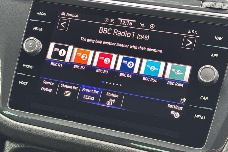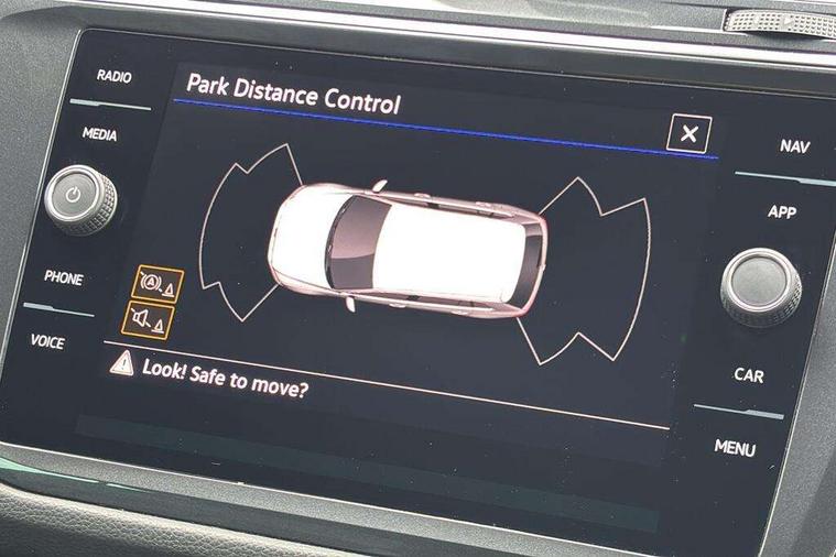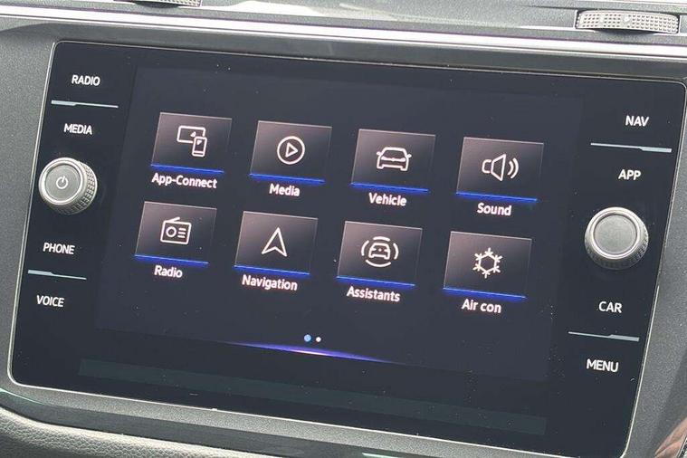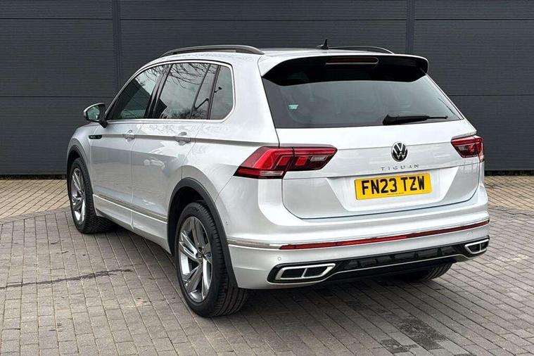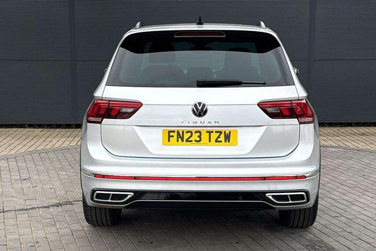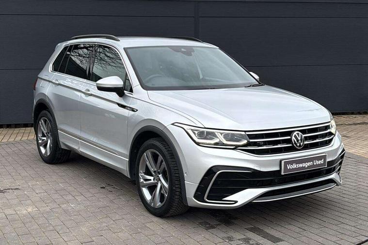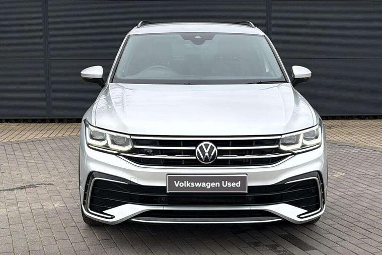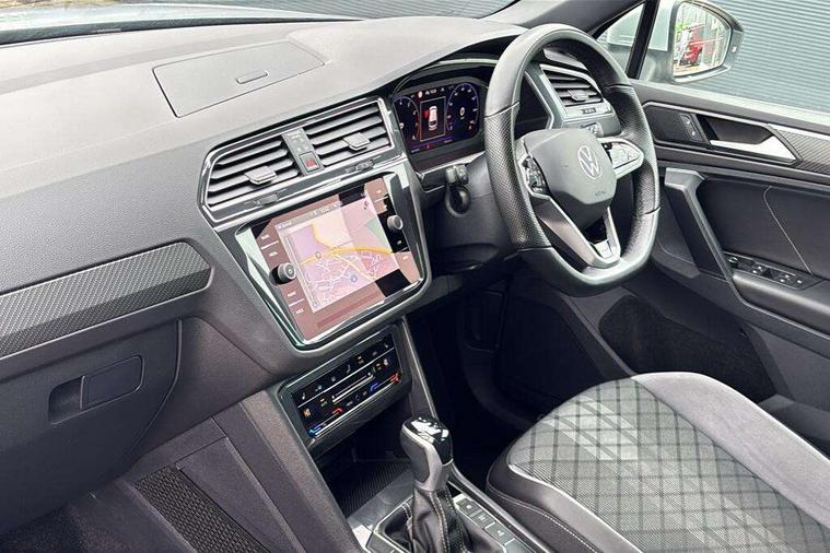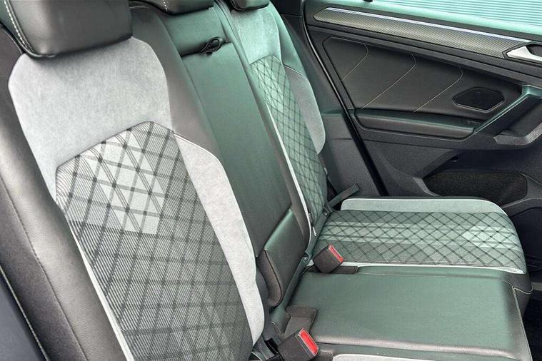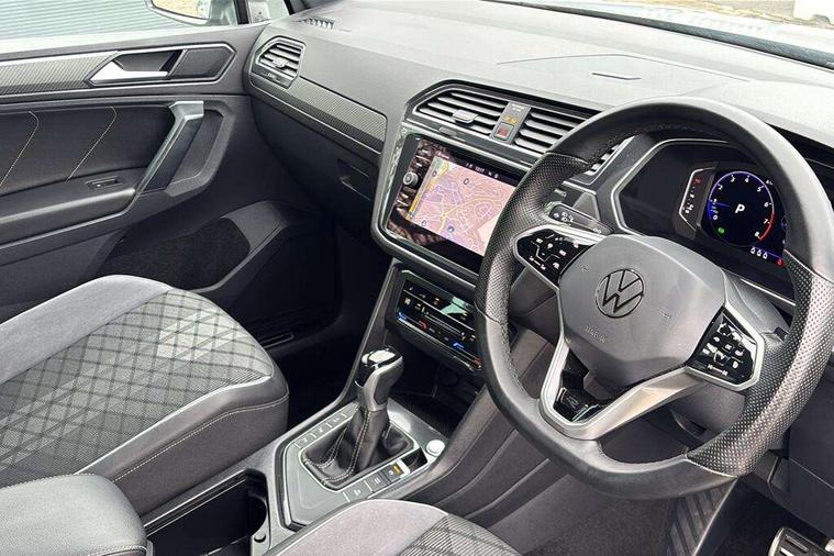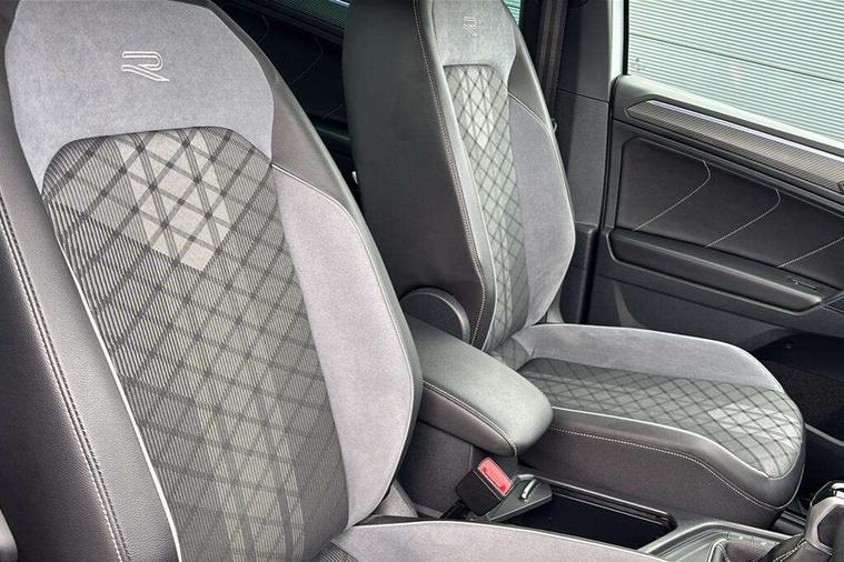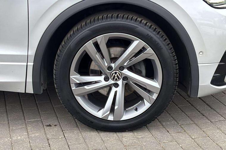 Adaptive cruise control ACC stop and go including speed limiter, App-Connect incl. App-Connect Wireless for Apple CarPlay and Android Auto, Bluetooth phone integration system, Comfort drive travel assist, Digital cockpit pro, Driver alert system, Driver profile selection, Dynamic road sign display, eCall emergency call system, Electromechanical speed sensitive power steering, Emergency assist, Front and rear parking distance sensors, Instrument cluster mph speedometer Great Britain, Lane keeping system Lane Assist, Lights on warning, Multifunction front facing camera, Outside temperature display, Premium multifunction display with multi colour display, Preparation for subsequent activation Navigation feature Discover Media includes Streaming and Internet, Remote control boot opening, Rev counter, Service interval indicator, Speed limit display, Start/stop system with regenerative braking, Tailgate/trunk lid unlocking from outside, Trip computer, Warning sound and light for doors and tailgate open, Battery regeneration during braking, Sports suspension, 8 Speakers, Digital radio reception DAB+, Diversity antenna for FM reception, Radio, Auto dimming interior rear view mirror, Automatic headlight control system, Body colored bumpers in R-Line style, Body colored exterior mirror housings, Body colour door handles, Chrome moldings on the side windows, Coming/leaving home lighting function, Dynamic headlight range control, Front and rear electric windows, Heated rear window, High level 3rd brake light, Laminated safety glass windshield, heat and sound insulating, LED headlamps with LED separate daytime running light and dynamic cornering light, LED rear combination lamps, LED rear number plate lights, License plate carrier in front and rear, Poor weather light and cornering light, Power adjustable, folding and heated door mirrors with surround lighting, front passenger exterior mirror lowering function, Privacy glass for rear side windows and rear window, R Line body kit, R Line side sills, Rain sensor, Rear exhaust tailpipe, Rear fog lamp, Rear side wing doors, Rear spoiler in R style, Rear windscreen washer and wiper with interval delay, Side and rear windows in heat insulating glass, Trailer Stability Programme, Unique R Line badging, Windscreen wipers/ intermittent wipe + 4 position delay, 12V outlet in center console rear and in luggage compartment, 12V outlet in front and tray, 2 LED front reading lights, 2 LED rear reading lights, 3 bench rear seats in 2nd row, 3 rear headrests, Air Care Climatronic 3 zone automatic climate control with enhanced air filter and controls in the rear, Art Velours greyson sports cloth upholstery, Backrest release for left front seat, Black headlining, Brushed stainless steel pedals and footrest, Carpet mats in front and rear with decorative stitching in Gray, Climate control unit rear with touch function, Door and side trim panel in foam film, insert in leatherette, Driver + front passenger lumbar support, Front footwell illumination, Front scuff plates in aluminum with R-Line logo, Front seats head restraints (x-adjustment), Height adjustable front seats, Height/reach adjust steering wheel, Isofix Preparation 2 Rear child seats, Leather gear knob, Rear bench seat asymetrically split folding, longitudinally movable and folding with load-through hatch and center armrest, Remote unlocking for rear seat backrest, Single front passenger seat, Sun visors with illuminated vanity mirrors, Top front comfort seats, Winter pack - Tiguan, 3 point seat belt for centre rear seats, 3 point seat belts with seat belt pretensioners for the outer rear seats, Curtain airbags for front and rear passengers, Driver/Front Passenger airbags, Drivers knee airbag, Electronic parking brake with auto hold, Electronic Stability Control with driver steering recommendation, ABS, ASR, EDL, EDTC and trailer stabilization, Front assist with autonomous emergency braking (for Adaptive Cruise Control ACC up to 130 mph), Front disc brakes, Front passenger airbag deactivation, Front side airbags, Height adjustable front 3 point seatbelts + pretensioners, Manual child proof rear door locks, Pedestrian monitoring system, Proactive passenger protection system in combination with front assist, Rear disc brakes, Two tone horn, Tyre pressure loss indicator, Warning sound and light for front seat belts if unfastened, Warning triangle, Anti theft alarm system with interior monitoring, backup horn and towing protection, Anti theft wheel bolts, Electronic engine immobiliser, Keyless locking and starting system keyless access with safelock, Chrome elements on the mirror switch power window switches and door pulls, Decorative inserts Carbon Gray for dashboard and front door trim panels, Interior door handle in matte chrome, 19" Valencia alloy wheels with AirStop tyres, Tool kit, Tyre mobility kit Includes 12V compressor and tyre sealant,