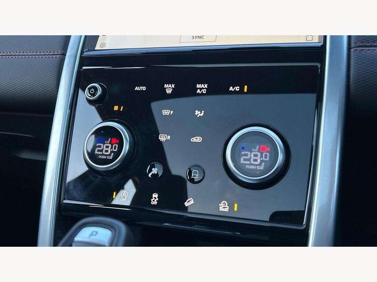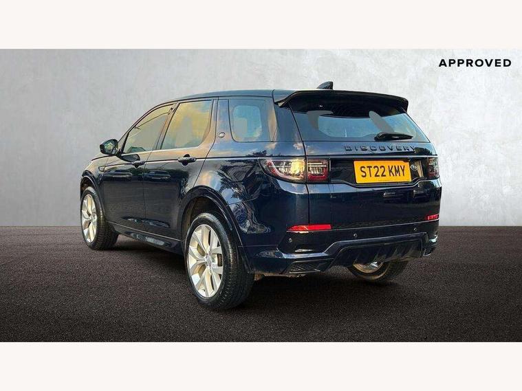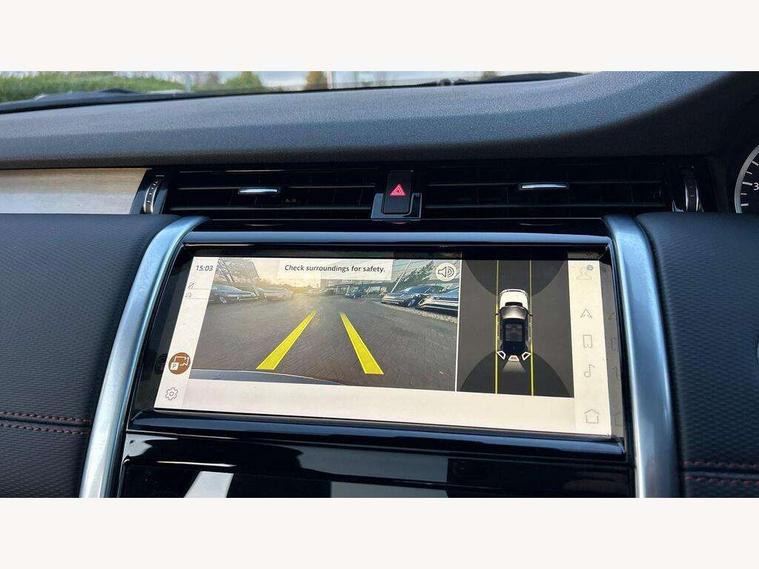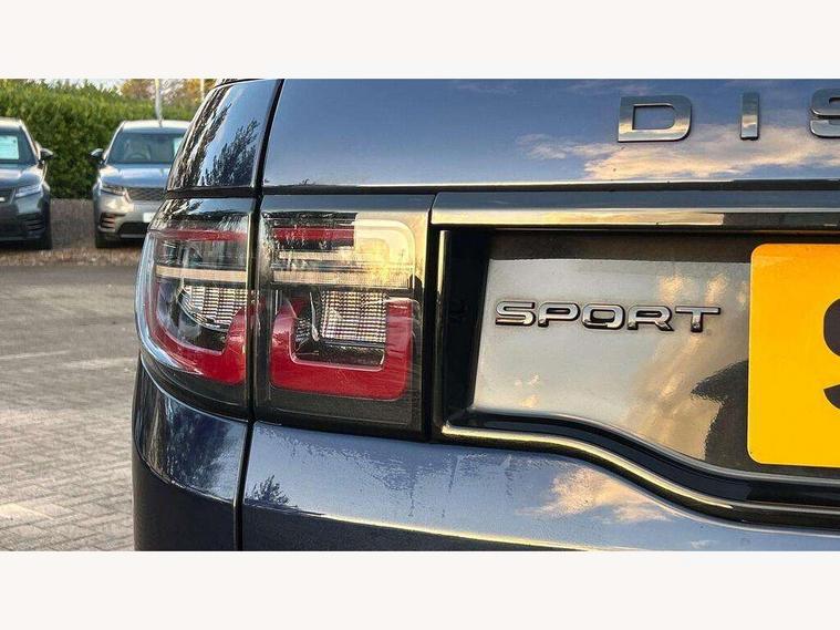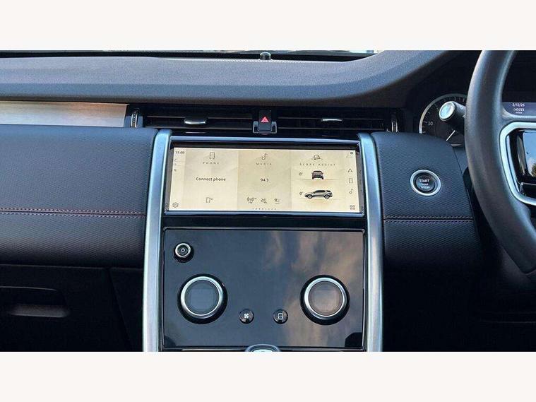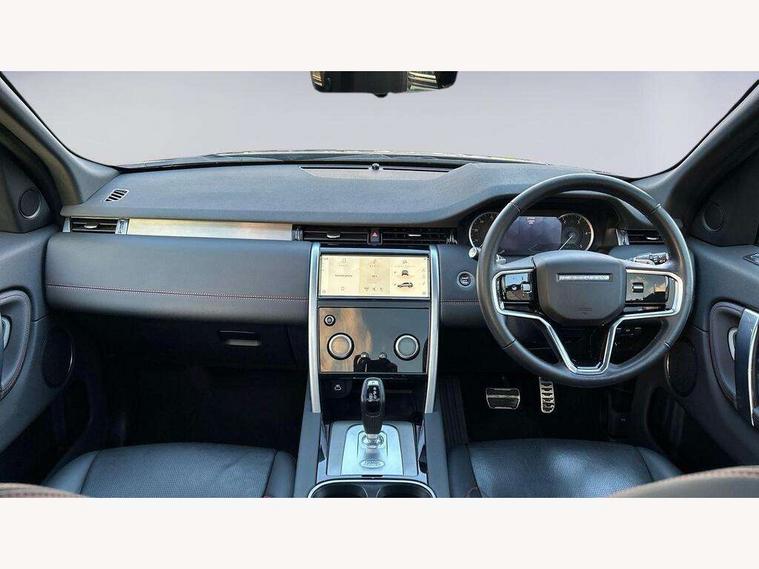 10" touch screen, Adaptive cruise control, Android Auto, Apple CarPlay, Driver condition monitor, eCall emergency call system, Front and rear parking aid, InControl remote premium, Lane keep assist, Locking fuel flap, PAS, Pivi Pro connected navigation system with upgraded Infotainment, Powered tailgate/boot lid, Push button start, Rear collision monitor, Service interval indicator, Traffic sign recognition with adaptive speed limiter, Trip computer, Wade Sensing, All terrain progress control, Coil suspension system, Diesel particulate filter, Dynamic stability control, Terrain Response 2, Bluetooth connectivity including audio streaming, Digital Audio Broadcast radio-DAB, Steering wheel mounted audio controls, 3rd brake light, Automatic headlights, ClearSight interior rear view mirror, Electric front/rear windows, Electric heated/power fold door mirrors with approach lights and auto dimming driver side, Fixed panoramic sunroof with powered sunblind, Front and rear recovery eyes, Heated rear window, Heated windscreen including heated washer jets, No badges, R Dynamic badge, Rain sensing windscreen wipers, Rear fog lights, Rear side wing doors, Rear wing door, Rear wiper, 5 seats, Bright metal pedals, Centre console with armrest, Footwell lights, Front and rear grab handles, Front passenger isofix child seat attachment, Loadspace cover, Loadspace light, Overhead lighting console, Overhead stowage for sunglasses, Rear headrests, Satin chrome gearshift paddles, Sunvisors with illuminated vanity mirrors, Tilt/reach adjustable steering wheel, Black exterior pack - Discovery sport, Online pack with data plan - Discovery, 3 point seatbelts on all seats, ABS, Brake hold function, Child locks on rear doors, Collision mitigation braking system, Cornering brake control (CBC), Driver/Front Passenger airbags, Drivers knee airbag, Electronic brake force distribution, Electronic parking brake, Emergency brake assist, ESP + traction control, Hill descent control, Hill launch assist, Pedestrian airbag system, Rear seat ISOFIX, Roll stability control, Side and curtain airbags for front and 2nd row seats, Trailer stability control, Tyre pressure monitoring system, Battery Back Up System (BBUS) with tilt sensor, Global lock and unlock switch on driver door, Intrusion sensor, Keyless entry, Locking wheel nuts, Centre stack rails in noble chrome,