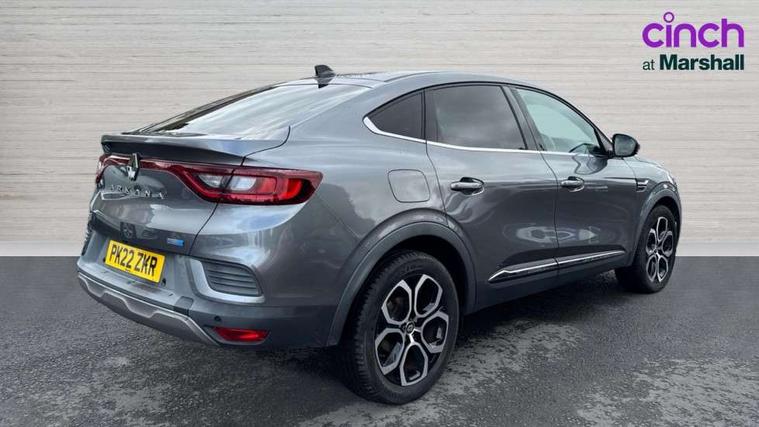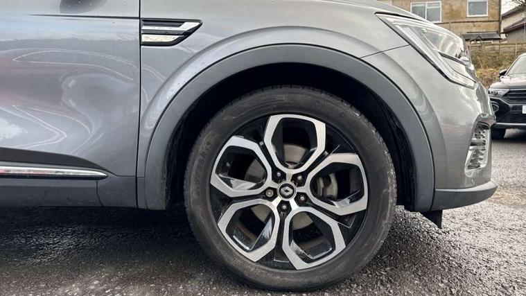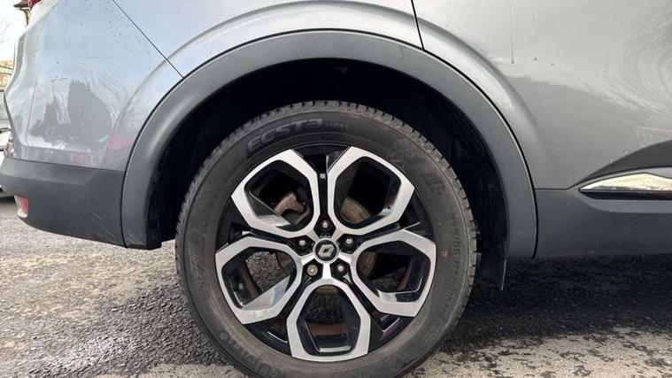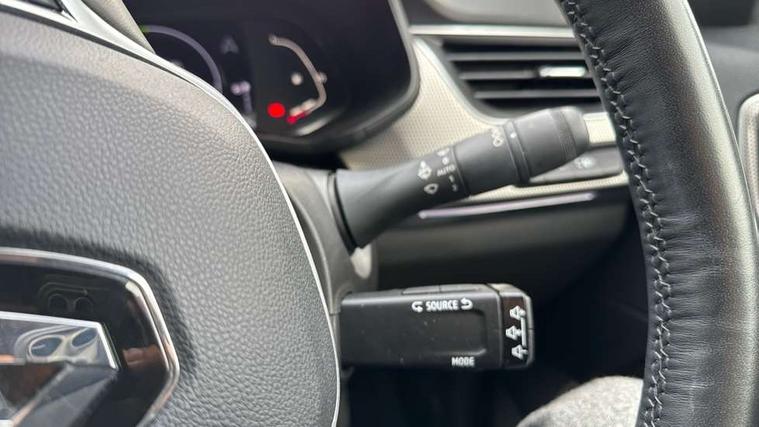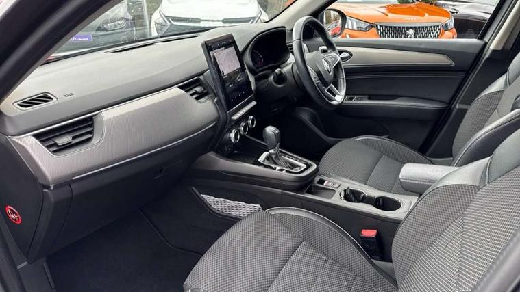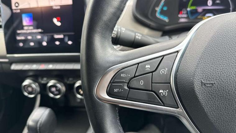 7" TFT Driver information display, Blind spot warning, Bluetooth system, EASY LINK 9.3" portrait touchscreen with navigation, Google search and traffic information, eCall emergency call system, Eco mode, EV button to activate pure mode, Front and rear parking sensors, Gear change indicator, Lane departure warning, Lane keep assist, Multi-sense - 3 driving modes and 8 ambient lighting, Rear cross traffic alert, Rear view camera, Renault automatic emergency assist, Smartphone integration compatible with Apple CarPlay and Android Auto, Traffic sign recognition with over speed prevention, Trip computer, Variable assistance electric power steering, Arkamys classic sound system with 6 speakers, DAB radio, USB port, 3rd brake light, Auto dimming rear view mirror, Automatic headlights, Automatic high / low beam, Automatic windscreen wipers with rain sensor, Black side door protection with chrome insert, Body coloured bumpers, C-shaped LED front signature lighting, Chrome decopart on wing (fender molding), Chrome window lower lining, Extra tinted rear windows and tailgate, Front and rear electric windows, Front driver window with one touch facility and anti-pinch function, Front grille with chrome on upper part, Full LED headlights, Grey front and rear skid plates, Heated rear window, Rain sensor, Rear windscreen wiper, Shiny black shark fin antenna, Side mirrors adjustable electrically, electrically foldable, with defrosting and temperature sensor, automatically foldable at vehicle closure, 3 seat bench in 2nd row, 60:40 split and fixed base rear seats, Automatic climate control with combined filter, humidity sensor and AQS, Central console with storage, Front and rear head restraints, Height and reach adjustable steering wheel, ISOFIX child seat fixing points on rear outermost seats, Leather steering wheel, LED front and rear roof lights, Rear air vents, Single front passenger seat, 3x3 point rear seat belts, ABS+EBA, Active emergency braking system, B Brake Mode - One pedal driving with increased regenerative braking, Distance warning alert, Driver airbag, Driver and passenger front and side airbag deactivation, Driver and passenger side airbags, Driver height adjustable seat belt, Electronic parking brake with auto hold, ESC (Electronic Stability Control), Front and rear no seatbelt warning sound, Front curtain airbags, Front head airbags, Hill start assist, Passenger airbag, Tyre pressure warning light, Anti drill door locks and locking fuel cap, Central door locking, Deadlocking system, Hands free keycard with Keyless access and start, RAID (Renault Anti-Intruder Device) automatic door locking, Rear side wing door and window child locking function (front driver door control panel), Superlocking, Thatcham alarm, 18" Pasadena diamond cut alloy wheels with grey inserts,