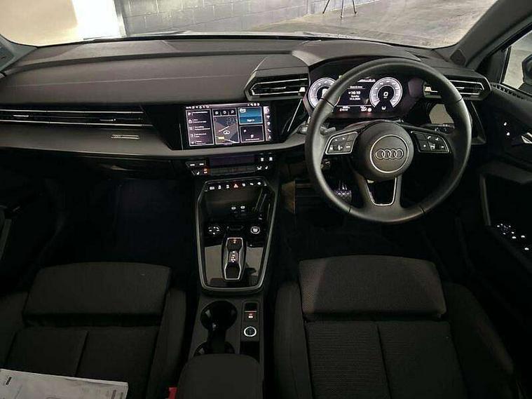 Adjustable speed limiter, Audi drive select, Audi smartphone interface with app store includes wireless Apple carplay, Android auto and Amazon alexa integration, Audi virtual cockpit plus - 12.3" full HD resolution dynamic digital instrument cluster, Automatic start/stop system with recuperation, Bluetooth interface, Camera based traffic sign recognition, Collision avoidance assistant, Cruise control, Distraction and Fatigue warning, e-Call (emergency call), Electromechanical power speed sensitive steering, Lane departure warning system, MMI Navigation Plus with high resolution 10.1" colour touch screen display, Park Assist with parking system Plus, Service indicator, Tailgate, Trip computer, Voice control system with natural language interaction, Standard suspension, Audi Phonebox light with wireless charging, Audi sound system - 10 loudspeakers including centre loudspeaker and subwoofer, DAB Digital radio, USB ports with charging function in the rear, 3rd brake light, Acoustic glass windscreen, Aluminium window trim, Auto dimming frameless rear view mirror, Body colour exterior mirrors, Body colour roof spoiler, Electrically adjustable/heated/folding/auto dimming door mirrors with integrated LED indications + kerb view function for passenger side, Exterior model badging, Front electric windows, Front radiator grill in high gloss dark chrome, Front side air inlets in grained matt black with silver frame, Heat insulating glass windscreen, LED daytime running lights, LED headlights and halogen rear lights, Light and rain sensors, Rear diffuser and grill in grained matt black with silver frame, Rear electric windows, Rear side wing doors, Rear window, rear door windows and rear side windows in clear glass, Rear wiper, 12V socket and storage compartment in front centre console, 3 seat bench in 2nd row, 3 spoke leather multifunction steering wheel with gear shift paddles, 3-zone deluxe automatic air conditioning, 4 way electrically adjustable lumbar support for driver and front passenger, 60/40 split folding rear seat bench, Front and rear headrests, Front centre armrest, Front door sill trims with aluminium inlay, Front/rear floor mats, Heated front seats, Height and reach adjustable steering wheel, Manual boot compartment lid, Manually adjustable front seats, Routine cloth upholstery with front sports seats, Seat side bolsters, Single front passenger seat, Steel grey cloth headlining, Aluminium interior elements pack - A3 Sportback, LED interior lighting pack -A3, 3x3 point rear seat belts, Driver and front passenger airbag with passenger airbag deactivation, Electronic Stabilisation Control (ESC) including ABS, ASR and EDL, First aid kit with warning triangle and 2 safety vests, Front side airbags with head airbags and interaction airbag, Hill hold assist, Pre-sense front with pedestrian and cyclist detection, Seatbelt monitoring, Tyre pressure loss indicator, Anti theft alarm, Anti-theft wheel bolts, Electronically operated child locks, Immobiliser, Remote central locking with safelock, Inlays in volcano grey fine paint finish,