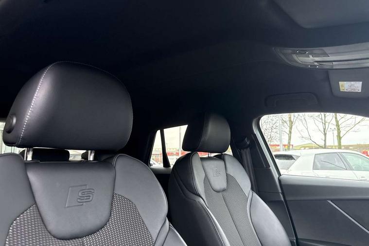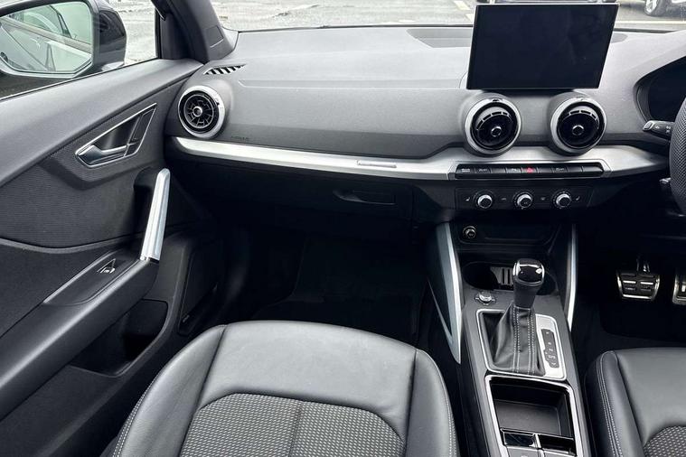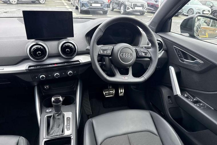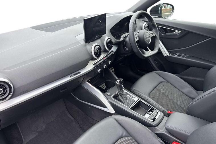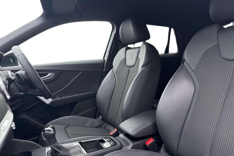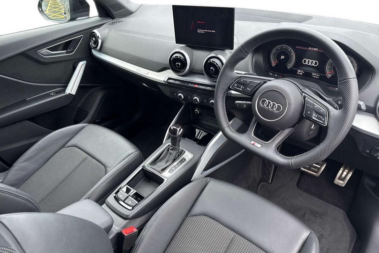 3D map display, Audi connect navigation and infotainment includes innovative services, Audi connect remote and control connects your vehicle to your smartphone, Audi drive select: S tronic - power steering assistance + engine + gearshift (modes: comfort, auto, dynamic, efficiency, individual), Audi smartphone interface - Apple carplay/Android Auto, USB connect, 2xSDXC card readers, voice control for navi, telephone, music and 3rd party apps, Audi virtual cockpit, Automatic start/stop system with recuperation, Bluetooth interface includes bluetooth audio streaming, Camera based traffic sign recognition, Cruise control, Distraction and Fatigue warning, E-call, Jukebox hard drive memory for music (10GB), Lane departure warning, MMI navigation plus with 8.8" touchscreen, Natural voice recognition, Power operated tailgate, Progressive steering, Rear parking sensors, Sport suspension, 6 passive loudspeakers, DAB Digital radio, USB type C port, Audi beam, Auto dimming rear view mirror, Black window trims, Bumper in full body colour paint finish, Electrically adjustable, folding, auto dimming and heated door mirrors with integrated LED side indicators, Front windscreen with grey tinted sunband, LED daytime running lights, LED headlights with dipped beam, high beam, position lights, indicators, LED rear lights, LED third brake light, Privacy glass - dark tinted rear and rear side windows from B-pillar backwards, Rear side wing doors, Rear wiper, Variable front intermittent wipers, Wheel arch trims in manhattan grey, 12V socket in front, 3 seat bench in 2nd row, 3 spoke flat bottomed multi-function leather sport steering wheel with gear shift paddles, 4-way electric lumbar support for front seats including manual seat height adjustment for both front seats, 60/40 split folding rear seat bench, Black carpets, Black cloth headlining, Front and rear head restraints, Front centre armrest, Front sport seats, Front/rear floor mats, Height/reach adjust steering wheel, Illuminated door sill trims with S logo, ISOFIX child seat mounting in front passenger and rear outer seats, Manual air conditioning, Single front passenger seat, Stainless steel pedals, Black styling pack - Q2, 3x3 point rear seatbelts, 6 airbags - Front, curtain and front side airbags, Electromechanical parking brake, Electronic stabilisation control including ABS, ASR and EDL, Front passenger airbag deactivation, Hill hold assist, Pre-sense front with pedestrian recognition, Seatbelt monitoring, Tyre pressure warning light with visual and acoustic warning, Warning triangle and first aid kit, Anti theft wheel bolts, Electronically operated child locks, Remote central door locking, Thatcham category 1 alarm, Aluminium interior element, Black dashboard, Gloss black centre console, Matt brushed aluminium trim inlays, Tool kit,