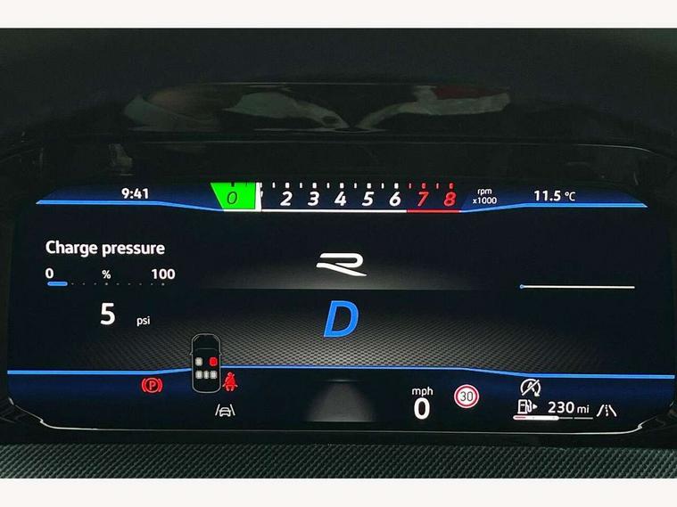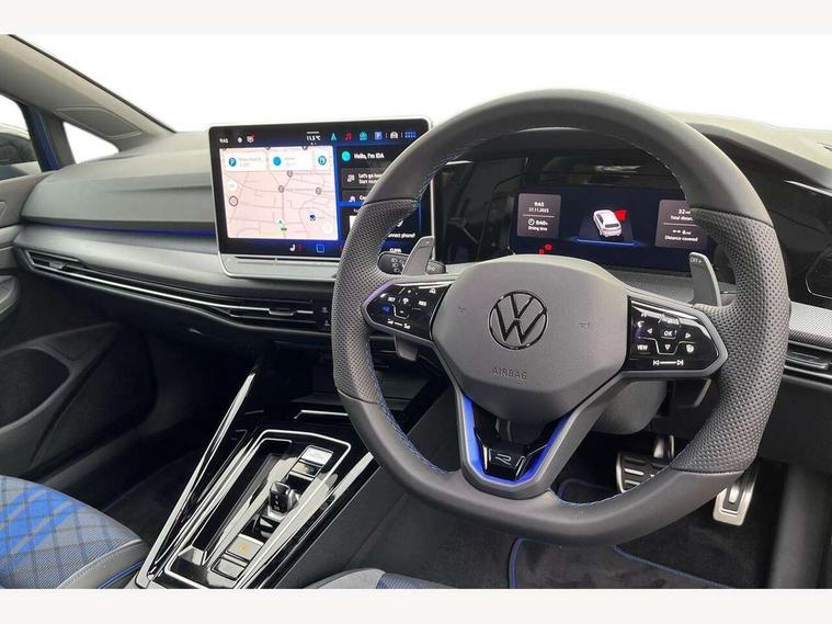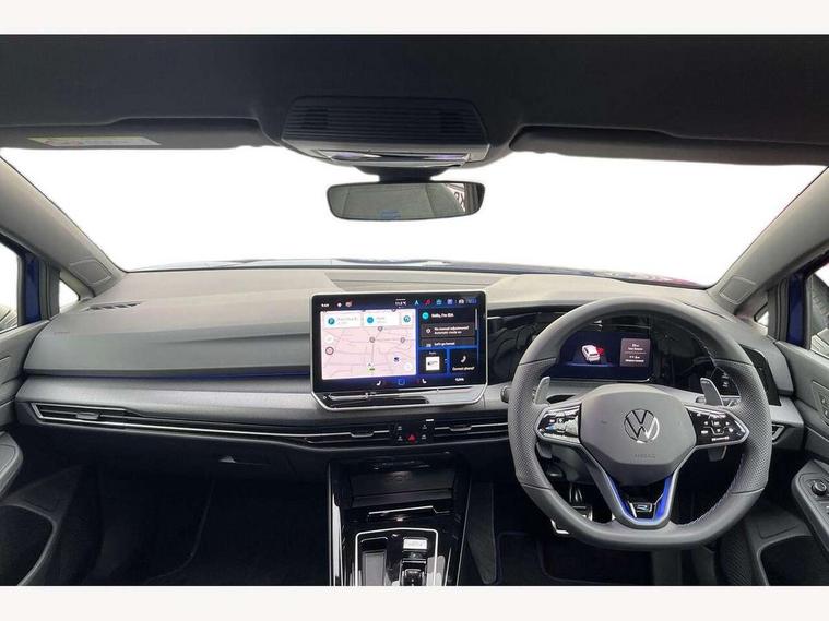 Activated carbon canister, Adaptive cruise control (ACC), Advanced driver attention and drowsiness monitor, Dynamic road sign display, E-Sim card for online connectivity, eCall emergency call system, Electronic maximum speed limit increased to 270 km/h, includes driving Modes 'drift' and 'special', larger roof spolier and GPS laptimer + G-Meter, Multi-color Digital cockpit pro, selection of different info profile possible, Multifunction front facing camera for distance control, Navigation system, Oncoming vehicle braking when turning including swerve support, Progressive steering, Side assist blind spot lane change system, rear traffic alert and exit warning system, Speed limiter, Speedo, rev counter, electronic odometer, trip, service interval display, exterior temperature and fuel gauge, Traffic jam assist, Voice enhancer and voice control, Warning signal and warning light for front and rear seatbelts not fastened, We connect plus preparation, We connect preparation, Wireless app connect, All wheel drive - 4Motion, Petrol Particulate Filter, Start-stop system with battery regeneration (recuperation - energy recovery during braking), XDS electronic differential lock for improved traction and handling, 2 USB C ports in front, 2 USB charging sockets on the centre console in the rear charging capacity upto 45W, Digital radio reception (DAB), Diversity antenna for FM reception, Gaming platform via car app, Infotainment system with 12.9" display, Mobile phone interface with inductive charging feature, 3rd brake light, Auto dimming rear view mirror, Automatic headlamp activation with Coming home and Leaving home feature, Black badge on B-pillar, Black mirror caps, Black strips on radiator grille and headlights, Body colour door handles, Darkened headlights, Darkened R Logos and VW logos in front, rear and on fender, Exterior mirrors convex on the left and aspherical on the right, Front and rear electric windows, Front fog lamps and cornering light, Heat insulating windshield made of laminated glass, Illuminated lighting animation with wake up/goodbye scenario, LED matrix headlights with ambient light V2, advanced high beam, dynamic range contol with cornering, LED rear lamp with indicator, poor weather, LED separate daytime running light, Light assist with High beam control, R name plate, Rain sensor, Rear fog light on one side and reversing lights on both sides, Rear side wing doors, Rear tinted glass 65% light absorbing from B pillar backwards, Rear windscreen washer and wiper with interval delay, Remote electrically foldable door mirrors, puddle lights and reverse activated passenger's door mirror, Welcome light with surround lighting, 12V socket in front centre console, 12V socket in luggage compartment, 3 rear head restraints, 3 seat bench in 2nd row, 30 colour ambient lighting, illuminated center console storage compartment in front, Air care climatronic 3 Zone automatic climate control with rear air conditioning control panel, Aluminium gearshift handle, Brushed stainless steel pedals, Chrome plated radiator grille inserts, air vent surrounds and light switch surrounds, Entry lights, Front + rear black carpet mats, Front centre armrest, Integrated front head restraints, ISOFIX anchors for child seats on outer rear bench seats and on front passanger seat compatible for i-Size, Luggage compartment lighting, Rear cupholder and loadthough, Single front passenger seat, Soul black instrument panel, Soul black roof lining, Split folding backrest with centre armrest and unsplit rear seat bench, Sun visors with illuminated vanity mirrors, Driver assistance pack - Golf Estate/Hatchback Auto, R styling pack - Golf, Technology park and comfort pro package - Golf Hatchback, 3 point height adj front seatbelts + pretensioners, 3 rear three point seatbelts, ABS, Autonomous emergency braking front assist with pedestrian and cyclist monitoring, Child locks on rear doors, Driver and front passenger airbag with front passenger airbag deactivation, Electronic parking brake with auto hold, ESC (Electronic Stability Control), Extended pedestrian protection measures, Front and rear black brake calipers with darkened R-logo, Hill start assist, Rear disc brakes, Two tone horn, Tyre pressure loss indicator, Volkswagen roadside assistance, Anti theft wheel bolts, Preparation for alcohol interlock, Sporty vehicle dynamics, Tool kit for tyre mobility set, Tyre mobility kit Includes 12V compressor and tyre sealant, Wheel hub cover with darkened R-logo,