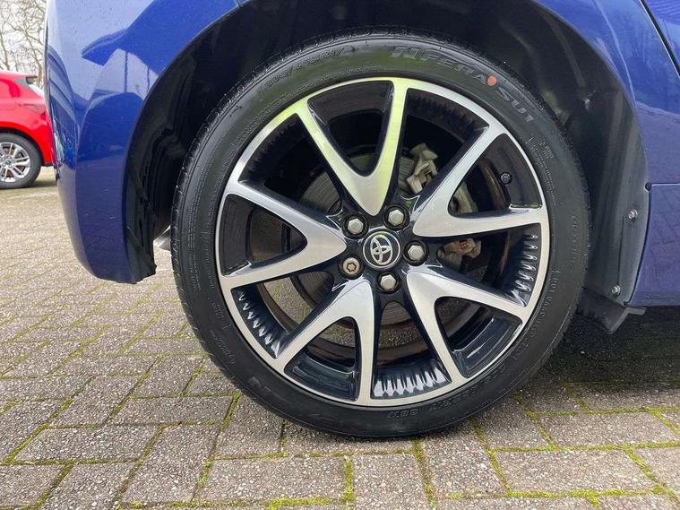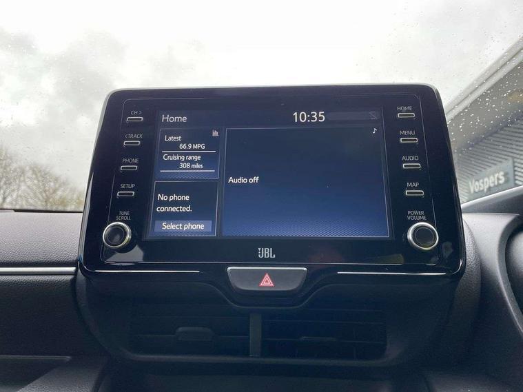 Adaptive cruise control, Adjustable speed limit with speed warning, Bluetooth connectivity, Colour binocular inspired displays with digital speedometer, E-call, Electric power steering, Hybrid energy display, Multi information display switches on steering wheel, Reversing camera, Smartphone integration with Apple CarPlay and Android auto, Vehicle Stability Control (VSC), 8" Multimedia display touch screen, JBL Premium sound system with 8 speakers, Toyota Touch 2 with DAB, USB connection, Acoustic windscreen glass, Auto windscreen wipers, Automatic headlights, Body coloured door mirrors, Electric adjustable heated door mirrors, Follow me home headlights, Front auto power windows with anti jam protection, Full LED rear lights, LED daytime running lights, LED front fog lights, LED Headlights, LED High mounted stop lamp, Painted front grille, Rear auto power windows with anti jam protection, Rear privacy glass, Rear spoiler, Shark fin antenna, Turning signal integrated indicators in door mirrors, 3 adjustable rear headrests, 3 spoke leather steering wheel, 60/40 split folding rear seat, Active headrests, Adjustable boot height, Coat hooks in rear grab handles, Cup holders (2 front & door), Data Communication Module (DCM) connected services, Dual zone automatic air conditioning, Fabric seat with partial synthetic leather upholstery, Front armrest, Front sport seats, Glovebox, Height adjustable driver's seat, Height adjustable passenger seat, Isofix seat fixing, Leather gearshift, Map pockets on the backs of the front seats, Pollen filter, Shopping bag hooks, Tilt/telescopic steering column, 3 point seatbelts on all rear seats, ABS+EBD+Brake assist, Electronic parking brake, Emergency brake light system (EBS), Front passenger airbag on/off switch, Front seatbelt reminder, Hill start assist control (HAC), Rear child proof door locks, Rear seat belt reminder, Supplemental Restraint System (SRS) 8 airbags: Driver & passenger's airbags, dual side curtain airbags, side impact airbags, front centre airbag, Toyota Safety Sense 2, Precollison + Night time Pedestrian & Cyclist Detection, Lane Trace Assist, Auto High Beam, Intelligent ACC & Road Sign Assist, Tyre pressure warning system, Alarm/immobiliser, Keyless smart entry with push button start, Remote powered central double locking doors, Piano black interior trim, Soft touch instrument panel, Space saver spare wheel,