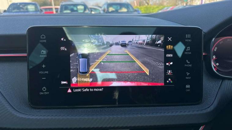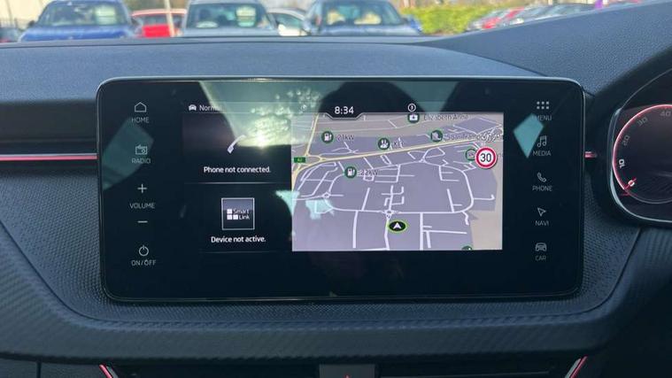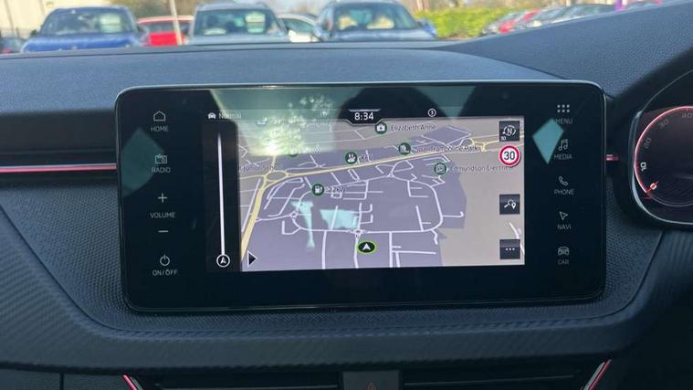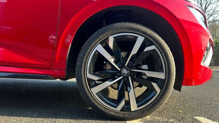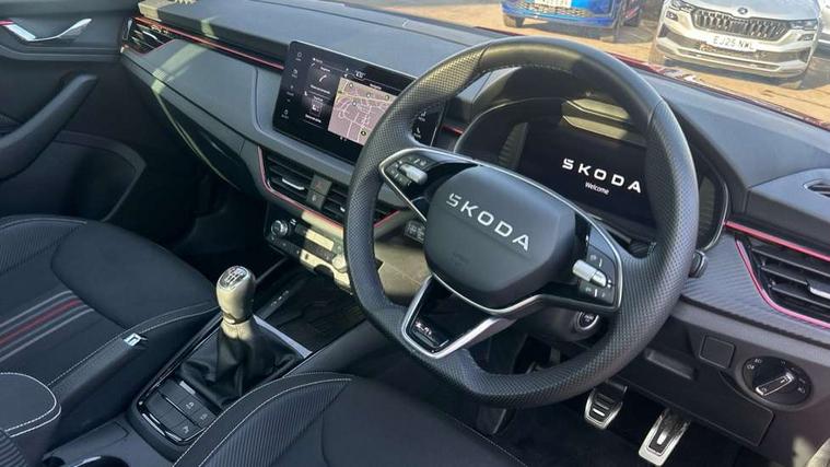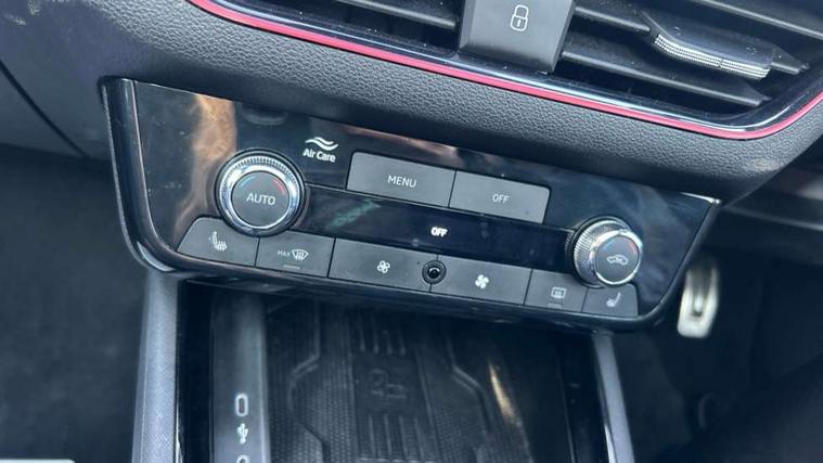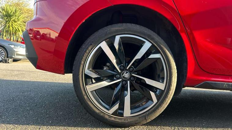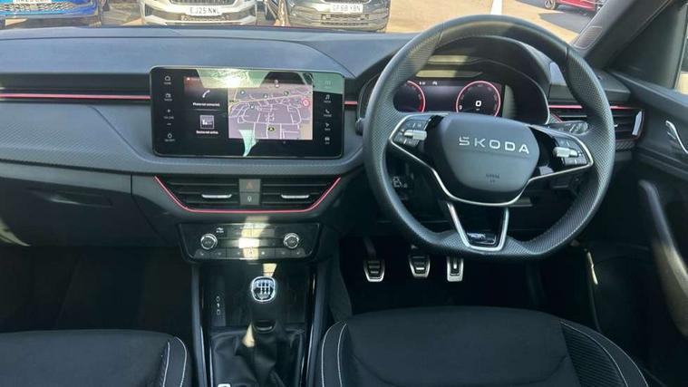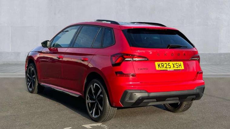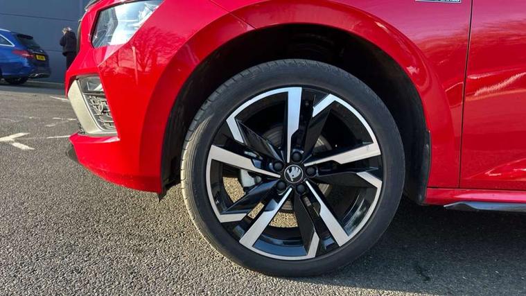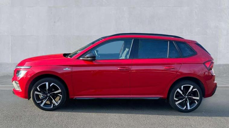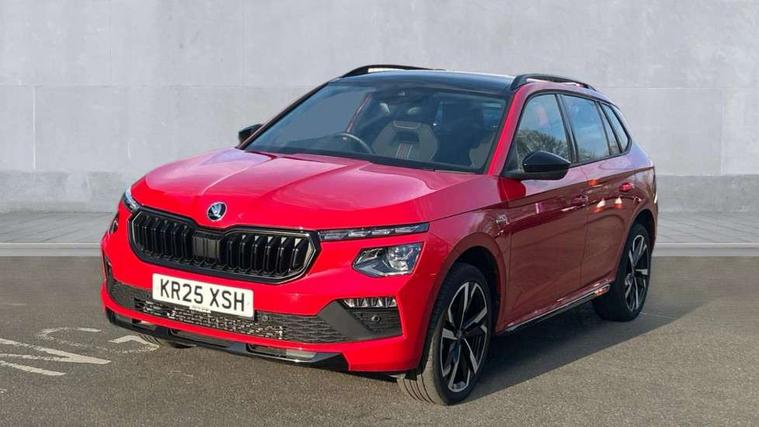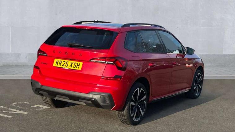 Advanced driver attention and drowsiness monitor, Bluetooth system, E-call, Front assist system, PAS, Rear parking sensors, Rear view camera, Service indicator, Speed limiter, Traffic sign recognition, Virtual cockpit with 10.25" display, Voice control system, Wireless smartlink, 4 USB C ports, 8 Speakers, 9.2" Skoda navigation display, DAB Digital radio, Auto dimming rear view mirror, Automatic headlight control with coming home and leaving home feature, Black door mirrors, Black radiator grille, Black rear diffuser, Black roof spoiler, Body colour bumpers, Body colour door handles, Boot lettering in black, Extended tailgate glass, Fixed panoramic sunroof with black roof rails, Front and rear electric windows, Heated rear window, LED daytime running lights, LED high beam, LED low beam, LED third brake light, Light sensors, Monte carlo plaque, Privacy glass, Rear side wing doors, Rear wiper, Ticket holder inside windscreen, 12V socket in luggage compartment, 3 seat bench in 2nd row, Aluminium pedals, Ambient lighting in white/red, Art leather carbon decor inserts, Art leather carbon door inserts, Black roof lining, Cargo elements, Chrome inner door handles, Driver and passenger sun visors with vanity mirror, Dual zone climate control, Front and rear roof lights, Front centre armrest, Front head restraints, Glove compartment with illumination, Height adjustable driver seat, Height adjustable front passenger seat, Ice scraper, Inner circulation control with pollen filter, ISOFIX on front passenger seat, Isofix preparation for back seats, Leather gearknob and handbrake lever, Manual lumbar support for front seats, Monte Carlo cloth upholstery, Net package and top tether hooks in boot space, Net under rear shelf, Pocket on the back of both front seats include mobile phone pockets, Rake/reach adjustable steering wheel, Reading lights, Rear centre armrests, Red hotstamping, Single front passenger seat, Sports seats, Textile floor mats, Third rear headrest, Top tether for front passenger seat, Umbrella in driver's door, Light and view plus package - Kamiq, 3x3 point rear seatbelts, Airbags - driver and front passenger, Disc brakes, ESP, Extended and predictive pedestrian/cyclist protection, Front passenger airbag deactivation switch, Front side airbags with curtain airbags, Hill hold control, Manual leather parking brake, Manual rear child locks, One tone horn, Seatbelt reminder for driver an co-driver, Traction control, Tyre pressure monitor, Anti-theft alarm system with interior monitoring, backup horn, towing protection and remote central locking with SAFE system, Anti-theft wheel bolts, Electronic engine immobilizer, 18" Ursa black diamond cut alloy wheels,