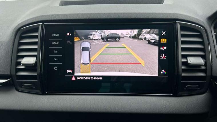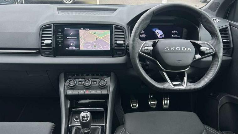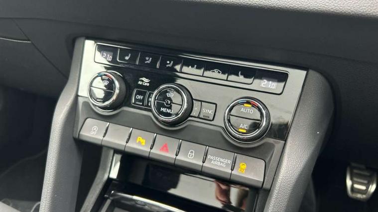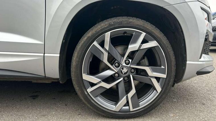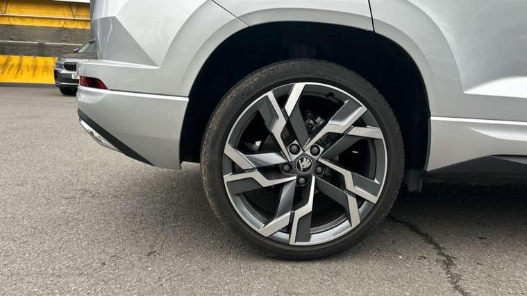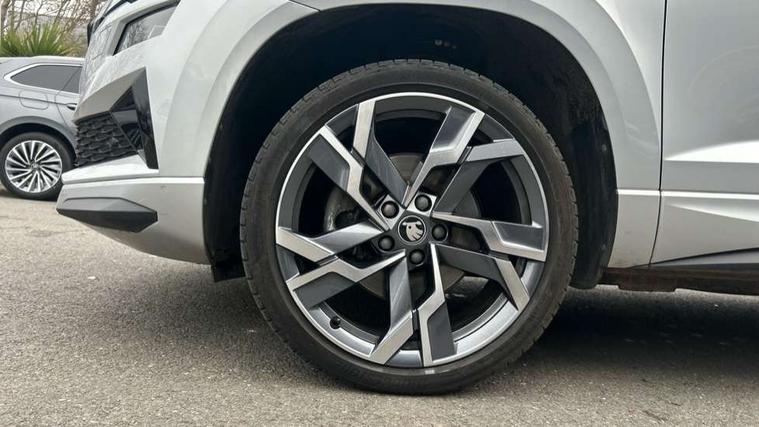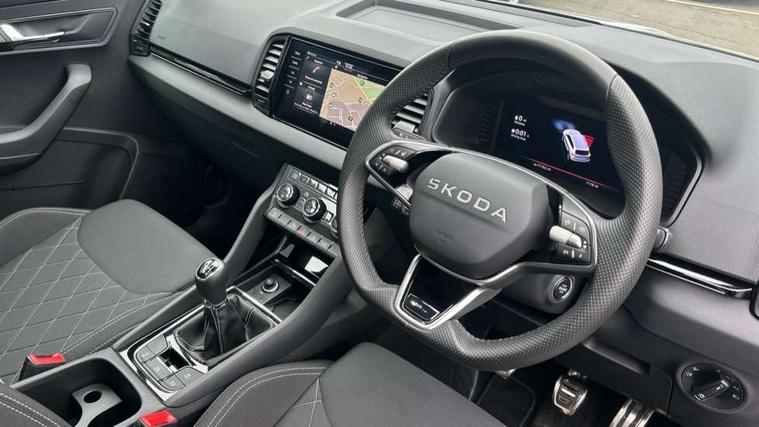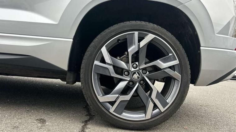 Advanced driver attention and drowsiness monitor, Emergency services call system, Outside temperature gauge, Sensor for driver assistance systems, Service interval indicator, SmartLink wireless for Apple and wired for Android, Start/stop system with regenerative braking, Traffic sign recognition, USB C Port x 2 in front centre console, Virtual Cockpit - 10.25" digital display, Virtual pedal with electrically operated boot door, Wireless smartphone charging, DAB radio with Bluetooth, USB connection, Acoustic glass, Aero front windscreen wipers with intermittent function, Auto dimming rear view mirror with light and rain sensors, Black door mirrors, Black electric window control buttons, Black radiator grille, Black roof rails, Body colour door handles, Electric front and rear windows with child proof lock, Extended rear roof spoiler, Front door steps with SportLine logo, Heated rear windscreen, LED daytime running lights, LED rear lights with high functionality welcome effect and dynamic indicators, Light assistant (coming/leaving home/tunnel light), Panoramic sliding sunroof, Plastic scuff plates in door apertures, Privacy glass, Protective door side sills in body colour, Rear diffuser, Rear side wing doors, Rear window wiper with washer system and intermittent control, Safety reflectors on front doors, Skoda lettering on tailgate in black, Sportline badge on front fender, Sports front and rear bumpers, Third brake light, Unique dark chrome design logo on alloy wheels, 1.5 litre bottle holders in driver and front passenger door panels, 12V socket in boot, 12v socket in front centre armrest with storage compartment and rear air vents, 2 x Tablet holder, 3 rear height adjustable headrests, 3 seat bench in 2nd row, 3 spoke sports leather heated multifunction steering wheel, 4 foldable roof handles with rear coat hooks, Black floor carpet, Cargo elements in boot, Chrome inner door handles, Foldable hooks in the boot, Front head restraints, Height adjustable front three point seats belts with tensioners, Height/reach adjust steering wheel, Ice scraper, Illuminated glovebox, Illuminated luggage compartment, Isofix child seat preparation for front passenger seat, Isofix child seat preparation outer rear, Manual lumbar support for front seats, Pen holder, Pollen filter, Rear backrest release from boot, Rear boot cover, Rear package tray, Rear reading lights, Rear seats fixed folding and divided 60:40, Rubbish bin door, Safety vest holder, Single front passenger seat, Skoda lettering on steering wheel, Sportline decorative inserts, Storage box in upper central dashboard closed, Sunvisors with illuminated vanity mirrors, Textile floor mats, Ticket holder, Titan black interior ceiling, Umbrella under passenger seat, Under passenger seat storage compartment, Columbus pack - Karoq, LED Interior lighting pack with Skoda welcome logo - Karoq, Light Pack - Karoq, Non Smokers pack, Performance pack - Karoq, Winter plus pack with heated front and rear seats - Karoq, Automatic door unlocking in case of crash, Automatic fuel cut off in case of crash, Driver airbag, Electronic parking brake with auto hold function, Emergency rear braking signal, ESC (incl. ABS+MSR+ASR+EDS+HBA+DSR+RBS+MKB), Front side airbags, Head airbags, Hill hold control, Knee airbags, Passenger airbag with switch-off function, Pedestrian monitor, Seatbelt reminder signalisation and pretensioner for all seats, Three point seatbelts rear, Two tone horn, Tyre pressure monitor, Alarm with interior monitoring, back up horn and tilt sensor with safe function, Electronic engine immobiliser, Keyless entry and start/stop, Remote central locking with 2 remote folding keys, Black air vent surround, Black centre console, carbon door decor, Satin black dashboard, Satin black door trim, 19" Sagittarius anthracite alloy wheels, Anti-theft wheel bolts protection, Breakdown and tool kit,