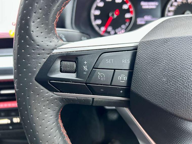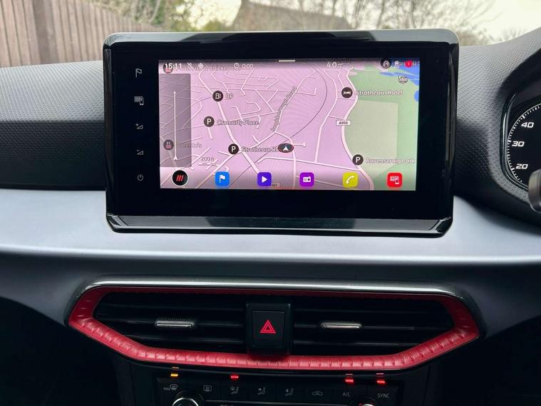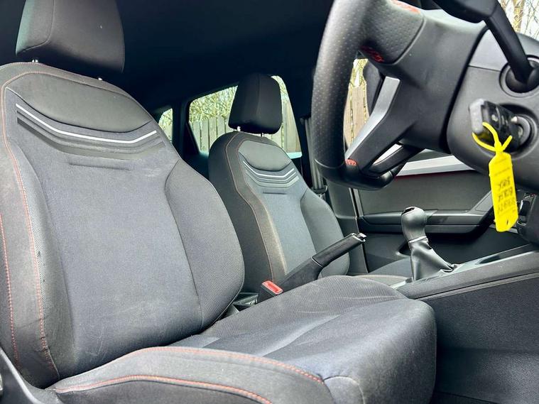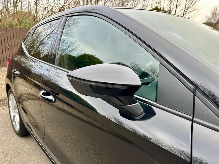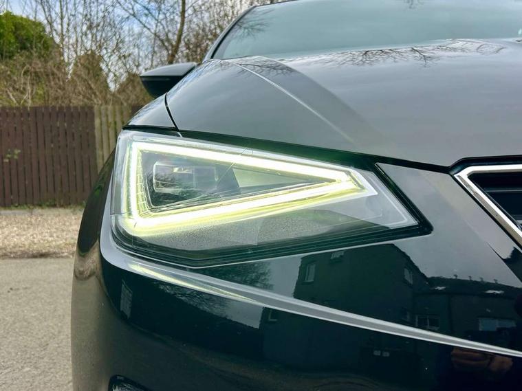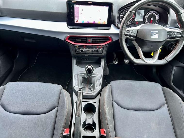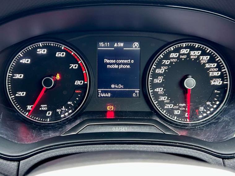 'Lights On' Reminder warning buzzer, 9.2" touchscreen navigation system with type C USB socket, Voice control and DAB/AM/FM radio, Auto start and stop system, Bluetooth audio streaming with handsfree system, Digital clock, Full link smartphone integration with mirror link, wireless apple carplay, Google android auto + USB Type C cable for apple and android devices, Lane assist, Low fuel warning light, Outside temperature gauge, Power Steering, Seat connect with safety, service, remote and online, SEAT drive profiles and ECO function, SEAT logo boot release, Speed limiter, Trip computer, Sports suspension, Auxiliary input socket, Radio/MP3 player, SD card slot, Steering wheel mounted controls, Anti theft roof antenna, Auto dimming rear view mirror, Automatic rain sensing wipers, Black door mirrors, Body colour bumpers, Body colour door handles, Brilliant black window surrounds, Dark tinted rear windows, Electric adjustable/heated/folding door mirrors, Electric front windows, Electric headlight adjustment, Electric rear windows, Front/rear fog lights, FULL LED automatic headlights with dynamic headlight range control, coming and leaving home, LED daytime running lights, LED tail lights, Rear roof spoiler with FR twin exhausts, 60/40 split folding rear seat, Ambient interior lighting, Chrome detailing and black headlining, Cloth upholstery, Dual zone climate control with combination filter, Front courtesy lights, Front cupholders x 2, Front reading lights, Gear shift indicator, Glovebox, Height adjustable front and rear headrests (five), Height adjustable front seats, Height/reach adjust steering wheel, Illuminated air vent surrounds, Illuminated boot, Instrument lighting with brightness control, Isofix, Leather multifunction flat bottomed sports steering wheel, Passenger sunvisor, Sports seats, Sunvisors with mirror and driver side card holder, 3 point seatbelts on all 3 rear seats, ABS, Active front headrests, Child locks on rear doors, Electronic stability control, Energy recovery system, Front assist forward collision warning and autonomous emergency braking, Front driver and passenger side airbags with curtain airbag and front passenger airbag deactivation, Hill hold control, Multi-Collision braking, Seat belt reminder for front and rear seats, Tiredness recognition system, Tyre pressure monitoring system, Electronic engine immobiliser, Locking wheel bolts, Perimeter alarm and interior monitoring with backup horn and tow away protection, Remote central locking + deadlocks, 17" Alloy wheels in Brilliant silver,