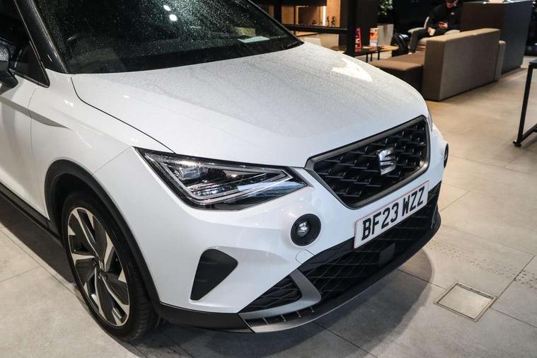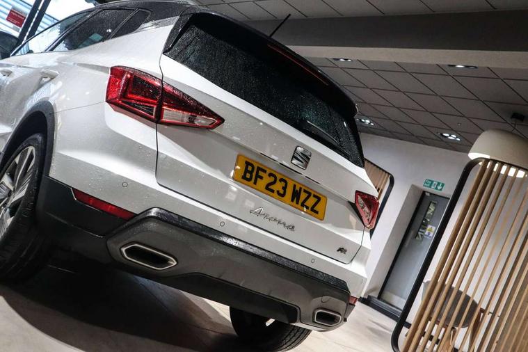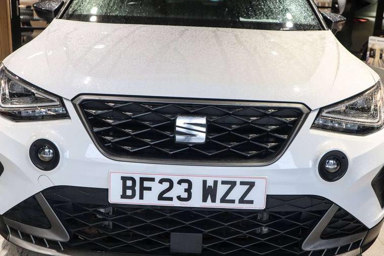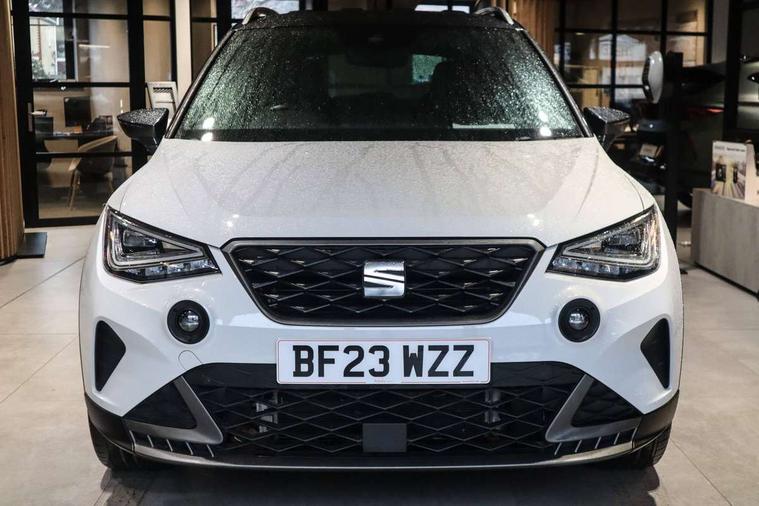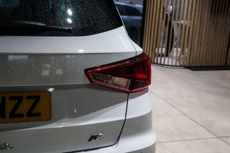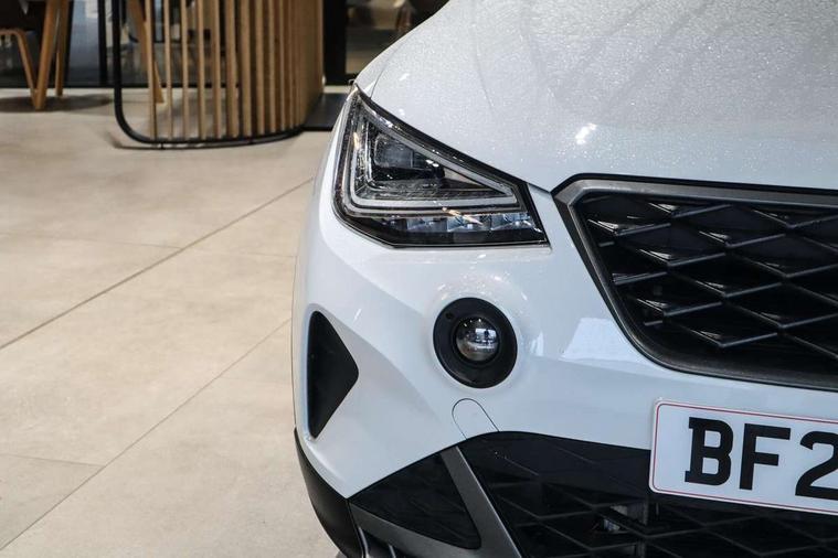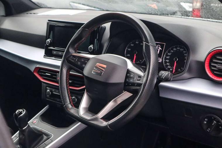 'Lights On' Reminder warning buzzer, Analogue cockpit with physical dials, Digital clock, E-call, Electric speed sensitive power steering, Full Link Smartphone Integration with Mirror Link, Apple Car Play, Google Android Auto with USB Type C cable for Apple and Android compatibility, Lane keeping system, Low fuel warning light, Outside temperature display, Rear parking sensor, RPM counter, Seat connect with safety, service and remote, SEAT Drive profile - Four different models normal-sport-eco-individual, steering response, throttle response, Trip computer, Wireless phone charger, Bluetooth interface for hands free and audio streaming, DAB digital radio and AM/FM radio, Media system with 8.25" colour touchscreen with USB port (type c), Steering wheel mounted audio controls, Anti theft roof antenna, Automatic activation of hazard warning lights, Body coloured bumpers, Body coloured door handle inserts, Chrome roof rails and window surrounds, Dark tinted rear windows, Dimming rear view mirror, Electric front/rear windows, Electrically adjustable and heated door mirrors, Front fog lights with cornering function and rear fog light, FULL LED automatic headlights with dynamic headlight range control, coming and leaving home, LED daytime running lights, LED rear tail lights and licence plate lights, Protective side mouldings, Rear side wing doors, Rear spoiler, Rear window wash/wipe, Roof colour door mirrors, Third brake light, Twin exhaust pipe styling hidden exhaust pipe, Visible VIN plate, Windshield wiper with intermittent control and potentiometer, 2 cupholders, 3 seat bench in 2nd row, 60/40 split folding rear seat, Aircare filter, Black interior roof, Double boot floor, Driver sunvisor with covered mirror + card holder, Dual zone climate control, Front comfort seats, Front courtesy light with 2x front and 2x rear reading lights, Gear shift indicator, Height adjustable front seats, Height/reach adjustable steering column, Illuminated boot, Instrument lighting with brightness control, Interior ambient lighting, Interior light in footwell, central console and door panel, ISOFIX points in outer rear seats with top tether anchorage points, Microsuede cloth upholstery, Passenger sunvisor with vanity mirror, Perforated flat bottomed leather steering wheel/gear knob/handbrake with red stitching and FR logo, Single front passenger seat, Two front and three rear height adjustable headrests, Interior chrome pack - Arona, 3 point seatbelts on all rear seats, ABS, Active front headrests, Child locks on rear doors, Driver and front passenger airbags with front passenger airbag de activation, front side and curtain airbags, Electronic stability control, Emergency Brake Assist (EBA) and front assist, Front and rear seatbelt reminder, Hill hold control, Multi-Collision braking, Tiredness recognition system, Traction control, Tyre pressure monitoring system, Alarm with back-up horn, Electronic engine immobiliser, KESSY Keyless entry and go, Locking wheel bolts, Remote central locking + deadlocks, Tow away protection, Titan black dashboard,