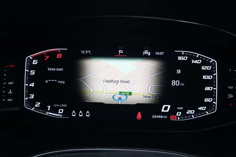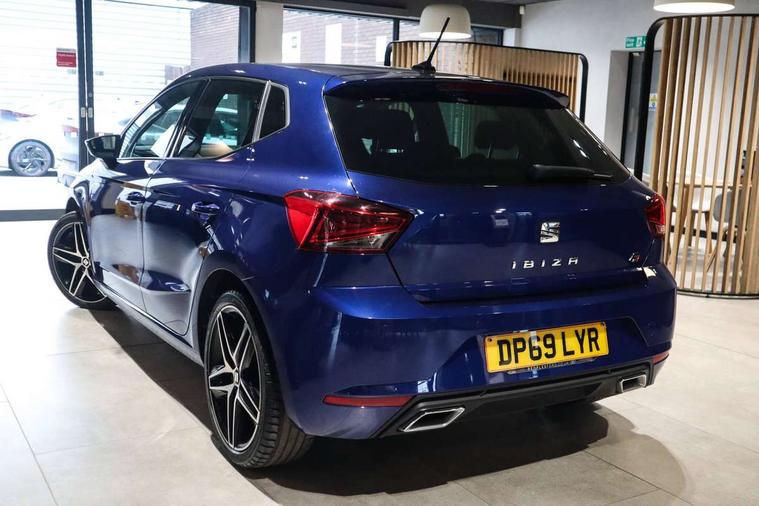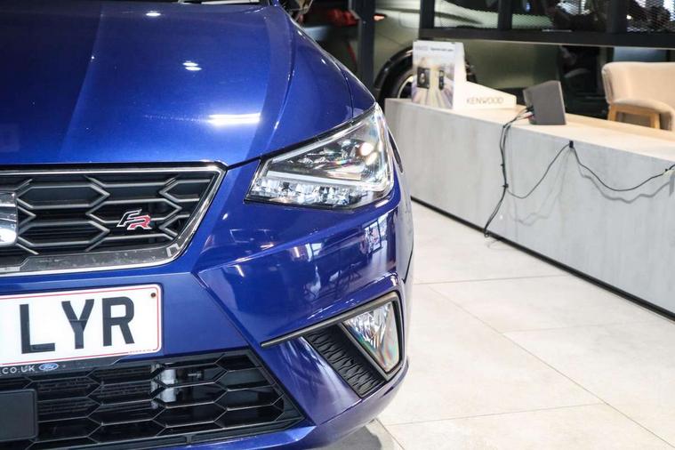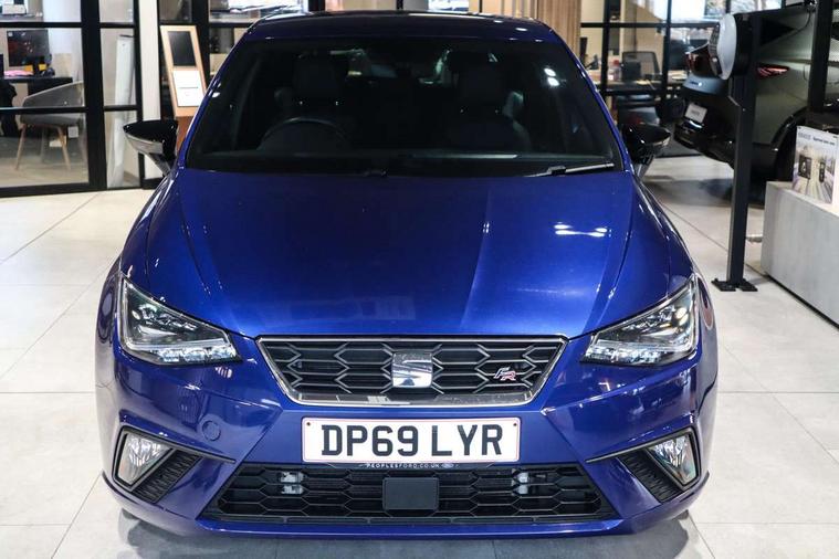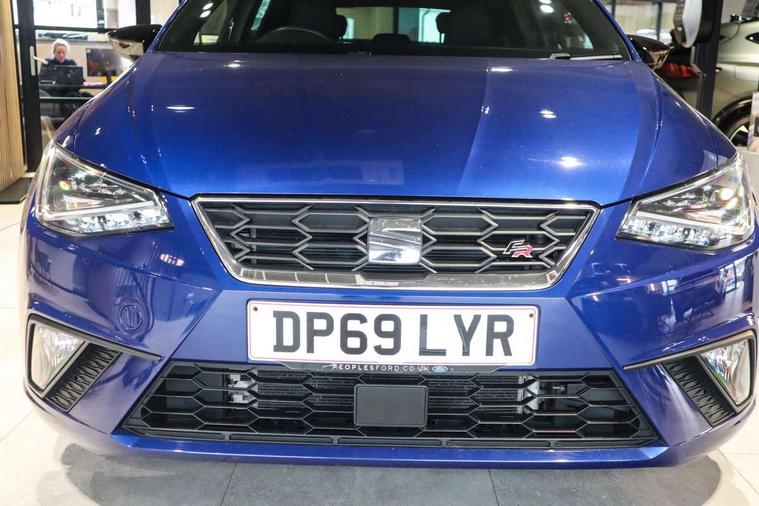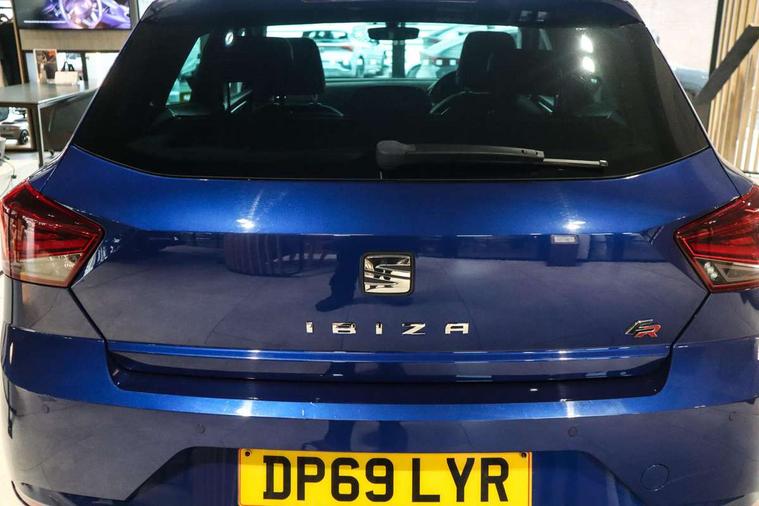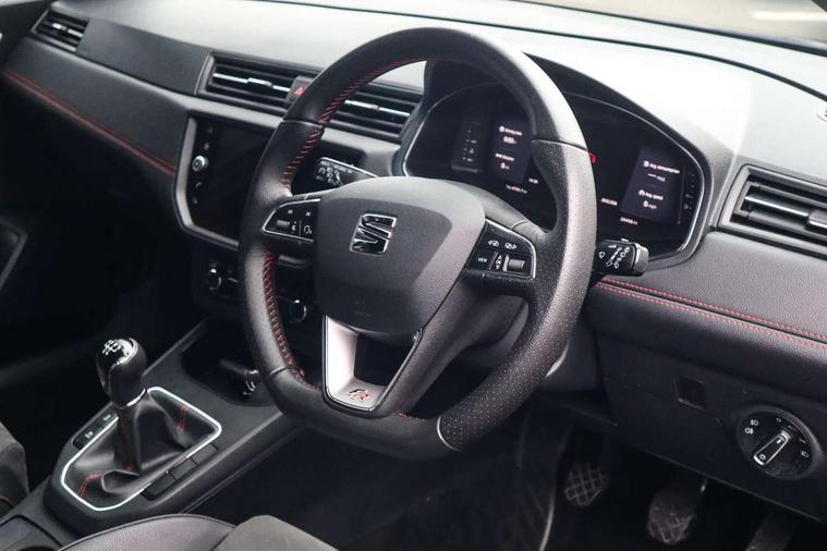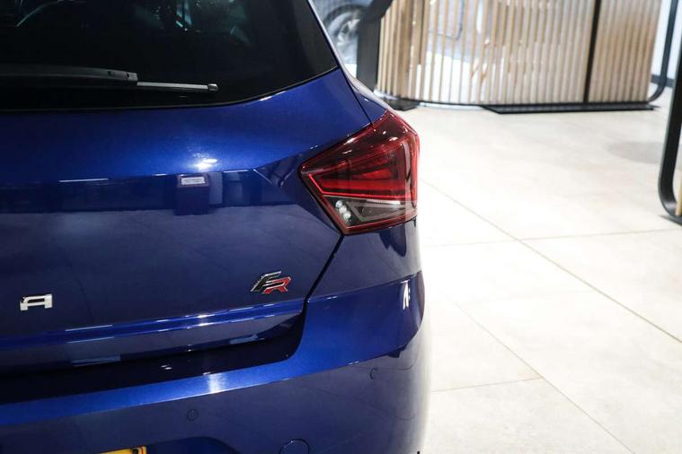 'Lights On' Reminder warning buzzer, Bluetooth Handsfree Phone Connection, Cruise control, Digital clock, Digital cockpit, Full Link Smartphone Integration with Mirror Link, Apple Car Play, Google Android Auto, Low fuel warning light, Outside temperature gauge, Power Steering, Satellite navigation system with 3D mapping, 8" touch screen, voice control and additional USB port, SEAT Drive profile, SEAT logo boot release, Trip computer, Sports suspension, 6 speakers, Auxiliary input socket, CD player, Digital Audio Broadcast (DAB) Tuner, Radio/MP3 player, SD card slot, SEAT USB media cable, Steering wheel mounted controls, USB port, Anti theft roof antenna, Auto dimming rear view mirror, Automatic headlights, Automatic rain sensing wipers, Body colour bumpers, Body colour door handles, Brilliant black door mirrors, Chrome front grille frame, Chrome grille, Coming/leaving home lighting function, Cornering front fog lights, Dark tinted rear windows, Electric folding door mirrors, Electric front windows, Electric headlight adjustment, Electrically adjustable and heated door mirrors, Exclusive FR rear bumper, Full LED headlights, LED daytime running lights, LED tail lights, Rear fog lights, Twin exhaust pipes, 3 rear headrests, 60/40 split folding rear seat, Door and steering wheel ice metal decorative inserts, Driver's sunvisor with ticket holder/vanity mirror, Dual zone climate control, Dust/pollen filter, Flat bottomed perforated leather steering wheel with red stitching and FR logo, Front courtesy lights, Front cupholders x 2, Front reading lights, Gear shift indicator, Glovebox, Height adjustable driver's seat, Height adjustable front/rear head restraints, Height adjustable passenger seat, Height/reach adjust steering wheel, Illuminated boot, Instrument lighting with brightness control, Leather handbrake, Microsuede cloth upholstery, Multi-colour ambient interior lighting, Passenger sunvisor, Rear top tether child seat ISOFIX attachment, Sports seats, Full LED headlight pack - Ibiza, 3 point seatbelts on all 3 rear seats, ABS, Active front headrests, Child locks on rear doors, Curtain airbags, Driver/Front Passenger airbags, ESP+EBA, Front assist (AEB), Front passenger airbag deactivation, Front side airbags, Hill hold control, Multi-Collision braking, Seatbelt warning, Tiredness recognition system, Tyre pressure monitoring system, Electronic engine immobiliser, Locking wheel bolts, Remote central locking + deadlocks, Volumetric alarm with back up horn, Leather dashboard, 18" Performance machined bi-colour alloy wheels,