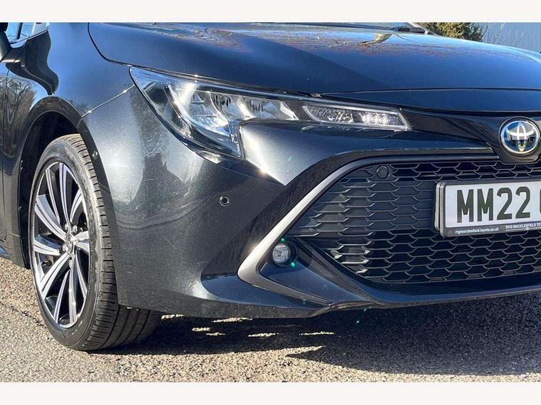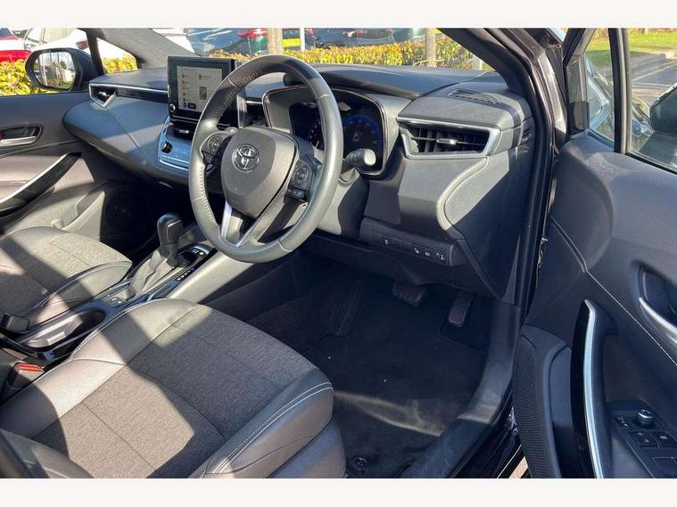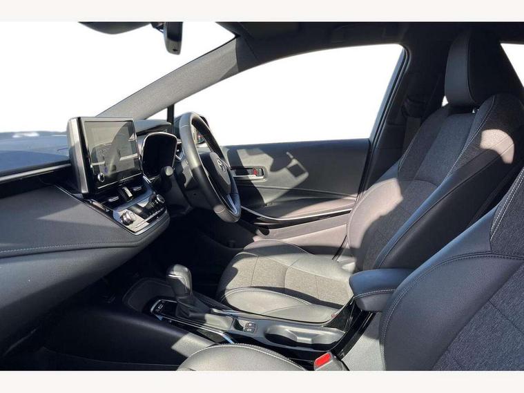 7" Multi information display screen, Bluetooth telephone connectivity, Connected car functionality upgrade, tracker, remote status and e-care, Door trim and centre console material, Dynamic radar cruise control (with RSA) including switch on steering wheel, E-call, Electrically assisted power steering, EV drive indicator, Intelligent park assist, Lane Departure Alert (LDA) switch on steering wheel, Memory on adjustable speed limiter, Push button start, Reversing camera, Smartphone integration with Apple CarPlay and Android auto, Gasoline particulate filter, Vehicle Stability Control (VSC), 6 speakers, 8" Touchscreen with MM19 Multimedia system and voice recognition, AM/FM radio, DAB Digital radio, Toyota touch 2 with go navigation system, USB and Aux in connectors + 12V front outlet, Anti-jam protection on power windows, Auto dimming inside rear view mirror, Auto up and down function on all power windows, Automatic folding mirrors, Automatic headlights with high beam assist, Black metallic surround on lower front grille, Black toyota logo in front, Black window frames, Body colour rear spoiler, Body coloured bumpers, Body coloured door mirrors, Body coloured outside door handles, Follow me home headlights, LED daytime running lights, LED front fog lights, LED Headlights, LED High mounted stop light, LED rear combi lights with LED lightguide, Power adjustable heated door mirrors, Power front windows, Power rear windows, Privacy glass, Rain sensing wipers, Rear side wing doors, Rear window defogger, Rear window wiper, Reverse tilting door mirrors, Shark fin antenna, Time adjustment on intermittent wiper, Turning signal integrated indicators in door mirrors, Unique lower skirt, Unique side rocker with black insert, UV-filter on driver and passenger windows, 3 rear headrests, 3 seat bench in 2nd row, 3 spoke leather steering wheel + gear knob, 60/40 split folding rear seat, Adjustable speed limiter switch on steering wheel, Audio, multimedia and telephone switches on steering wheel, Blue ambient interior illumination to centre tray, front cup holders and front door trim, Boot light, Centre room light, Clean air filter, Driver and front passenger personal light, Driver and passenger assist grip, Driver and passenger sun visor with mirror and light, Dual zone automatic air conditioning with ECO mode switch, Fabric/synthetic leather upholstery, Front and rear cup and bottle holders, Front door pockets, Front head restraints, Front passenger seat, Heated driver and front passenger seats, Illuminated entry system in room lamp, ISOFIX seat fixing (2 fixings on rear outer seats), Leather gear shift with satin chrome on gear shift console, Leather style armrests, Manual height adjustable for driver and front passenger seat, Parcel shelf, Passenger seat back pocket, Pollen filter, Power adjustable lumbar support on driver seat, Power window switches with satin chrome inserts, Rear armrest with 2 cupholders, Rear passenger coat hooks (2), Satin chrome inside door handles, Shopping bag hooks in luggage compartment, Sliding armrest on centre console box, Slow opening glovebox with lights, Tilt/telescopic steering column, Voice recognition switch on steering wheel, Whiplash Injury Lessening (WIL) feature (active headrest) for seats, Parking pack - Corolla, Toyota safety sense 2 pack - Corolla, 3x3 point rear seatbelts, Adjustable driver and front passenger seat belt extender to top anchor point, Anti lock braking system + Electronic brake force distribution, Brake assist function, Child locks on rear doors, Downhill Assist Control (DAC), Electronic parking brake, Emergency brake light signal (EBS), Front passenger airbag on/off switch, Front seatbelt reminder, HAC - Hill start assist control, Rear seat belt reminder, Seatbelt pretensioners and force limiters, Supplemental restraint system (SRS) 7 airbags - dual driver, dual side curtain, side impact and driver knee airbags, Traction control, Tyre pressure warning system, Acoustic vehicle alert system (AVAS), Alarm with motion sensor and immobilizer, Remote central locking + deadlocks, Smart entry, Satin chrome dash trim, Soft touch texture on upper dashboard, Unique wheel finish with red wheel cap,