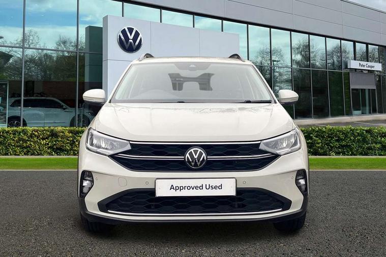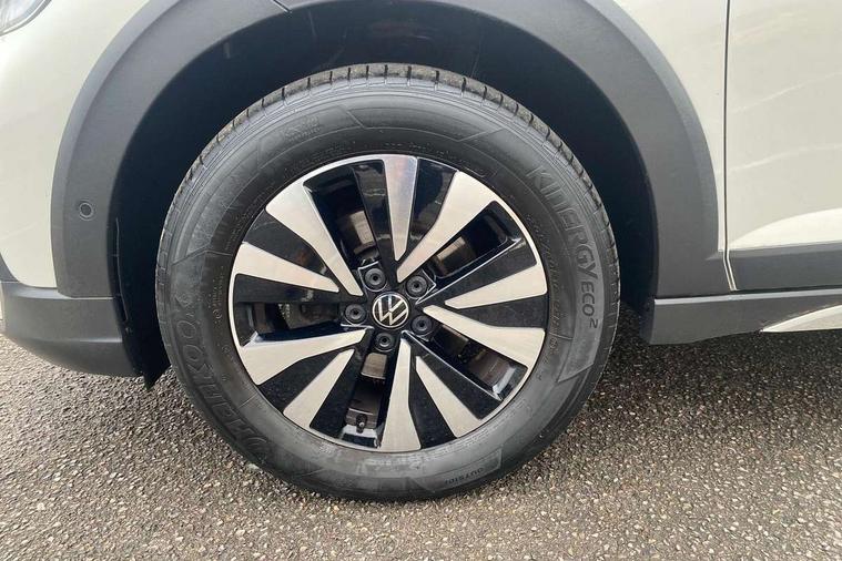 App-Connect including App-Connect Wireless, Driver alert system, e-Call (emergency call), Power Steering, Travel assist including emergency assist, Washer fluid level indicator, Wireless Charging including Bluetooth, Start-stop system with battery regeneration (recuperation - energy recovery during braking), Digital radio reception (DAB+), Diversity antenna for FM reception, WeConnect plus, Ambient lighting with logo projection, Aspherical driver's exterior mirror, Auto headlights, Body coloured bumpers, Body coloured exterior mirror housings and door handles, Electric windows, External USB type C socket and charging sockets, Front fog lamps with cornering function, Headlight range control, Heat insulating glass windscreen, LED headlamps, LED rear combination lamp, LED third brake light, Left convex exterior mirror, Power folding adjustable/heated exterior mirrors and front passenger exterior mirror lowering function, Rear fog light on one side, reversing light on both sides, Rear side wing doors, Rear wash/wipe with intermittent wipe setting, 'Slash/ Austin' Cloth upholstery, 12V socket in centre console, 2 front reading lights, 3 rear head restraints, 3 seat bench in 2nd row, Black carpets, Child seat anchor for child seat system i-Size, 2x top tether and child seat anchor in front on front passenger side, Door and side trim panels in titan black, Driver and front passenger seat height adjustment, Front centre armrest, Handbrake lever handle in leather, Height and reach adjustable steering wheel, Leather trimmed gear knob, Leather wrapped multifunction steering wheel, Luggage compartment floor, Luggage compartment light, Lumbar support for driver's and front passengers seat, Seat covers in titanium black, Single front passenger seat, Split folding backrest with centre armrest and unsplit rear seat bench, Storage compartment under front seats, Sun visors with illuminated vanity mirrors, Chrome Package - Taigo, Drivers assistance pack - Taigo, Light and Sight pack including High beam assist - Taigo, 2 x 3-point seatbelts/outer rear seats with ECE label, 3-point seat belts in front with pretensioner and height adjustment, 3-point seatbelt for centre rear seat, Driver and front passenger airbags with front passenger airbag de-activation, front side and curtain airbags, Driver and front passenger safety-optimised head restraints, Electronic stability control, Extended and predictive pedestrian/ cyclist protection, Front and rear disc brakes, Front curtain and side airbags with center airbag, Hill start assist, Manual rear child locks, Single tone horn, Tyre pressure loss indicator, Anti-theft alarm system with interior monitoring, backup horn, and towing protection, Anti-theft wheel bolts, Lava stone black gloss/matt decorative inserts in dash and front door panels, Low rolling resistance tyres,