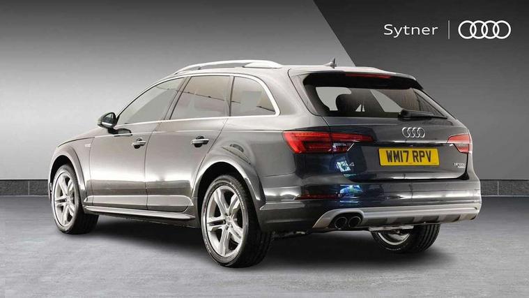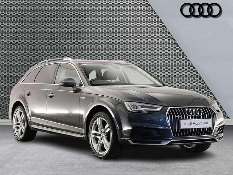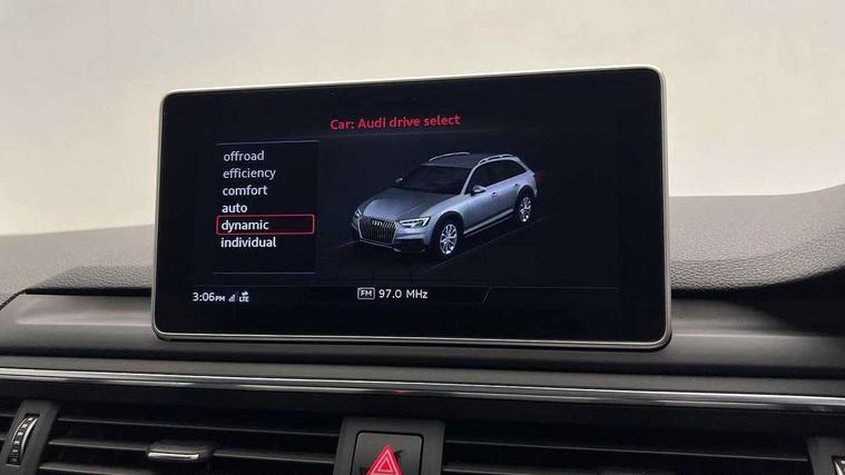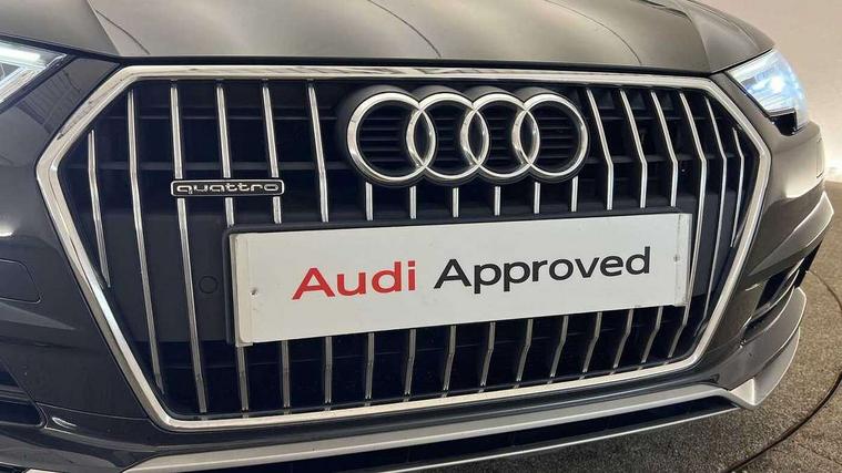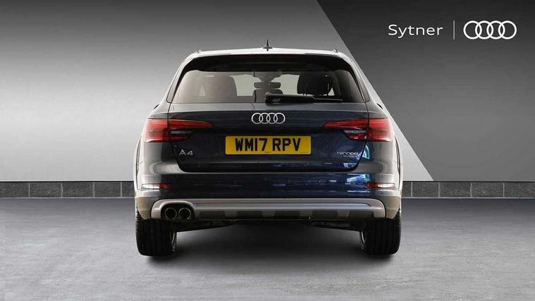 Audi connect, Audi drive select, Audi parking system plus with front and rear sensors, Audi Pre sense collision avoidance, Audi smartphone interface, Colour driver's information system display, Electro-mechanical PAS, MMI SD card Navigation, Mobile telephone preparation - bluetooth interface, Power tailgate, Service interval indicator, Stop/start button, Voice control system, 2 USB ports, Aux input, DAB digital radio module, MMI radio plus with CD player, Acoustic windscreen, Aluminium window trim, Auto dimming rear view mirror, Automatic headlights + automatic windscreen wipers, Body colour door mirrors, Chrome rolled exhaust, Contrasting bumpers and wheel arches, Electric adjustable heated door mirrors, Electric front windows, Electric rear windows, Headlight range control, High gloss black triangular aperture at rear door, LED daytime running lights, LED indicators in door mirrors, Privacy glass with front acoustic glazing, Rain and light sensors, Rear wiper, 12V socket in luggage compartment, 3 zone climate control, 4 way electric lumbar support for driver and front passenger, Aluminium door sill trims, Cloth headlining, Front centre armrest with 12v socket, Front/rear floor mats, Gearshift paddles, Isofix child seat preparation for front passenger/outer rear seats inc passenger airbag deactivation, Jack and tool kit, Luggage compartment carpet, Reach + rake adjustable steering column, Rear centre armrest, Rear headrests, Retractable load area cover, Split folding rear seats, Sunvisors with vanity mirrors, Top tether anchor plate for isofix child seat, Exterior off road aluminium package - A4 Allroad, Non Smokers pack, Storage pack - A4/S4, 3 point seatbelts on all rear seats, ABS/EBD, Active bonnet, Adaptive driver and front passenger airbags, EDL + ASR, Electromechanical parking brake, ESP with off road detection, First aid kit, Front head airbags, Front seatbelt pretensioners + load limiters, Front side airbags, Multi-Collision braking, Seatbelt warning, Traction control, Tyre pressure monitoring system, Warning triangle, Anti theft alarm, Keyless start, Locking wheel bolts, Remote central locking, Thatcham category 1 alarm + immobiliser, Collapsible spare wheel,